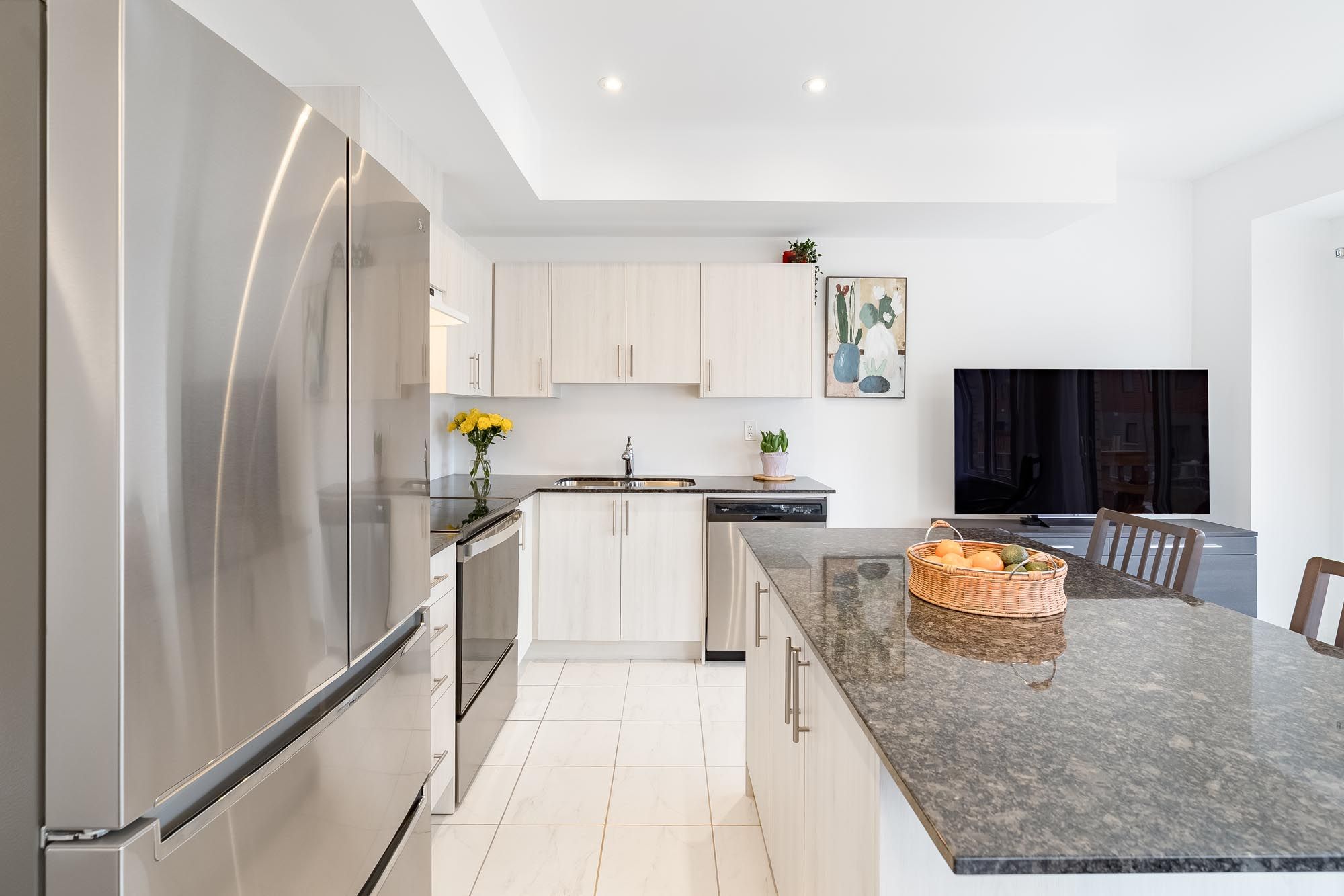 • Chef-inspired kitchen with granite countertops and stainless-steel appliances.