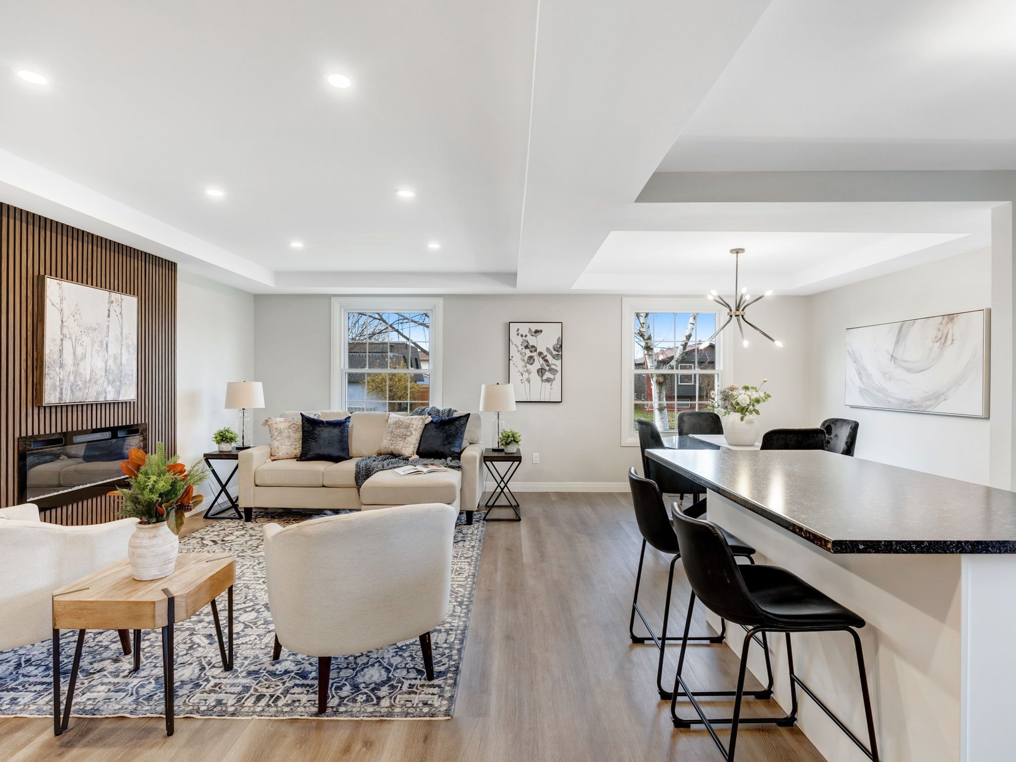 Be the first to live in this newly renovated upper unit apartment! This spacious floor unit has been extensively renovated, featuring an updated kitchen, bath, flooring, lighting, doors, trim, and fresh paint throughout, with no occupants since renovation. This unit offers 2 bedrooms, a den/office, a 4pc. Bath & an open concept living/dining/kitchen area featuring an electric fireplace. Outside, you'll find exterior updates including several new windows, a spacious rear wood deck, a side concrete walkway & patio, and new eavestroughs & fascia. With no rear neighbours and very close proximity to shopping, dining, and highway 403, this charming property is perfect for those looking to start the new year in a beautiful home!