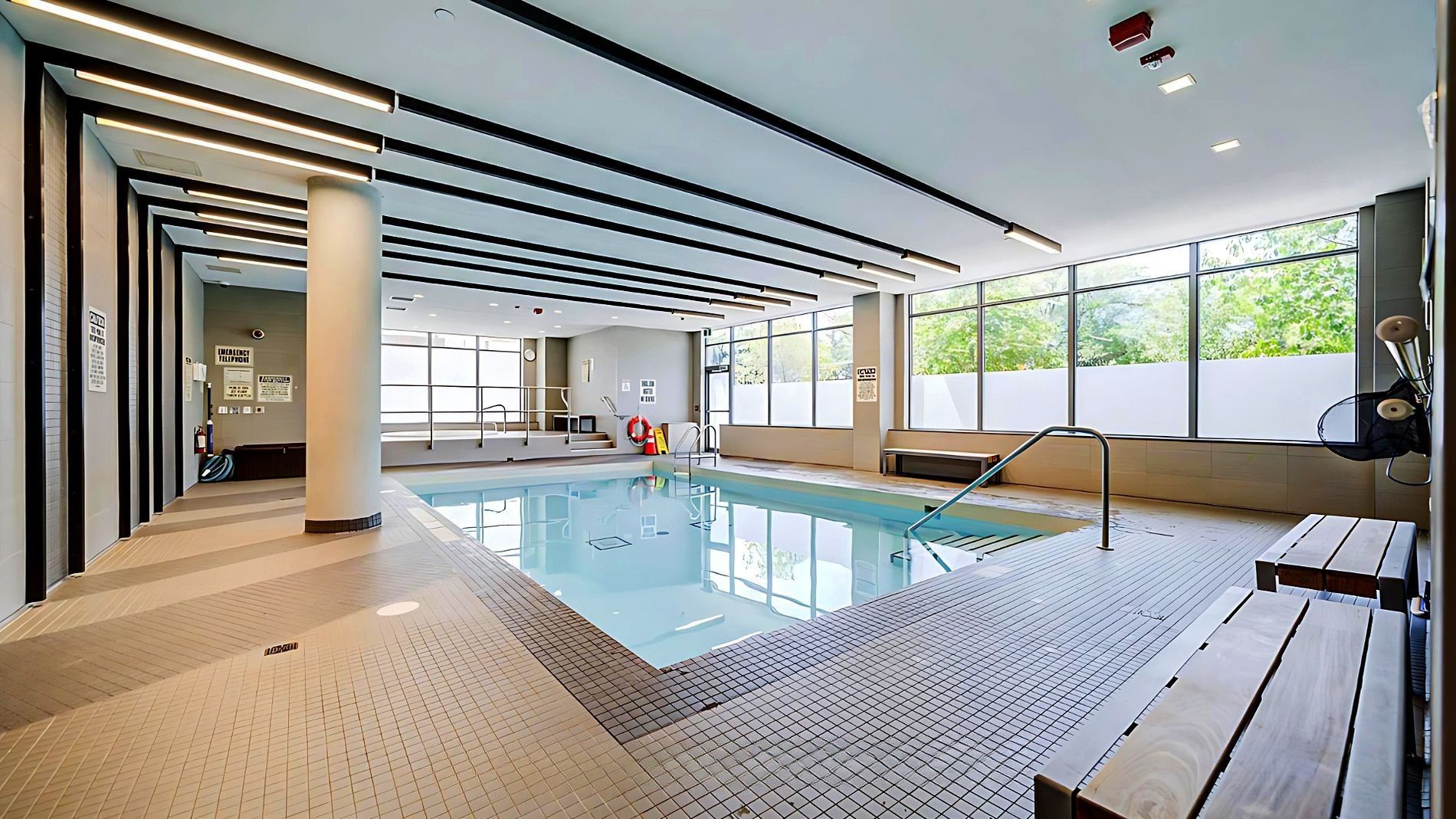 • Resort-style amenities include an indoor pool and gym.