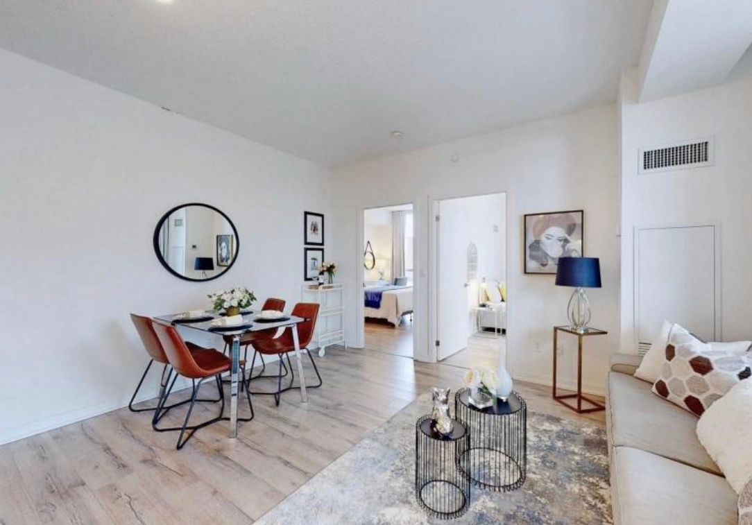 Highly sought-after location! Luxury & bright 2-bedroom, 2-bath corner unit featuring 745 sq ft of interior space with 9-ft ceilings, floor-to-ceiling windows, and an open balcony. Excellent functional layout with open-concept living, dining, and kitchen areas. Laminate flooring throughout. Enjoy 5-star amenities including 24-hour security, indoor gym, swimming pool, hot tub, sauna, party room, games room & more. Steps to ttc don mills subway station, fairview mall, t&t supermarket, and freshco. Easy access to hwy 401, 404 & dvp. Parking and water included.