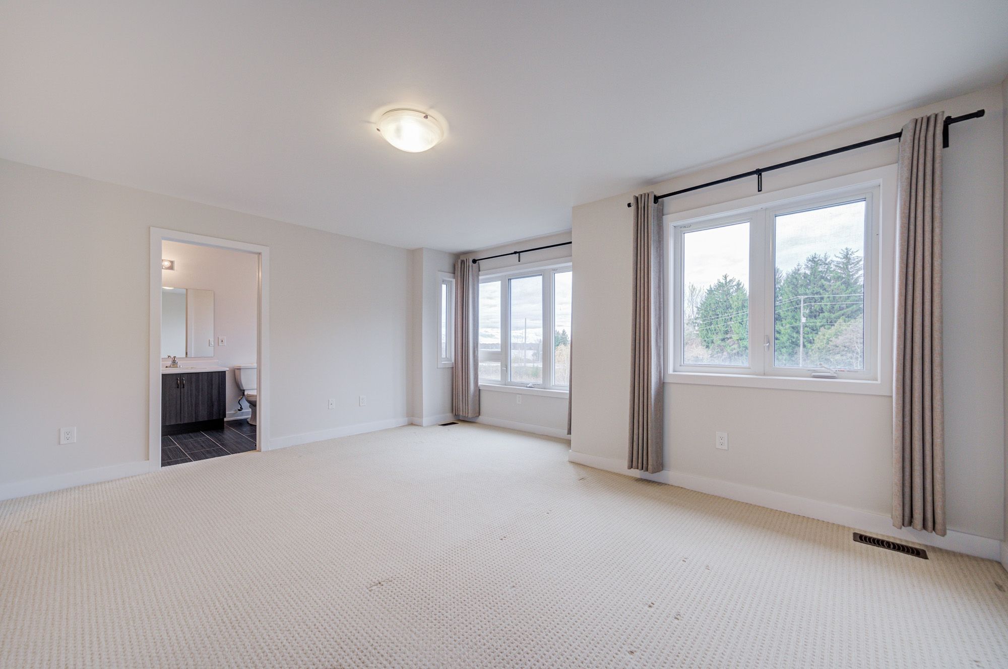 Live the lakeside dream! This stunning freehold modern townhouse offers unparalleled style and a premium location just steps from lake wilcox. Designed for sophisticated living, the main floor showcases a seamless, open-concept layout with soaring 9-foot smooth ceilings, gleaming hardwood floors, and an abundance of pot lights. The chef-inspired, contemporary kitchen is anchored by a massive island, perfect for entertaining. The true showstopper is the breathtaking feature: unobstructed lake views that can be enjoyed from both the main living room and the grand primary bedroom-your daily retreat is guaranteed. Upstairs, the primary suite is a true oasis, complete with separate his & her walk-in closets and a luxurious, upgraded ensuite featuring a glass shower and double sinks. With three spacious bedrooms total, including a second bedroom with its own private balcony, this home offers space and elegance at every turn. Enjoy ultimate local convenience, situated moments from the oak ridges community centre, parks, and prestigious golf courses.