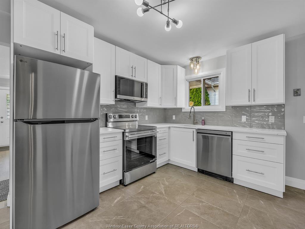 Beautifully renovated 3+1 bedroom, 2 full bathroom home offering a functional multi-level layout and modern finishes throughout. The main floor features a bright living room, dining area, and a stunning updated kitchen complete with new cabinetry and quartz countertops. Upstairs, you'll find a fully remodeled 4-piece bathroom, while the third level boasts a spacious family room and a beautifully updated 3-piece bath. The fourth level is partially finished, offering laundry, storage, and additional potential. This home has been completely redone from top to bottom, including all new flooring, trim, and interior doors. Major updates include new shingles (2024), all new windows (2026), a new sump pump & new water backup system (2026) . Additional features include an attached one-car garage with inside entry and a large, fully fenced backyard with convenient access-ideal for hobbyists or those looking to build a second garage or workshop. All new appliances included. Immed poss available.