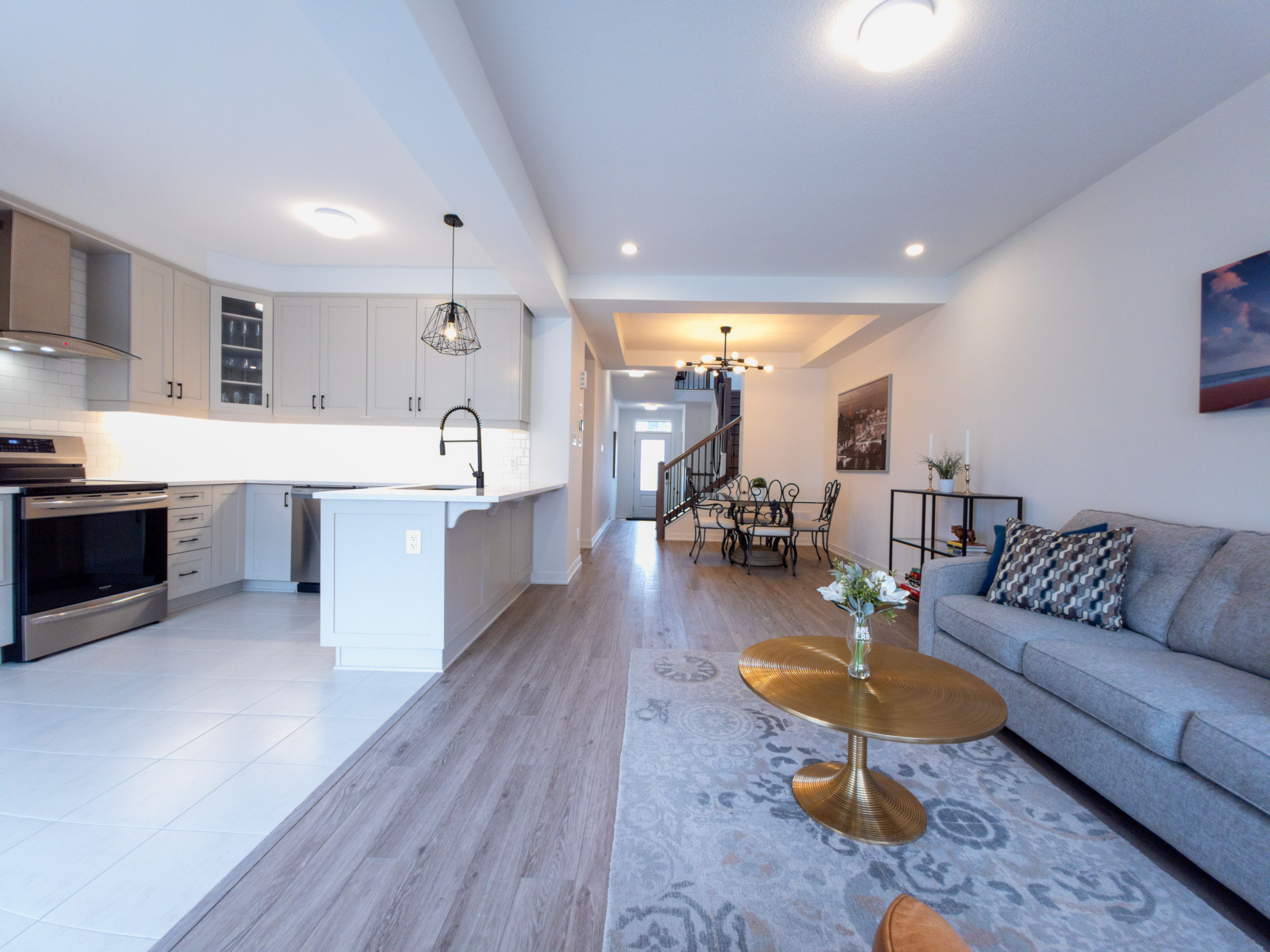 Welcome to this beautifully upgraded 2023-built lilac model by mattamy, offering 1,623 sq/ft of thoughtfully designed living space in a highly desirable, amenity-rich location. Step inside to discover a bright and airy main floor where the sun-filled great room seamlessly flows into a stunning chef-inspired kitchen. Designed with both style and functionality in mind, the kitchen features quartz countertops, an extended tile backsplash, a kindred double-bowl undermount sink, sleek matte black faucet, upgraded high-end appliances, and full-height soft-close cabinetry with added touches like a lazy susan and island overhang for casual seating. Luxury vinyl flooring throughout the main level enhances the home's modern elegance. A grand oak staircase with refined metal spindles leads to the upper level, where you'll find a spacious loft with soaring ceilings, perfect as a home office or additional living space-alongside convenient second-floor laundry and generously sized bedrooms. The primary suite offers a private retreat complete with a quartz vanity, frameless glass shower, and upgraded fixtures for a spa-like experience. The lower level is ready for your personal touch, featuring two windows, a 3-piece bathroom rough-in, and laundry rough-in, ideal for creating a future recreation space or in-law suite. Additional upgrades include enhanced electrical with pot lights, central a/c, bypass humidifier kit, extra insulation, insulated garage door, and a fully fenced backyard. Perfectly situated just minutes from costco, tanger outlets, kanata tech park, the queensway, and the upcoming lrt, this home offers the ultimate blend of comfort, style, and convenience.