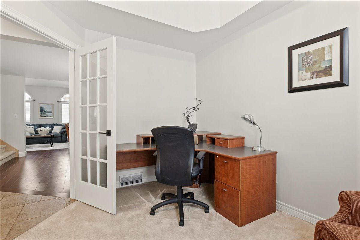 Welcome to this beautifully maintained single detached home with double car garage, ideally located in one of the area's most highly sought-after neighbourhoods. Offering space, function, and timeless design, this home is perfect for growing families and professionals alike. As you enter there is a well-appointed office, ideal for working from home or extra family space. The main floor also features a separate formal dining room and an inviting living room with vaulted ceilings and a skylight, filling the space with natural light and architectural charm. The spacious kitchen offers a breakfast bar, ample cabinetry, and a separate eating area. The family room boasts vaulted ceilings and a fireplace, patio doors lead to a private deck and fully fenced backyard, ideal for children, pets, and summer gatherings. Conveniently located on the main floor is a laundry room and a 2-piece powder room. Upstairs, you will find three generous bedrooms and a main 4-piece bath. The large primary suite features a walk-in closet and a 4 piece ensuite. The basement provides a large unfinished recreation area, ready for your personal touch, along with a fourth bedroom, perfect for guests, teens, or extended family. Conveniently located close to schools, shopping, amenities, and major highways, this home offers the perfect balance of comfort and accessibility. Don't miss your opportunity to live in this exceptional neighbourhood!