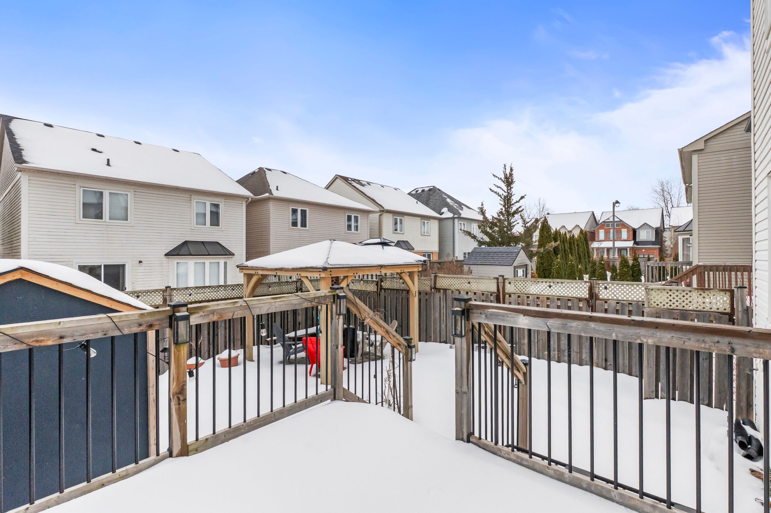Welcome to windfields farm, oshawa. A beautifully maintained 3-bedroom home with exceptional outdoor features and versatile living space. This property offers a 1-car garage plus four outdoor additional parking spaces, enhanced by a newer parking pad and an elegant interlock in both the front and backyard. The outdoor area is ideal for entertaining, featuring a large shed and a stunning interlock gazebo built in 2023, creating a private and functional retreat . Inside, the home boasts three generously sized bedrooms, each with large windows and ample closet space, providing abundant natural light and comfort. The finished basement adds valuable living area and flexibility. Perfect as an additional bedroom, entertainment room with a ready projector plug-in, or a personal fitness space. Thoughtful features include a mounted dartboard, pre-installed boxing bag hook, and wide windows that fill the space with morning sunlight. Located in the highly desirable windfields farm community, this home combines modern upgrades, functional design, and outstanding outdoor living. Ideal for families, professionals, or investors seeking comfort, convenience and long-term value. Near ontario tech university, durham college and a nearby highschool being built in the area. Walking distance to different bus route going local, universities, libraries or downtown toronto. Different parks and a wide range of mixed establishment like banks, health and wellness stores, groceries and coffee shops for friends and family to hang out. You are getting a mixture of living in nature and green space while growing your family. Sharing your new space with friends and enjoying the convenience of urban living. Welcome to your home sweet home!!!