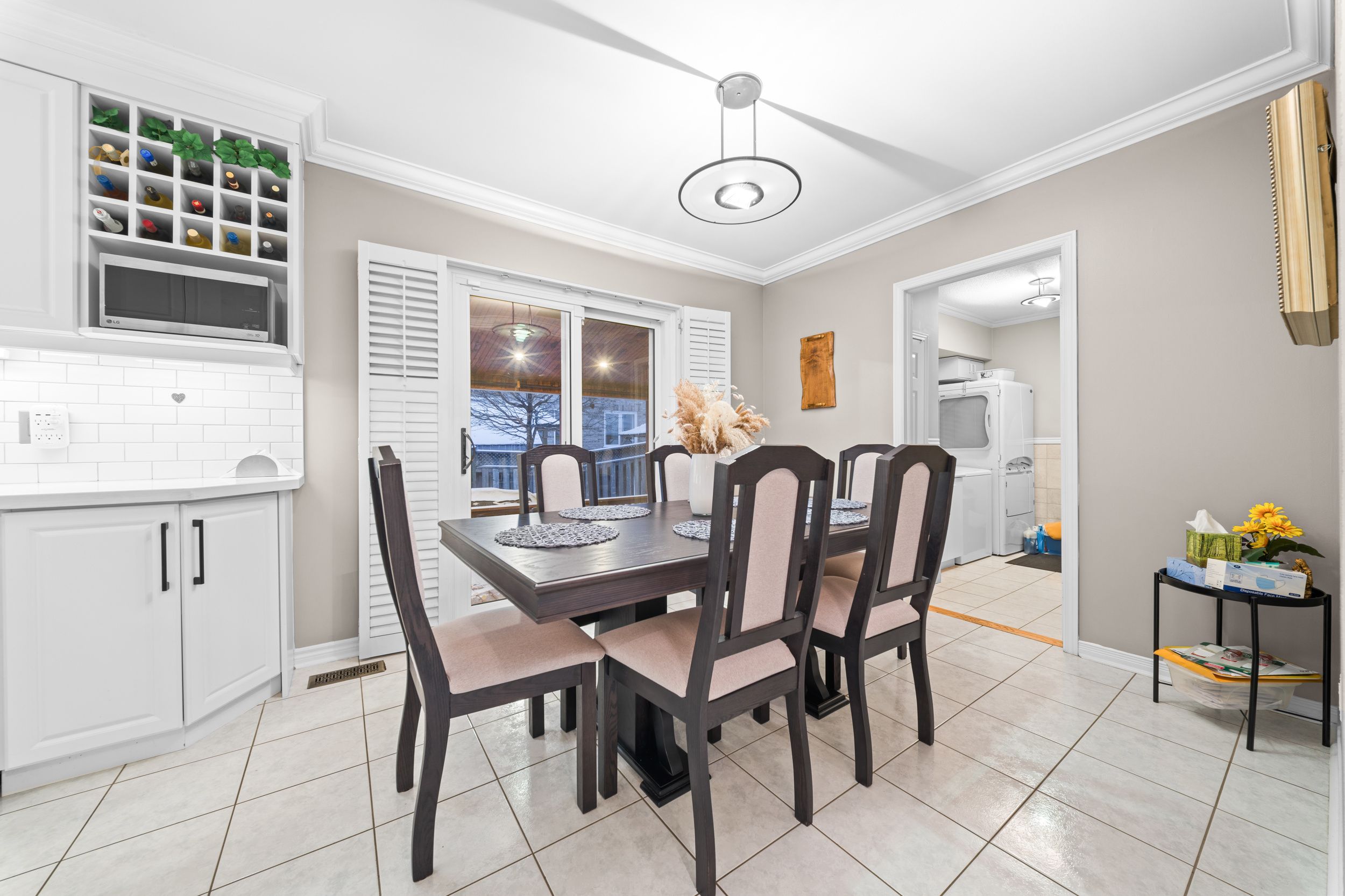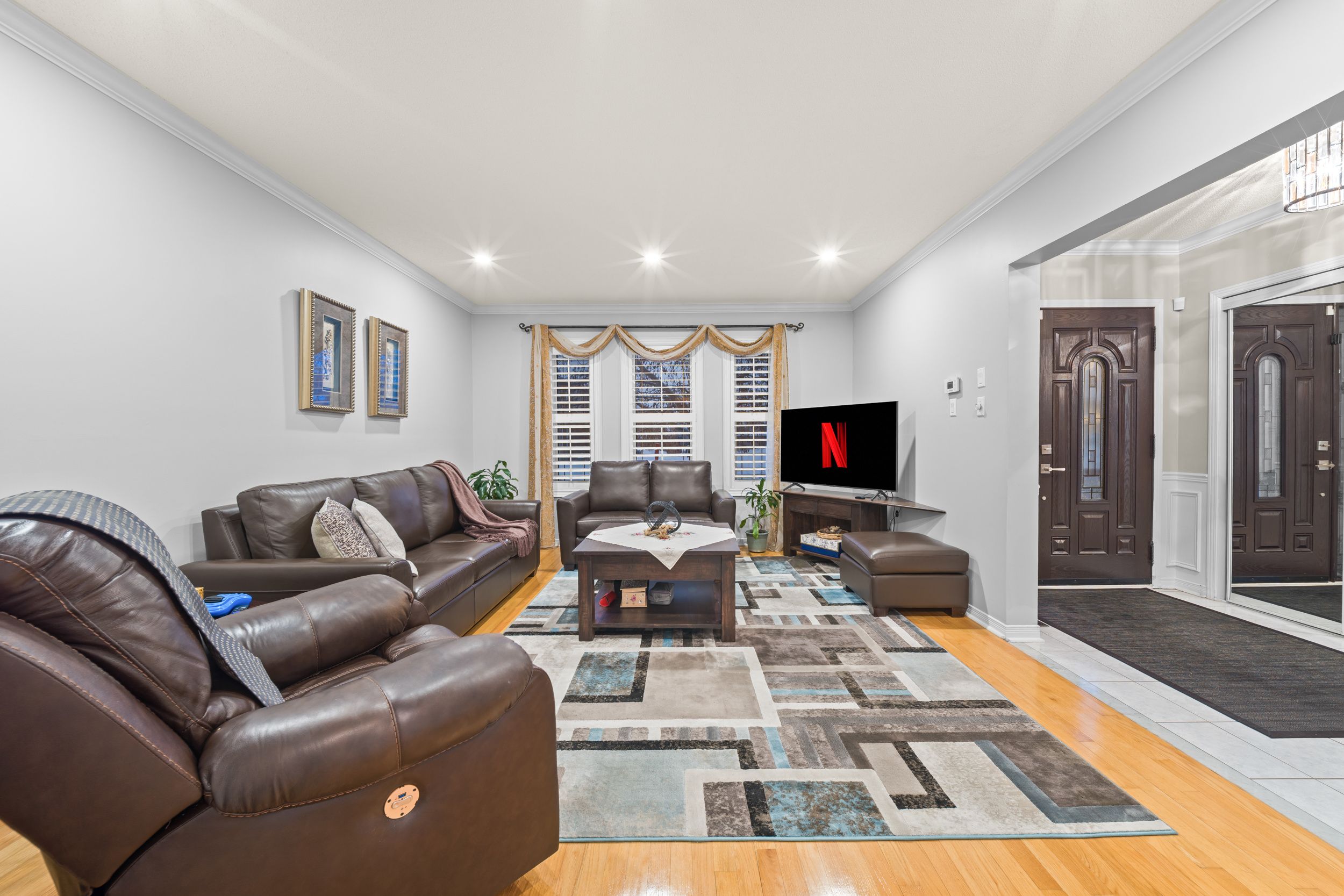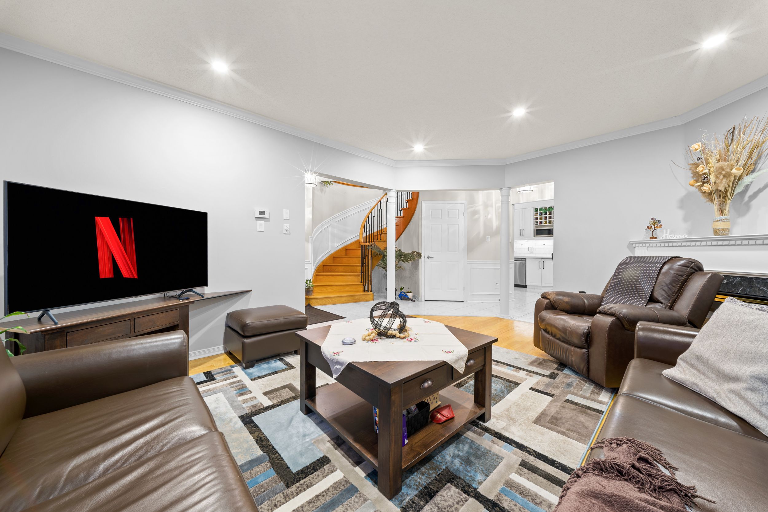 Welcome to this beautifully maintained residence offering thoughtfully designed living space. Blending privacy, comfort, and style - this exceptional home is nestled on a quiet lot. Features a concrete stamped driveway with up to 6 car parking (2 garage, 4 driveway). Step inside to a striking entrance welcomed by an elegant statement chandelier. Pot lights throughout the entire home, including the basement. The main level showcases elegant flooring, a sleek gas fireplace, and a stylish powder washroom, ideal for everyday living and entertaining. Staircases accented with iron pickets add timeless character and durability, complementing both modern and traditional design. The chef-inspired eat-in kitchen impresses with a coffered ceiling, beautiful tile backsplash, countertops, and custom cabinetry. Premium features include a built-in stainless steel refrigerator, gas cooktop, built-in wine rack, and california shutter blinds. The kitchen walks out to an open wooden patio/solarium, flooded with natural light offering panoramic seasonal views. The main-floor laundry room includes a washer, dryer, separate laundry sink, and built-in storage. Upstairs, the spacious primary bedroom offers a walk-in closet and spa-inspired ensuite with a standing glass shower. Additional bedrooms are generously sized. The private backyard is surrounded by trees and features a stunning open-concept patio with wooden beams, pot lights, and a warm, cozy ambiance. The fully finished basement includes pot lights throughout and a dedicated kitchen, ideal for extended family or separate entertaining. Major updates include roof, windows, exterior doors, air conditioning, and furnace, all replaced within the past five years. Kitchen appliances are also less than five years old. Freshly painted, this move-in-ready home is minutes from hwy 410,trinity common mall, parks, and top-rated schools-offering space, elegance, and lasting value in one of brampton's most sought-after neighborhoods.