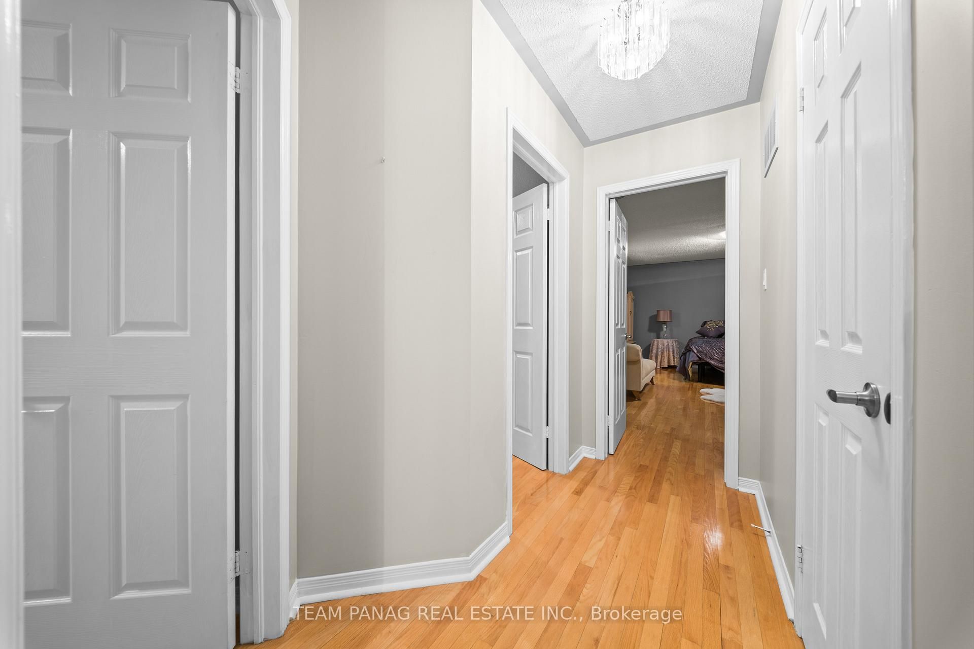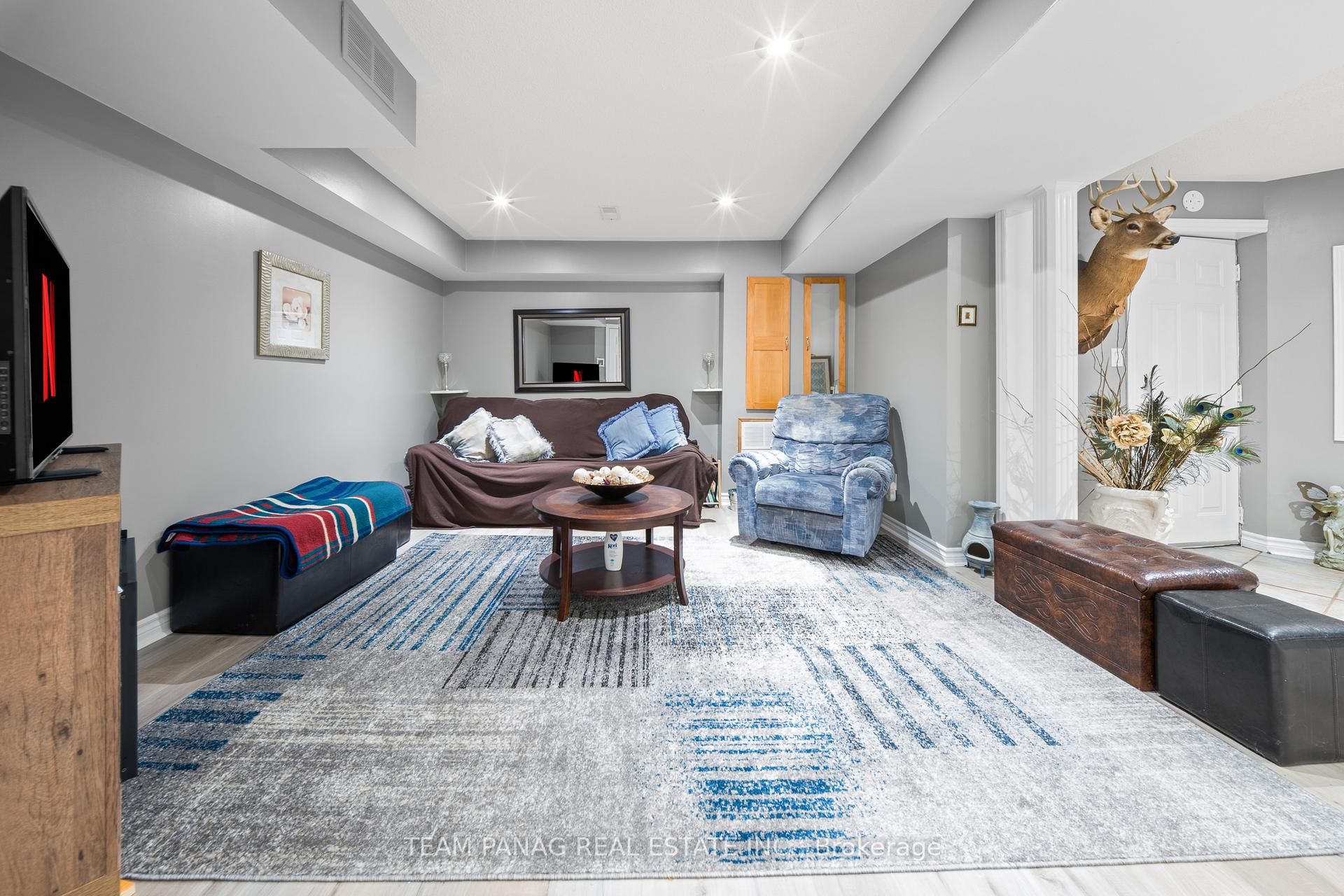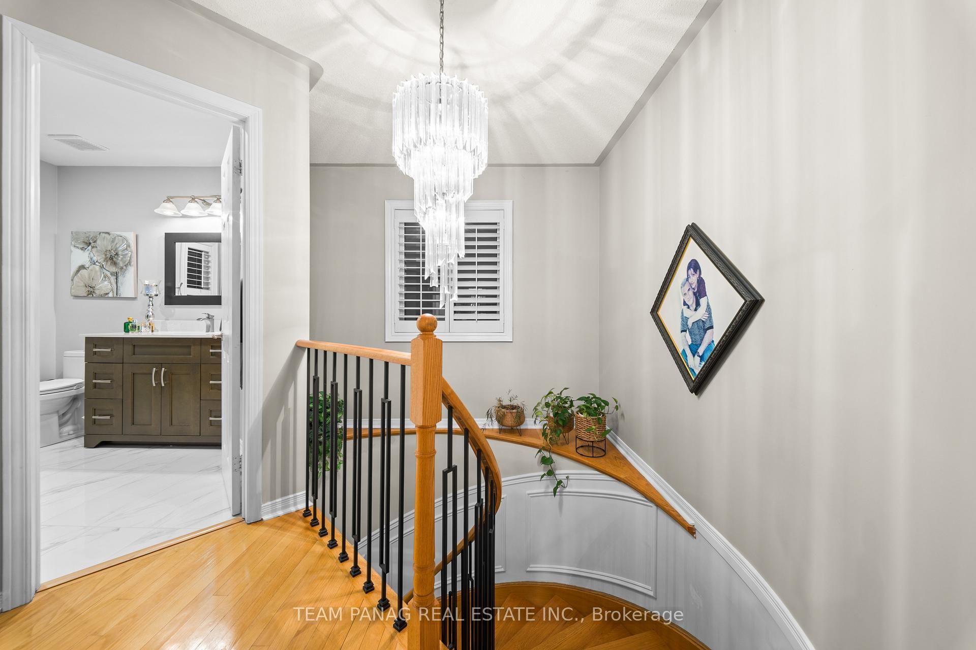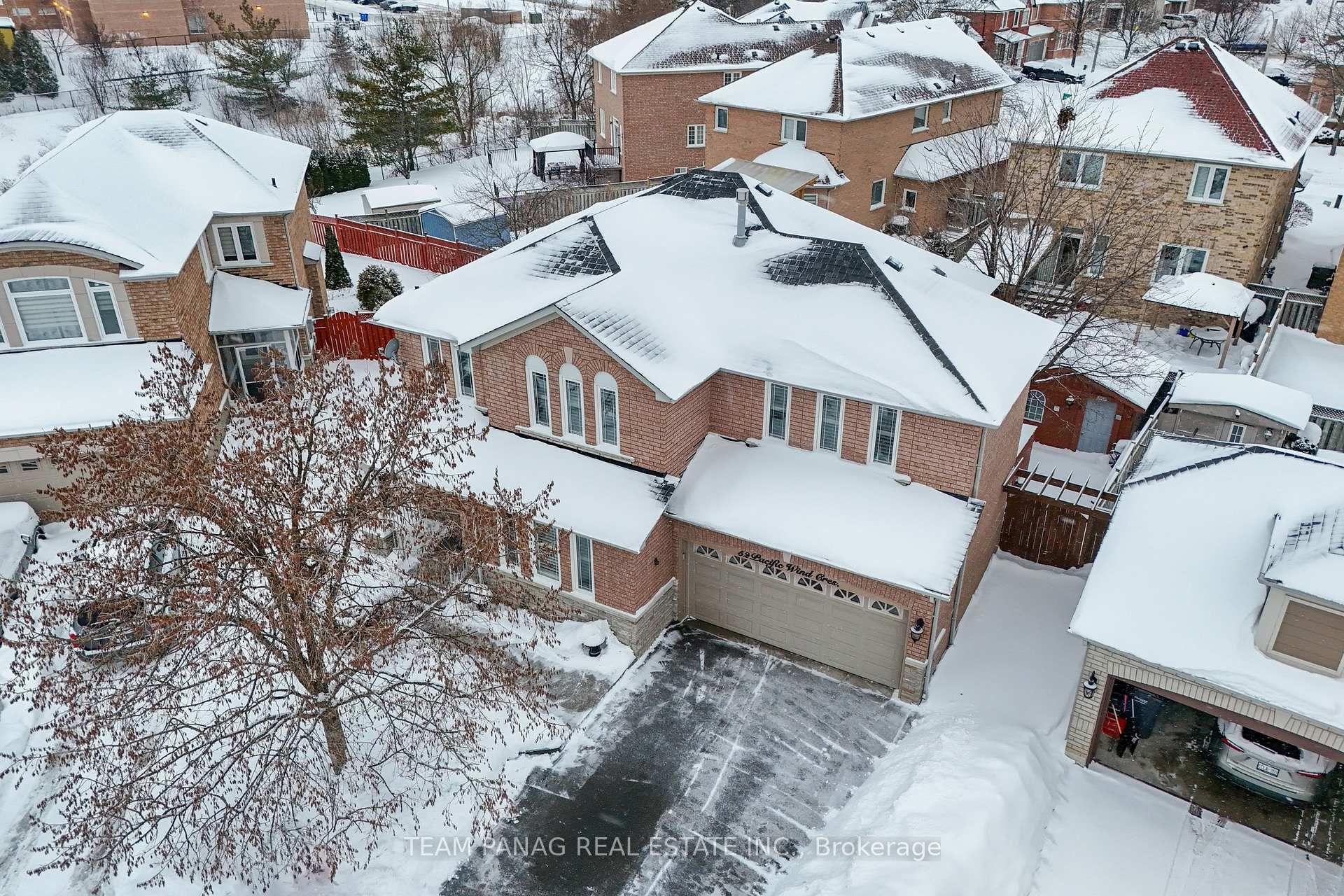 Welcome to this beautifully maintained residence offering thoughtfully designed living space. Blending privacy, comfort, and style - this exceptional home is nestled on a quiet lot. Features a concrete stamped driveway with up to ** 6 car parking ** (2 garage, 4 driveway) . Step inside to a striking entrance welcomed by an elegant statement chandelier. Pot lights throughout the entire home, including the basement. The main level showcases elegant flooring, a sleek gas fireplace, and a stylish powder washroom, ideal for everyday living and entertaining. Staircases accented with iron pickets add timeless character and durability, complementing both modern and traditional design. The chef-inspired eat-in kitchen impresses with a coffered ceiling, beautiful tile backsplash, countertops, and custom cabinetry. Premium features include a built-in stainless steel refrigerator, gas cooktop, built-in wine rack, and california shutter blinds. The kitchen walks out to an open wooden patio/solarium, flooded with natural light offering panoramic seasonal views. The main-floor laundry room includes a washer ,dryer, separate laundry sink, and built-in storage. Upstairs, the spacious primary bedroom offers a walk-in closet and spa-inspired ensuite with a standing glass shower. Additional bedrooms are generously sized. The private backyard is surrounded by trees and features a stunning open-concept patio with wooden beams, pot lights, and a warm, cozy ambiance. The fully finished basement includes pot lights throughout and a dedicated kitchen, ideal for extended family or separate entertaining. Major updates include roof, windows, exterior doors, air conditioning, and furnace, all replaced within the past five years. Kitchen appliances are also less than five years old. Freshly painted, this move-in-ready home is minutes from hwy 410,trinity common mall, parks, and top-rated schools-offering space, elegance, and lasting value in one of brampton's most sought-after neighborhoods.