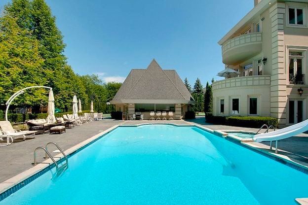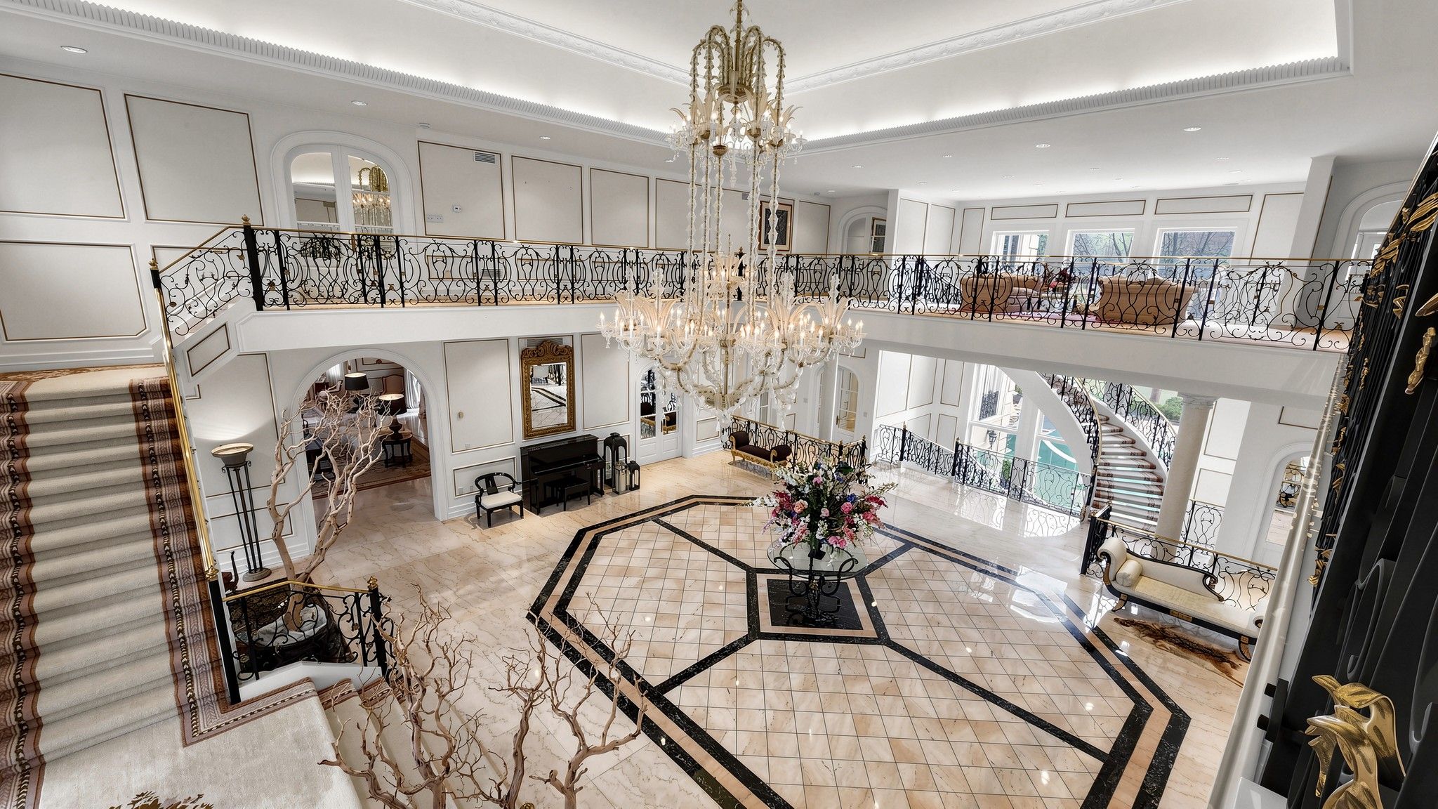 52 post rd stands as one of the most distinguished european neoclassical architectural masterpieces in bridle path, canada's most prestigious residential enclave. Spanning over 25,000 sf, this gated estate is widely regarded as a "modern grand mansion'' of remarkable scale and presence. It seamlessly blends classical symmetry with refined contemporary elegance. Grand, high-arched doorways, intricately patterned marble floors and millwork, sweeping staircases with ornate wrought-iron railings, and monumental architectural proportions establish enduring sophistication and a regal arrival experience. Evoking a versailles-inspired grandeur, the interiors showcase 14' and 23' soaring ceilings, dramatic stair halls and windows, and dazzling chandeliers that cast a warm, luminous glow throughout. Appx 15,000 sf above grade, incl an unparalleled 300-guest ballroom. Soaring 14' ceiling, 5 +2 generously appointed bedrooms, 13 bathrooms, 3 kitchens. Appx 7,500 sf lower level is thoughtfully designed for comprehensive leisure and entertaining amenities. Lower level features the wellness spa, sauna and hot tub, fitness centre, wine cellar and an extensive billiard room hosting multiple games. A tunnel-connected coach house offers appx 2,500 sf interior, and a 5-car-garage. Sculptural 3-dimensional walls gracefully wrap around a private courtyard, creating a striking focal point. Dramatic 2-storey floor-to-ceiling windows frame serene garden and pool views, cultivating intimate dialogue b/t interior and nature. Resort-inspired backyard featuring an outdoor pool with pool-house, a private tennis court, and a children's playground along expansive lawn and tree-lined tranquil pathway. Set among an extraordinary collection of luxury estates in the bridle path, this exceptional location is surrounded by elite public and private schools, renowned granite club and sunnybrook health centre. A rare offering defined by prestige, privacy, and elevated lifestyle in the heart of the city.