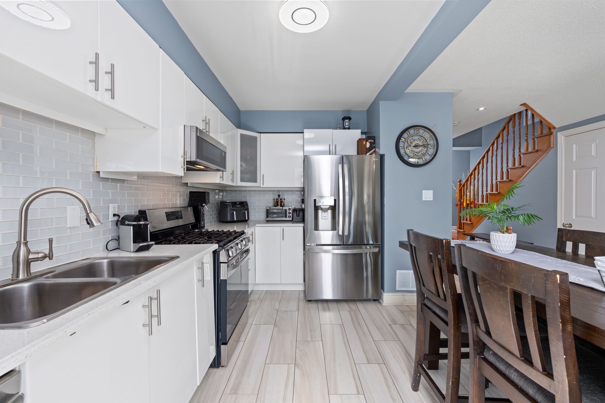 Welcome to this beautifully maintained 3-bedroom, 3-bathroom freehold townhome located in the highly sought-after community of east woodbridge. This bright and inviting home features a functional open-concept layout with updated flooring, large windows, and a modern kitchen complete with stainless steel appliances and ample cabinetry-perfect for both everyday living and entertaining. The upper level offers generously sized bedrooms, including a spacious primary retreat, while the finished basement provides additional living space ideal for a family room, home office, or recreation area. Enjoy a private, fully fenced backyard with a patio and green space-perfect for outdoor relaxation and entertaining. Recent upgrades include new windows and front door (2025), upgraded attic insulation (2025), basement renovated(2024), and front and backyard landscaping (2024)-offering peace of mind and true move-in ready convenience. Conveniently located close to schools, parks, shopping, and transit, this is an exceptional opportunity to own in one of woodbridge's most desirable neighbourhoods.