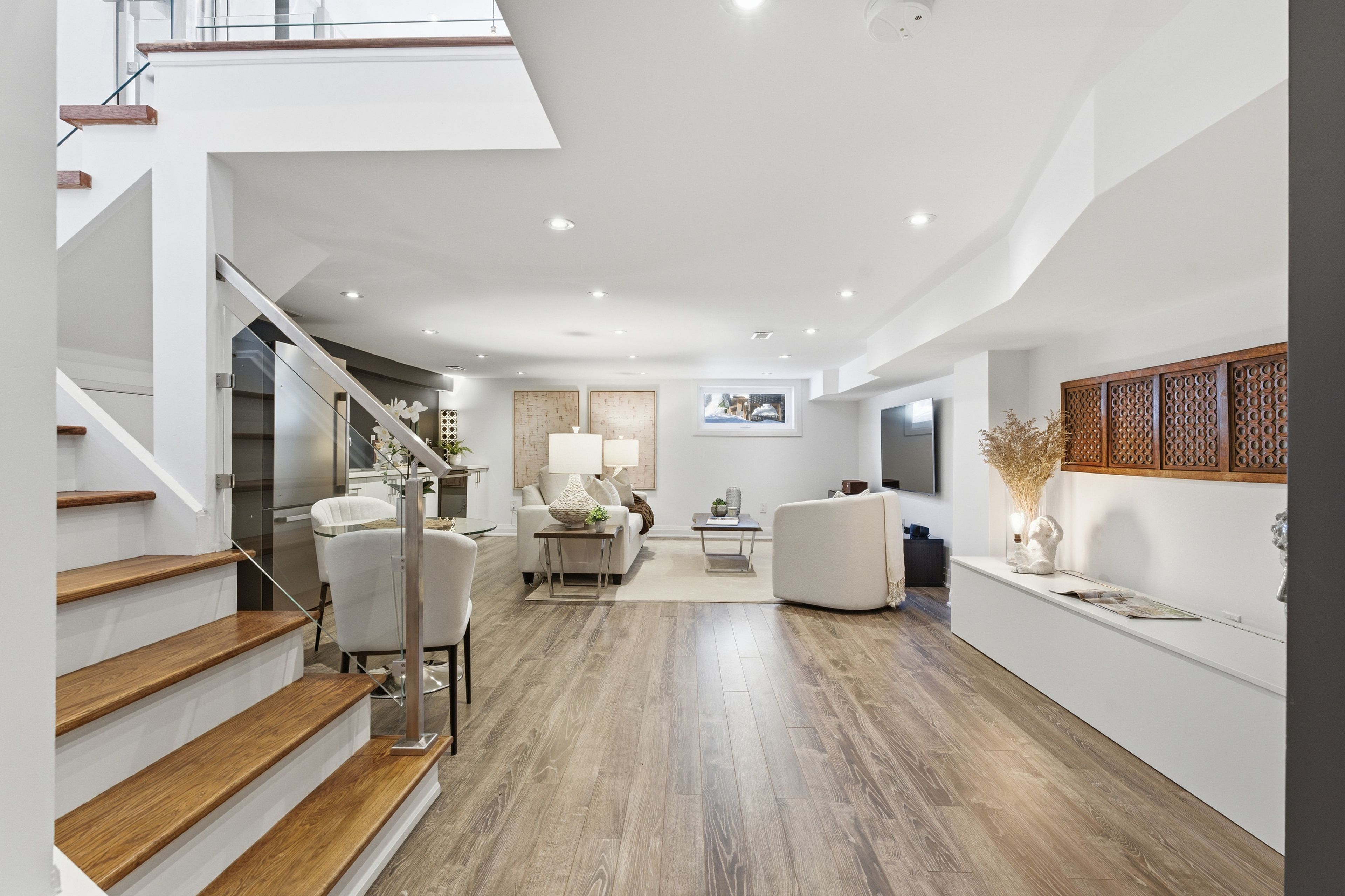 Tucked away on a quiet, leafy street where queensbury softly gives way to the prestige of the hunt club, 52 queensbury ave is a rare city retreat - where birdsong replaces traffic and nature feels woven into the architecture. This modern, detached home is both grounded and elevated, offering a life that feels calm, connected, and beautifully lived. Thoughtfully reimagined, the main floor unfolds in an airy open-concept design balancing effortless entertaining with intimate family moments. Custom cabinetry and refined finishes anchor the space, while generous windows frame the charming streetscape - sunlight filtering in and a sense of ease settling over every room. Upstairs, the serene primary retreat features a walk-in closet and private ensuite with freestanding tub and skylight - an inviting escape at day's end. Two additional well-proportioned bedrooms offer large closets and expansive windows, while a skylight brightens the upper level. The fully finished lower level, with potential for a separate entrance, offers flexibility ideal - as an in-law suite, home office, or income opportunity. Out back, the impressive 180-ft deep lot reveals a thoughtfully designed outdoor escape. A custom wood-covered pergola and spacious stone deck set the stage for long al fresco dinners, candlelit soirées, and effortless bbqs from afternoon into evening. The depth of the lot offers endless possibilities - cabana, hot tub, gazebo, or garden retreat-your private sanctuary waiting to be imagined. With lush landscaping and total privacy, it's cottage living without leaving the city. Just steps away is lynndale parkette - the neighbourhood's best-kept secret and community heart. Known locally as "the secret park," it hosts scavenger hunts, playdates, shared bbqs, and winter hockey under open skies. Wander to charming cafés and shops, explore nearby parks, the beach, or the scarborough bluffs. This isn't just a home - it's a lifestyle defined by ease, connection, and quiet magic.