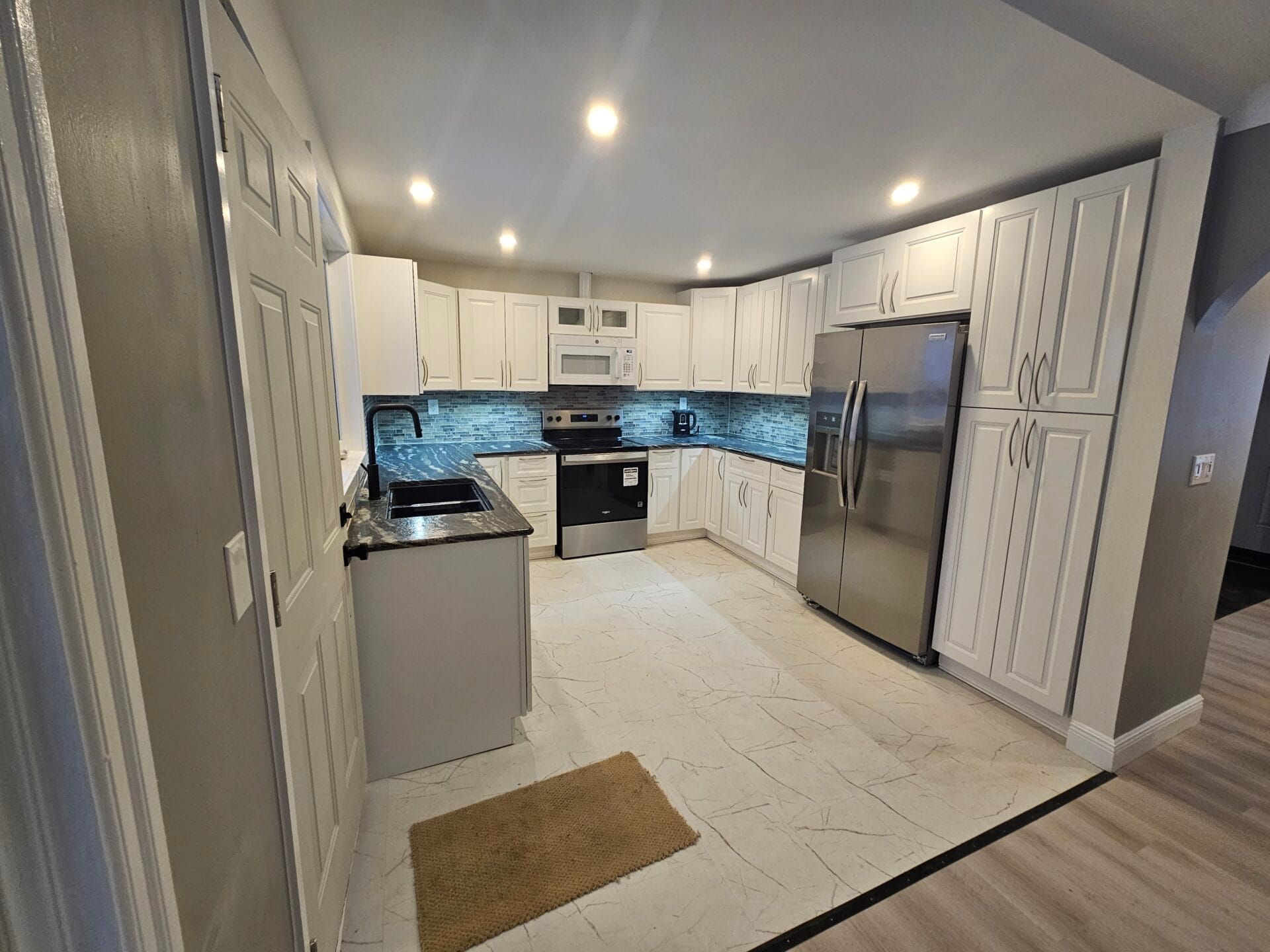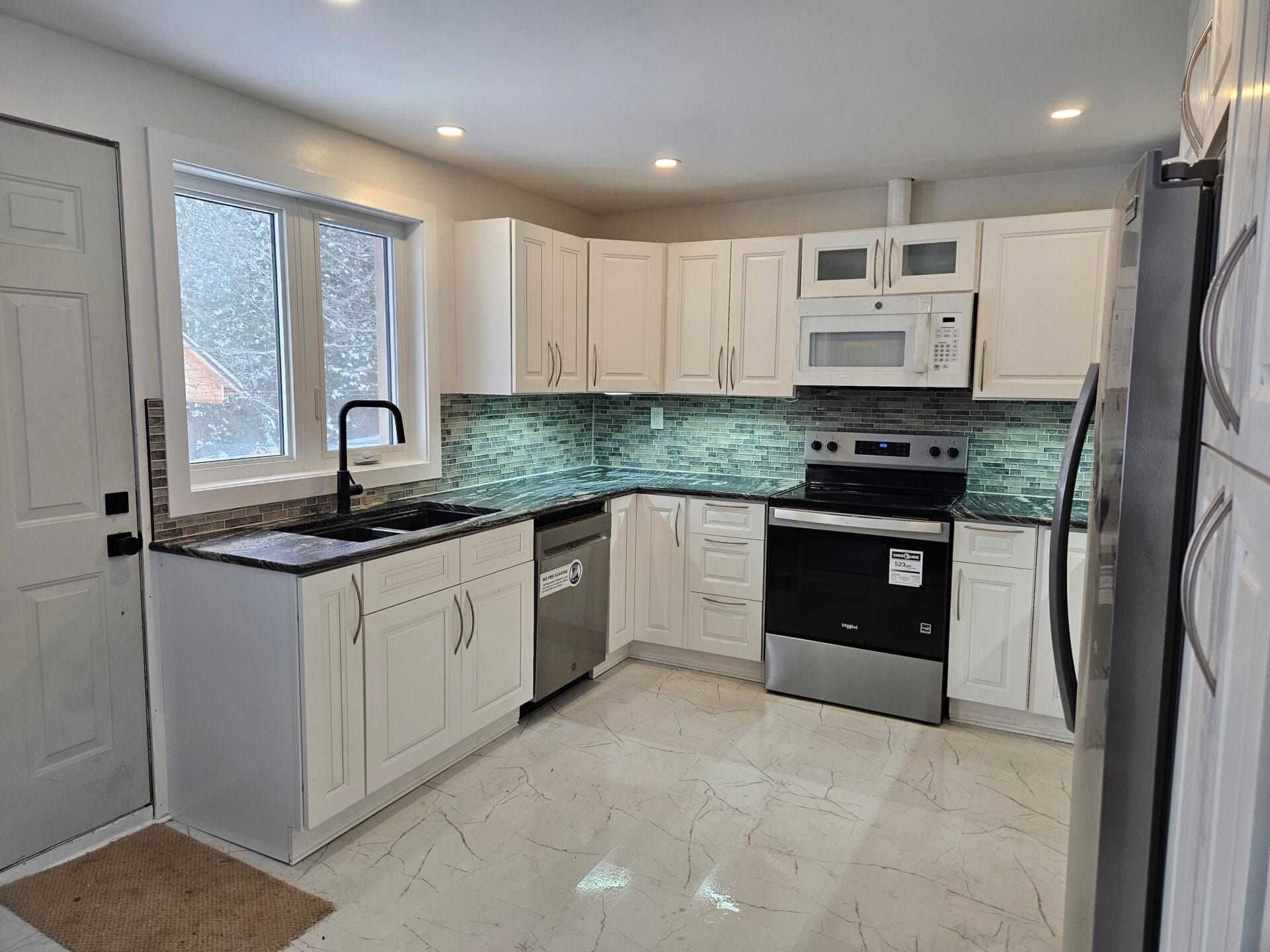 • Spacious kitchen with granite countertops and high-end stainless steel appliances.