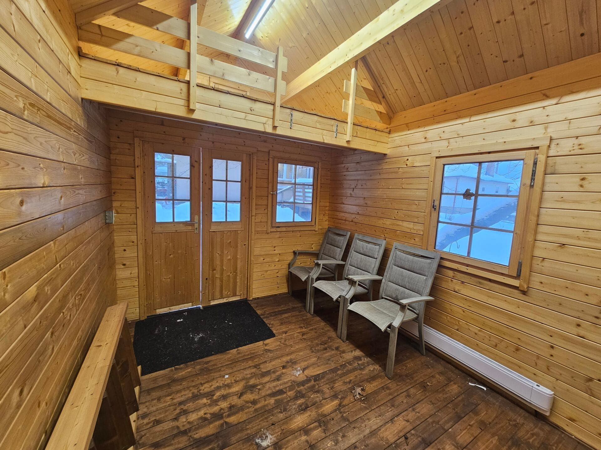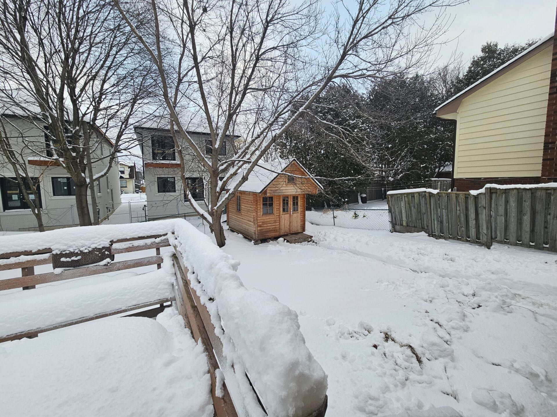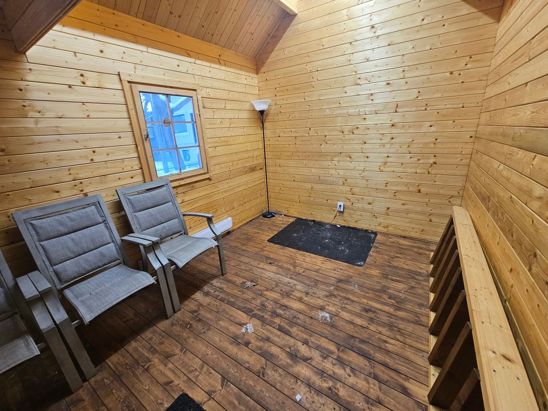 • Heated backyard bunkie adds flexible options for guests or office space.