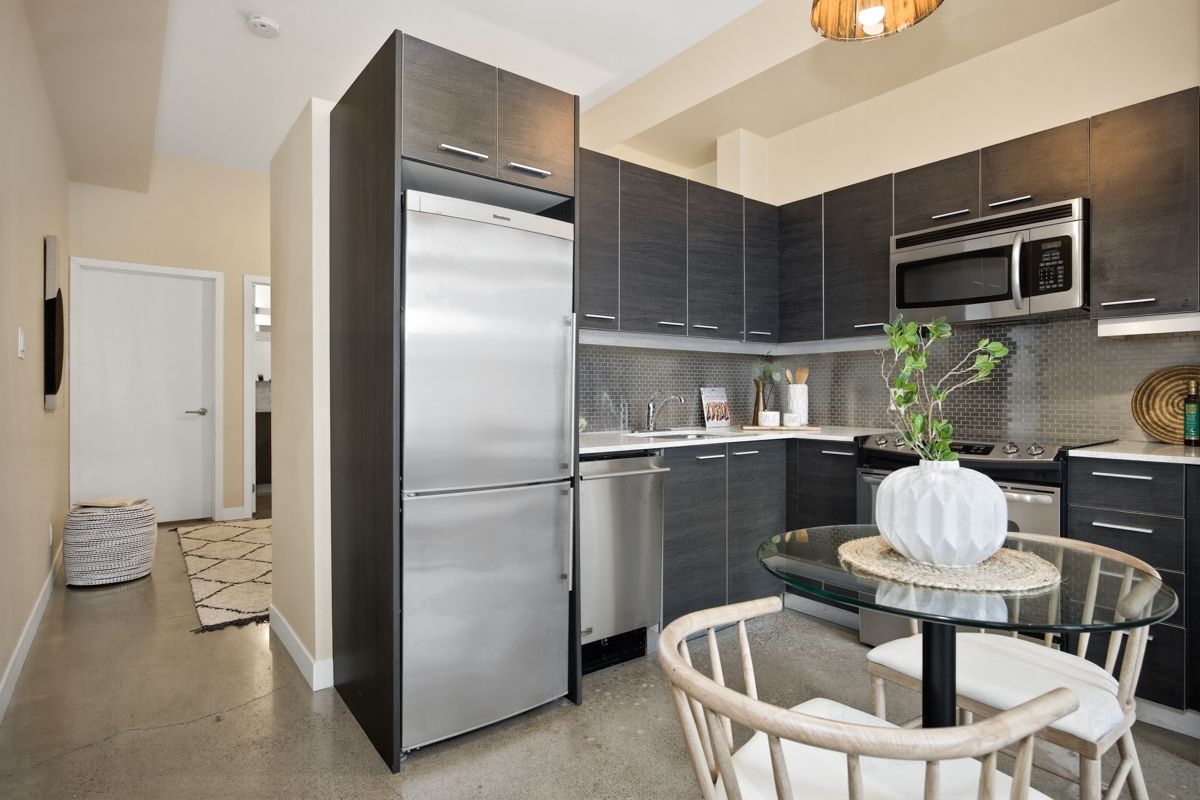 Welcome to corktown! Rare townhouse offering in the sought-after "corktown district lofts" by streetcar developments - a quaint, boutique, five-storey residence in the heart of corktown. This unique lofthouse-style unit offers direct street access and its own private front door, delivering the perfect blend of urban convenience and soft loft living. Inside, you'll find soaring 10-foot ceilings, polished concrete floors, and a modern open-concept design across 461 square feet of thoughtfully designed space. California shutters add both style and privacy. The upgraded kitchen features granite countertops, stainless steel appliances, and a custom stainless steel tile backsplash. The open-concept bedroom includes a triple closet complete with custom organizers, while the four-piece bathroom is finished with elegant counters and a deep soaker tub. A full-size washer and dryer are conveniently tucked into the utility closet. Residents enjoy access to premium amenities located at the sister building at 510 king street east, including a rooftop terrace with city views, fully equipped gym, lounge, media room, and kitchen/dining space. Situated in the heart of corktown, you're just steps to king street and within walking distance to the canary district, corktown commons, the distillery district, and st. Lawrence market. A rare opportunity to own a stylish street-level loft in one of toronto's most vibrant and walkable neighbourhoods.