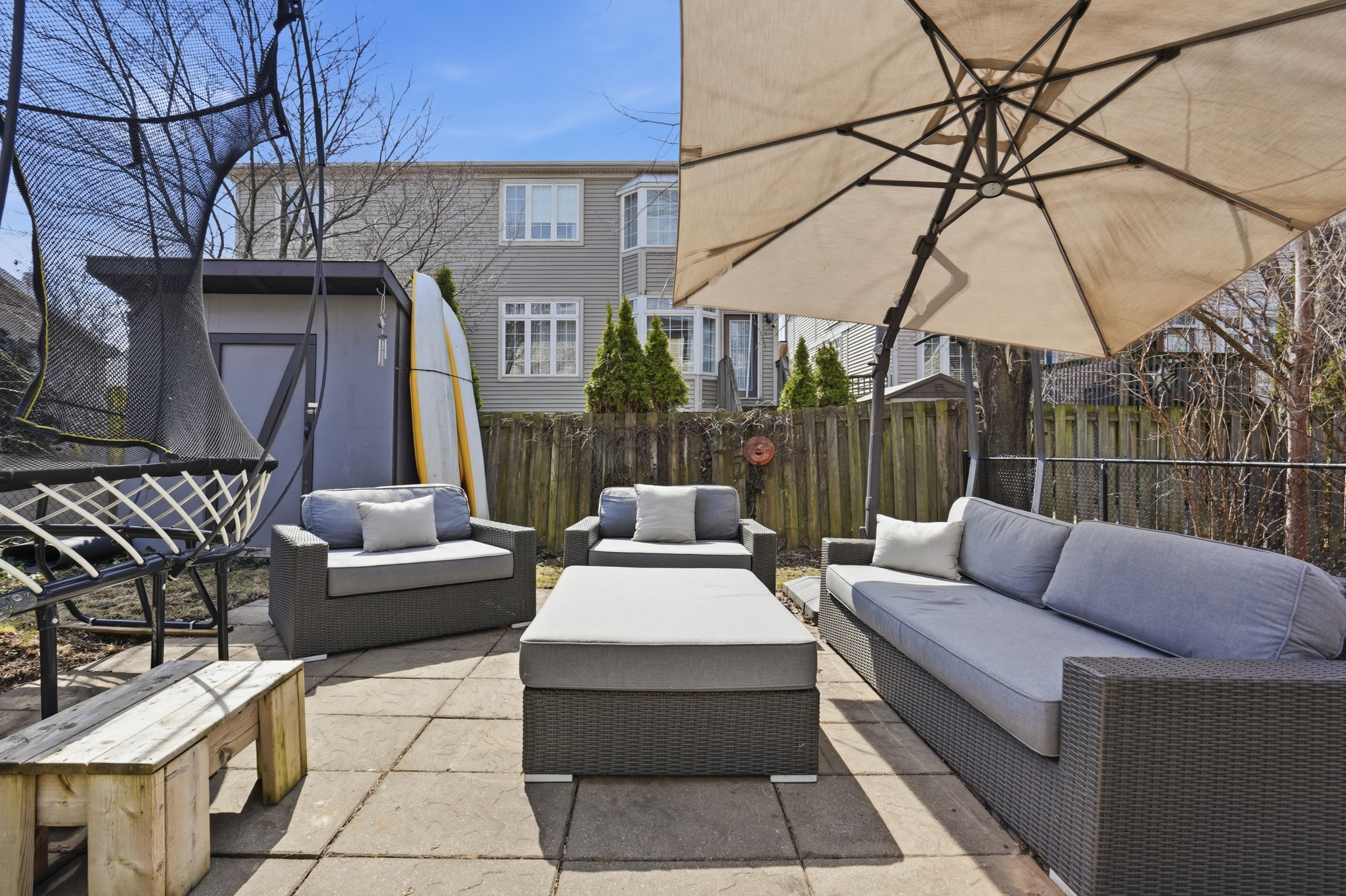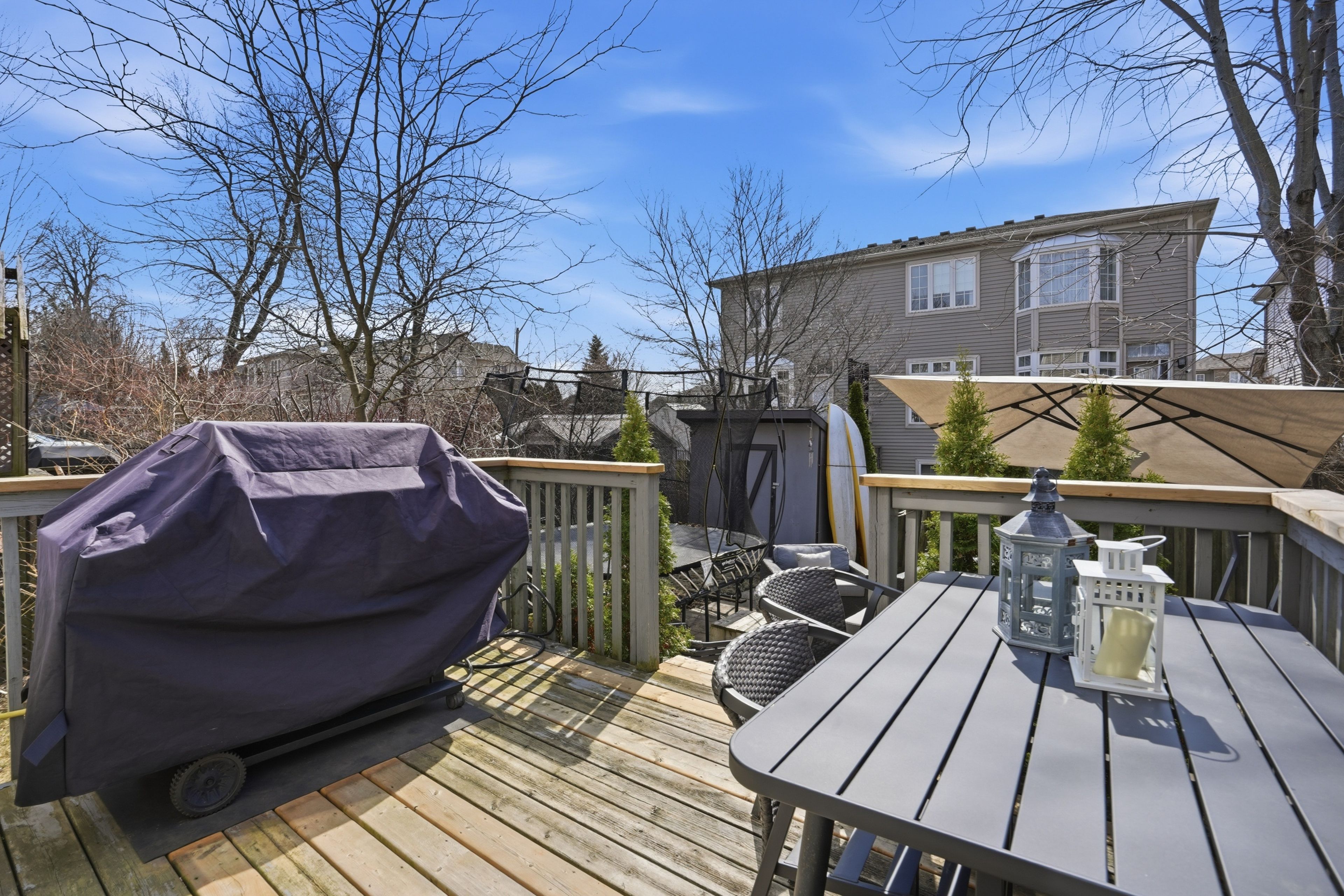 • Private backyard with deck, patio, and gas line for BBQ.