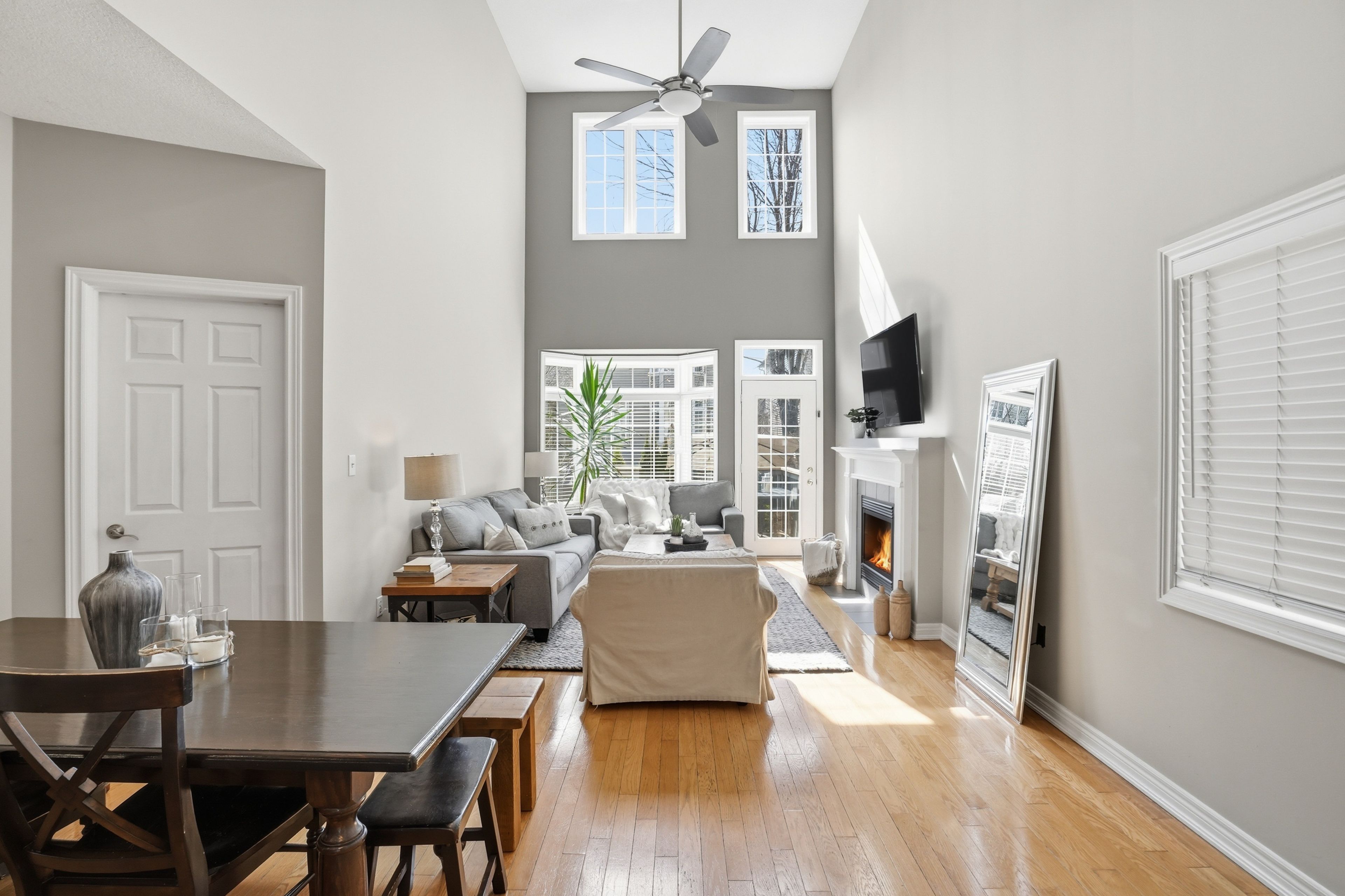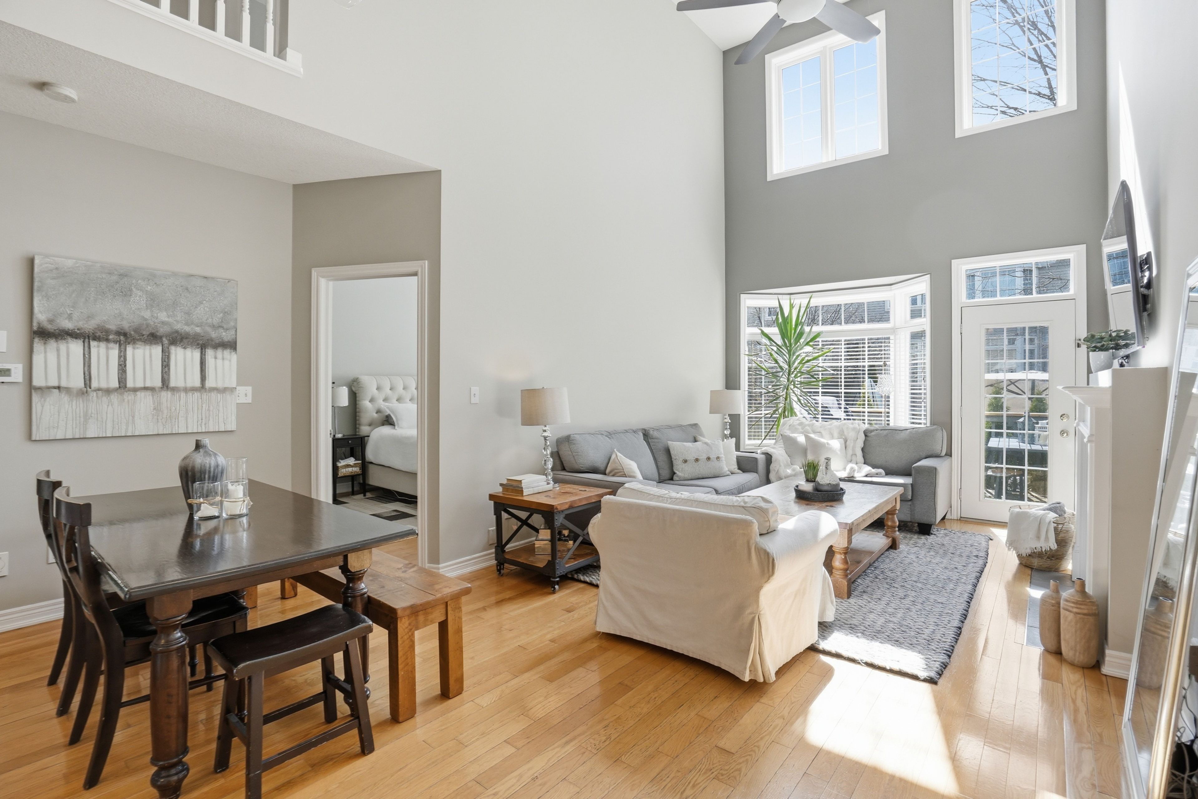 • Bright main living area features character and cathedral ceilings.