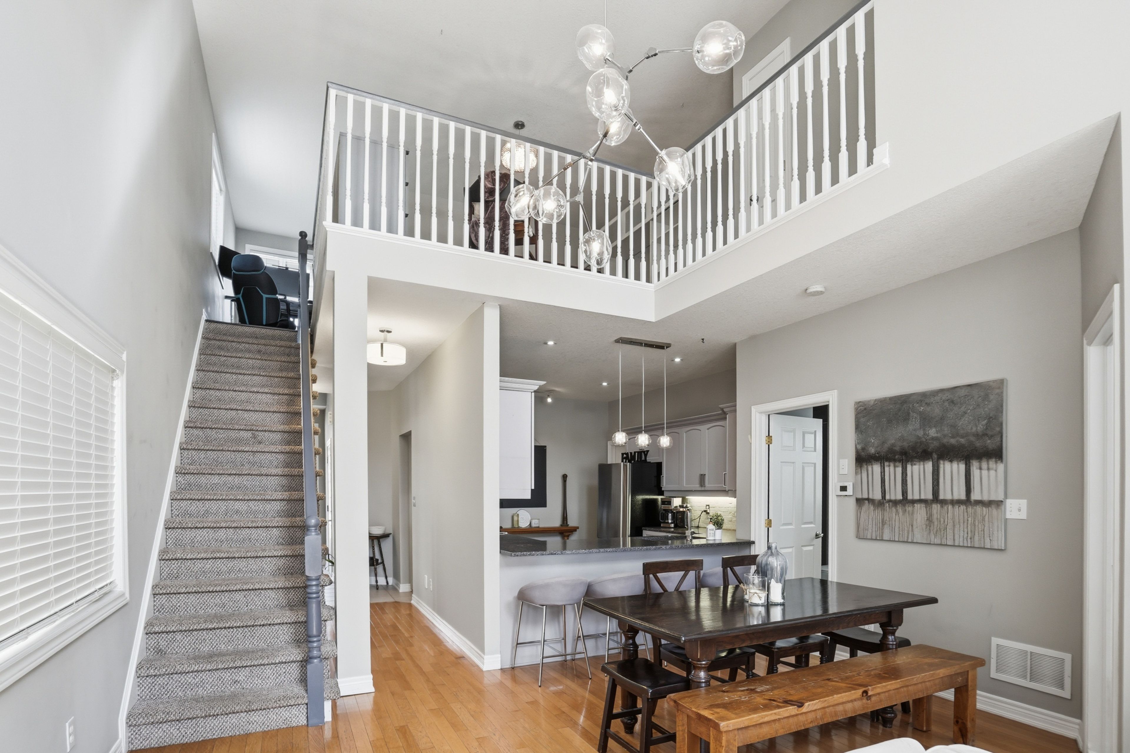 Welcome to this beautifully maintained semi-detached home in one of waterdown's most sought-after neighbourhoods, ideally located within walking distance to the bruce trail, community park with play structure, public library, and public transit with a direct route to the go train. Offering a rare and flexible layout, this home features two primary bedrooms-one conveniently located on the main floor and the other on the second level - both with ensuite privileges, making it ideal for multi-generational living, guests, or families seeking extra privacy. The bright and spacious main living area is filled with character, highlighted by cathedral ceilings in the living and dining rooms, creating an open and airy feel. Upstairs, a generous loft overlooks the family room and provides the perfect space for a home office, reading nook, or additional lounge area, just off the upper-level primary bedroom. The fully finished lower level offers exceptional in-law or nanny suite potential, complete with a full-sized kitchen, large bedroom with walk-in closet, 3-piece bathroom, comfortable living area, and large windows that bring in plenty of natural light. Step outside to enjoy the private backyard, featuring a deck, patio, free-standing shed, and gas line for your bbq-perfect for relaxing or entertaining. Additional highlights include an electric car charger in the garage, recently replaced roof shingles, furnace, and water tank, offering peace of mind for years to come. A rare opportunity to own a versatile and thoughtfully updated home in a prime waterdown location!