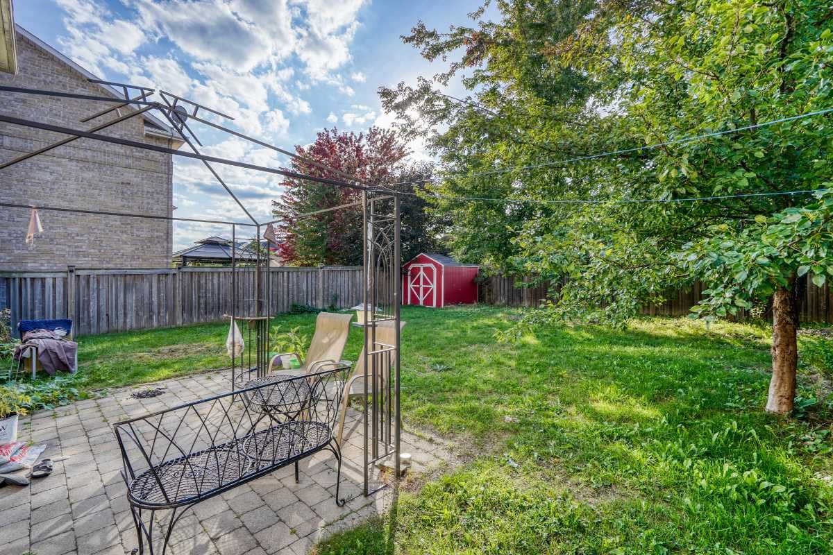 • Private, fully fenced backyard with a stone patio for gatherings.
