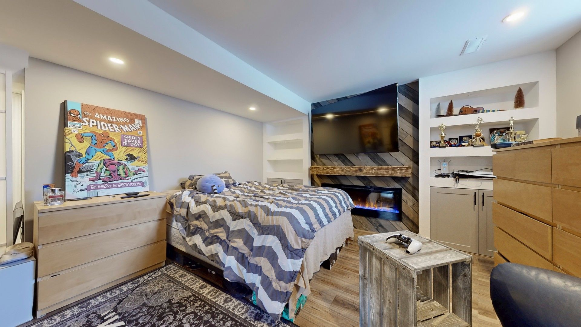 • Custom cabinetry in the family room for extra storage.