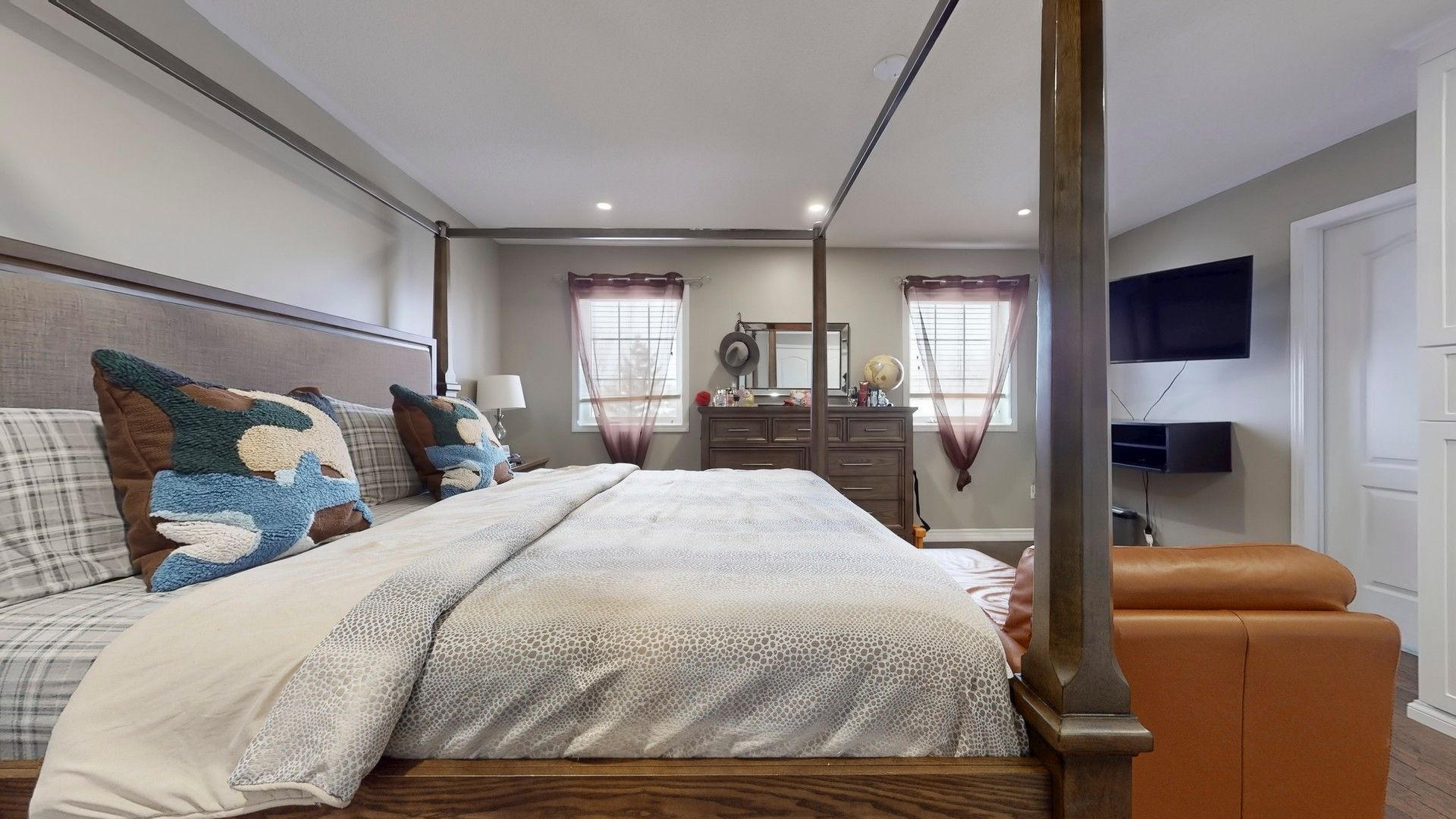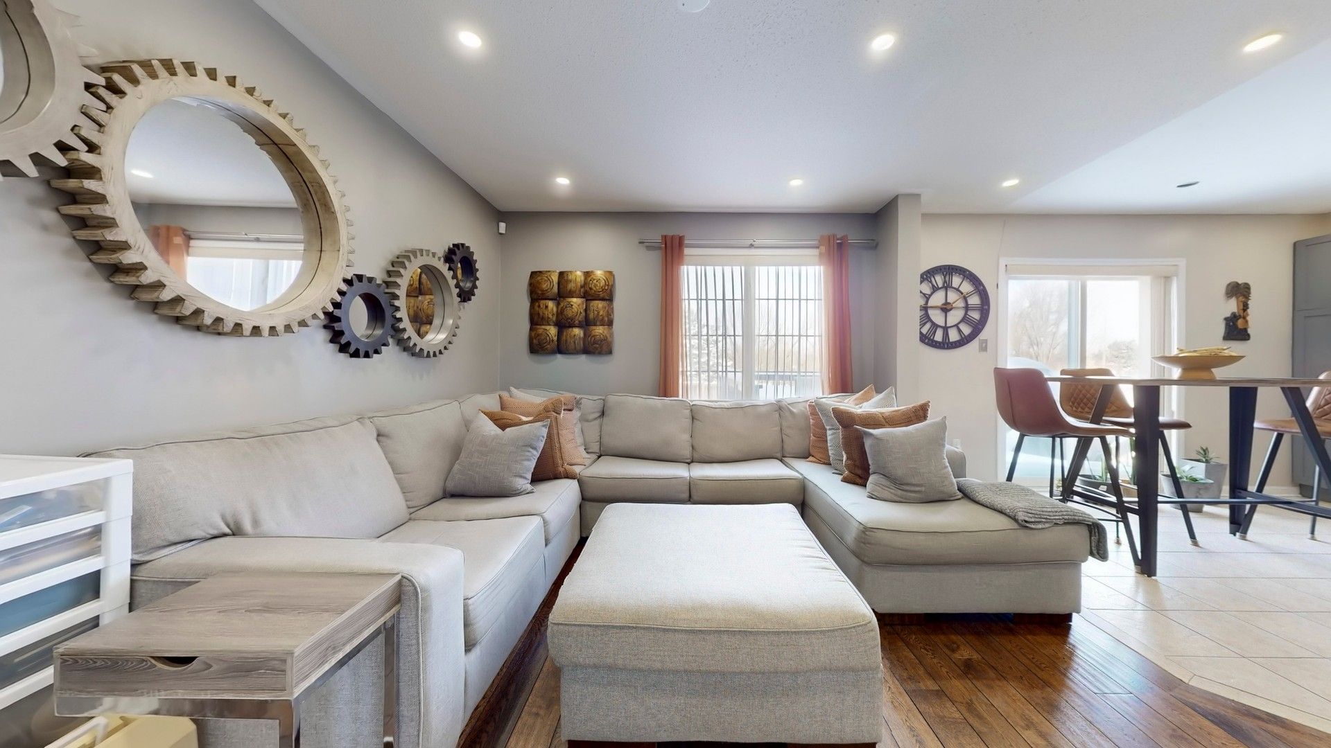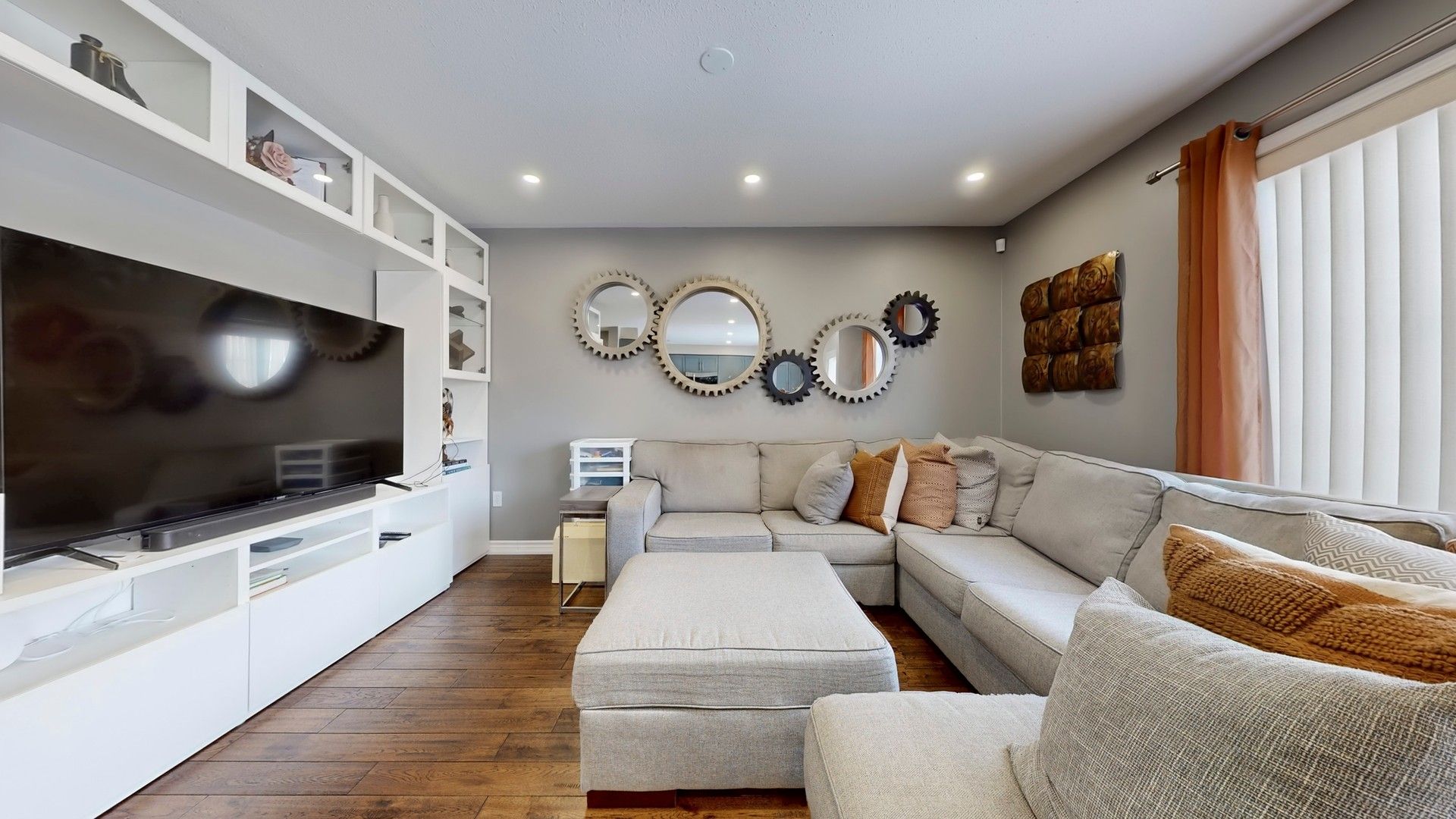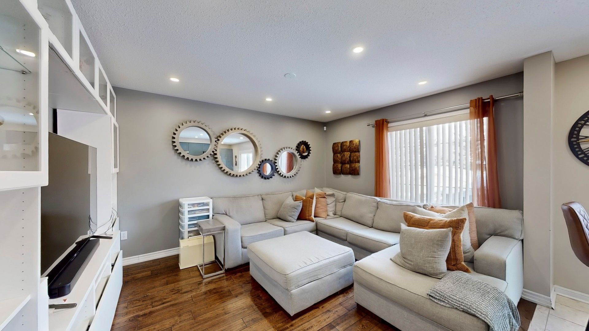 Excellent location! Beautiful semi-detached home backing onto a trail with a park in front and a huge backyard. Thousands spent on upgrades throughout, including a high-end concrete driveway. Features an open-concept layout with a spacious kitchen offering extra storage, quartz countertops, and a full quartz backsplash. Second-floor laundry for added convenience. Custom cabinetry in the family room provides ample storage. Walk out to a private balcony from the second bedroom with unobstructed park views. Very well maintained. Close to all amenities including sikh temple, mosque, la fitness, goodlife fitness, shopping, and more.