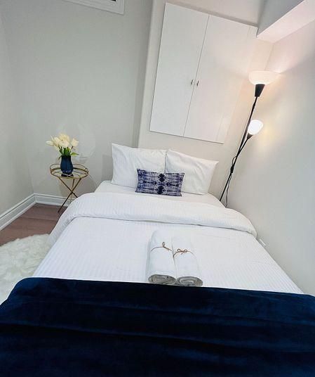 Luxurious & spacious 2-bedroom basement fully furnished apartment for rent in brampton east! Fully furnished location: cottrelle & clarkway (hwy 50) rent: $1800 all inclusive. 2 cozy bedrooms + 1 clean bathroom fully furnished apartment with stylish decor private entrance + keyless lock system bright space with large windows & natural light kitchen with full set of cooking utensils & essentials living room with comfy sofa-cum-bed for extra guests 70 smart tv with youtube, netflix & amazon prime in-unit washer & dryer for your convenience 2 dedicated parking space on driveway 24x7 surveillance & alarm system for safety peaceful, family-oriented neighbourhood nearby spas, beauty salons & wellness centres minutes from grocery stores, restaurants & parks clean, comfortable, & move-in ready! Just a 3-minute walk to the plaza: freshco, shoppers drug mart, starbucks, pizza pizza, subway, banks, spa, walk-in clinic & more! Location highlights: 12 mins to toronto pearson airport 25 mins to downtown toronto 15 mins to canadas wonderland 15 mins to vaughan mills mallextras: