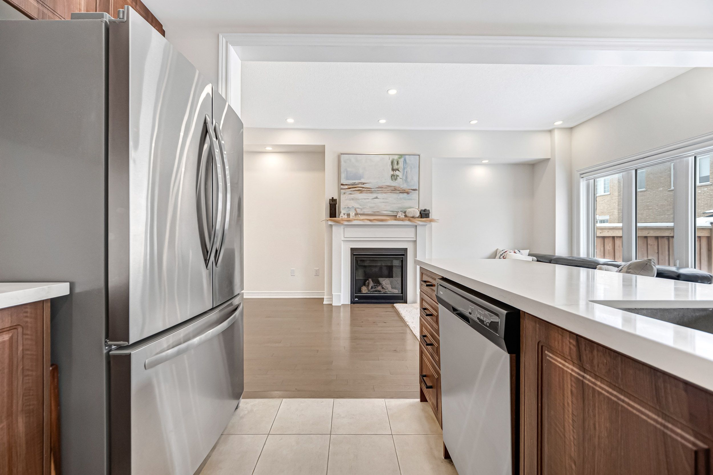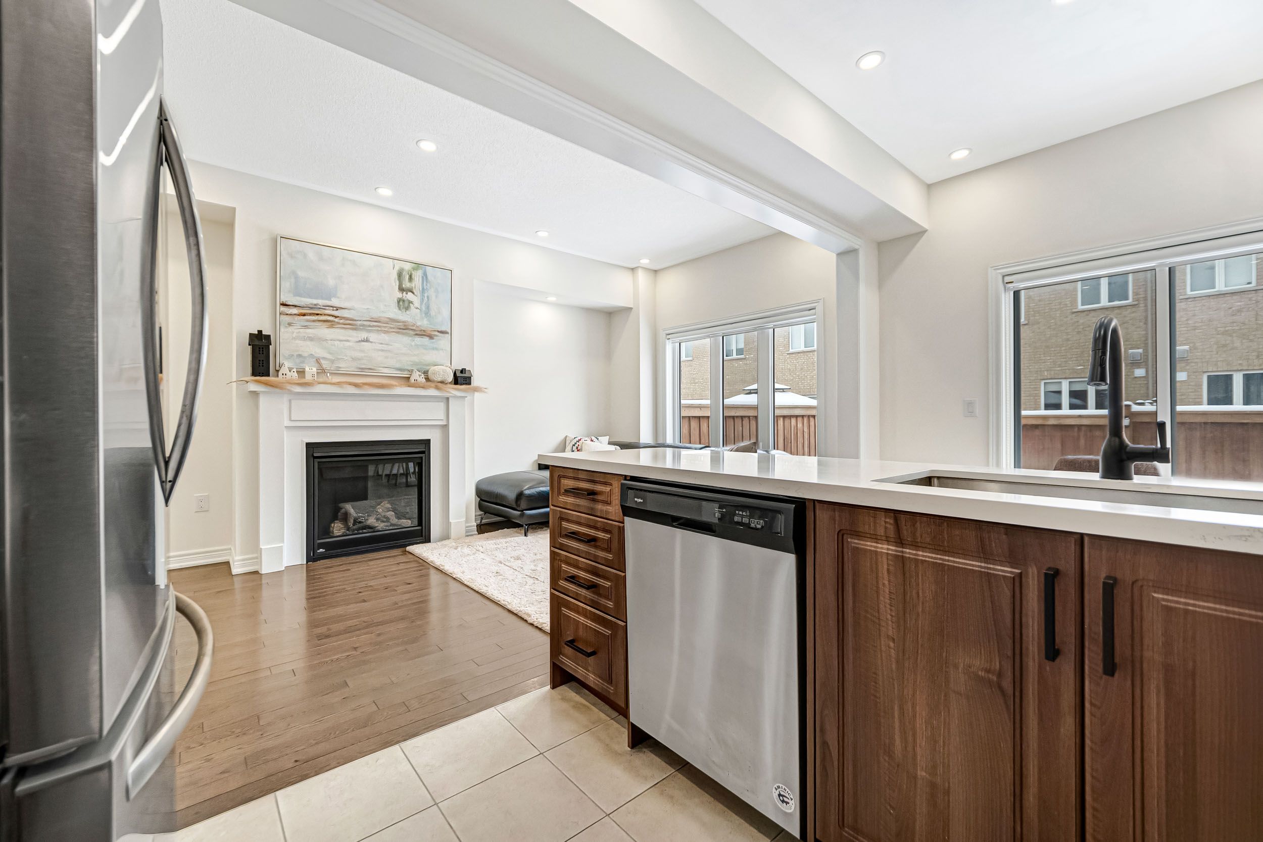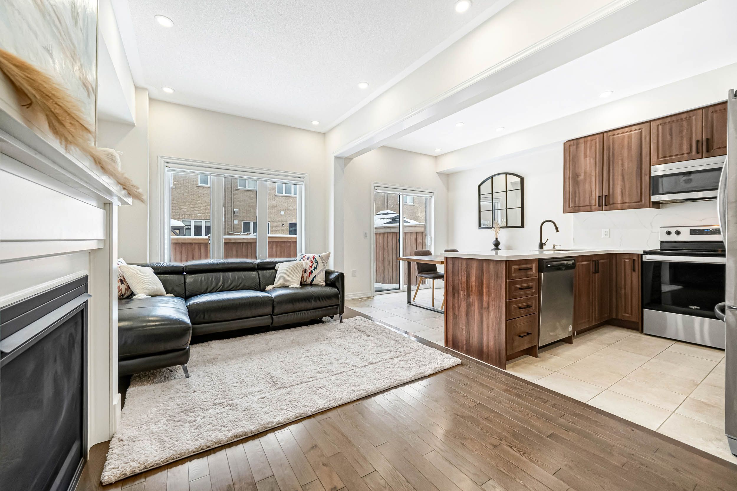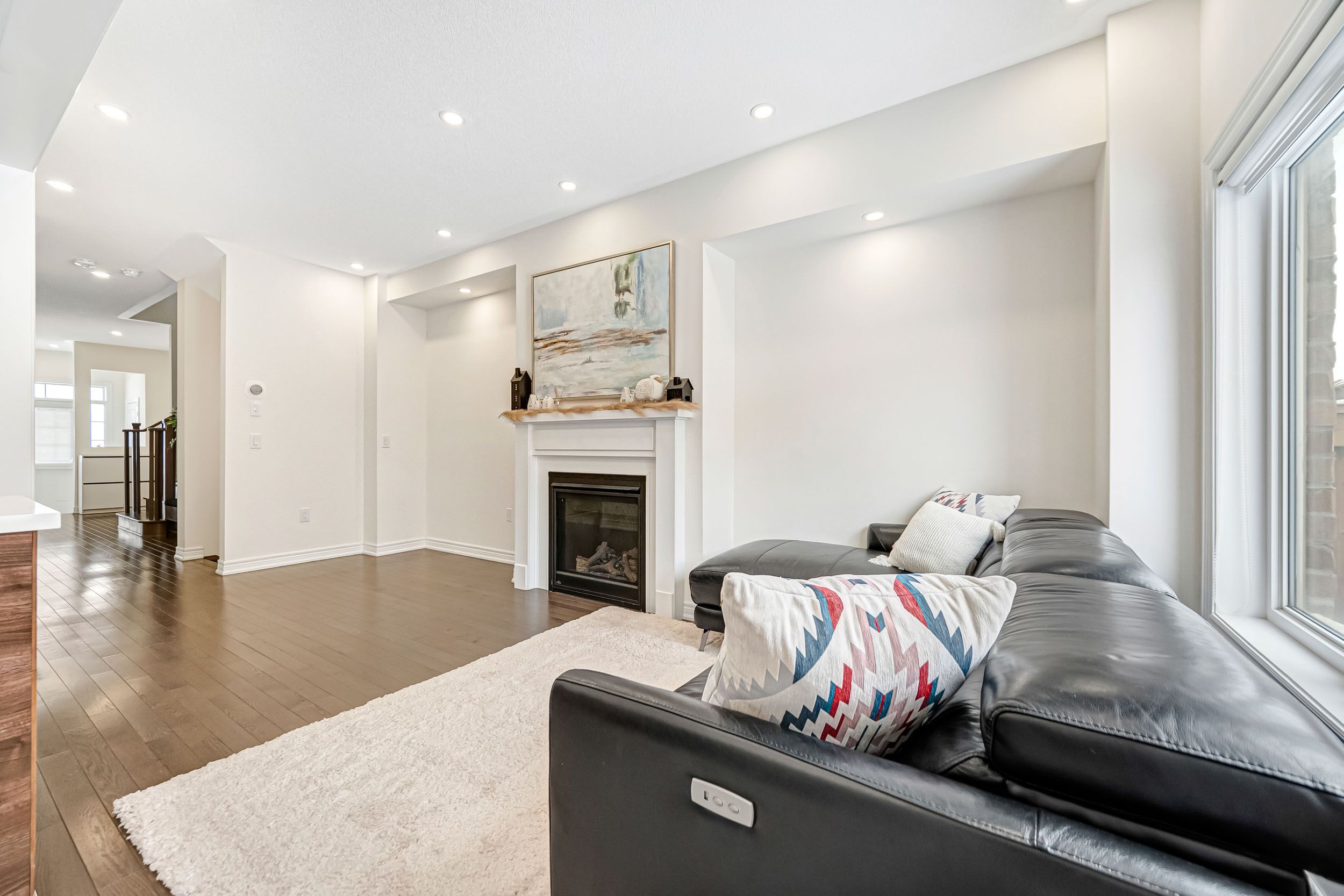 Stunning 3-bedroom freehold townhouse in the sought-after, family-friendly community of bradford west gwillimbury. This bright, open-concept home features 9-foot ceilings, hardwood flooring on the main level and upper hallway, and new pot lights, curtains, and blinds throughout. The upgraded kitchen offers modern appliances, enhanced countertops, and a stylish backsplash-perfect for everyday living and entertaining. The spacious primary suite includes a walk-in closet and a private ensuite with a separate tub and shower. Conveniently located within walking distance to schools, parks, shopping, the bradford leisure centre, and the library, with elementary schools, high schools, shopping center, a leisure center, and a library all within approximately 10 minutes' distance. Minutes to highways 400 & 404 and the bradford go station-ideal for families and commuters.
