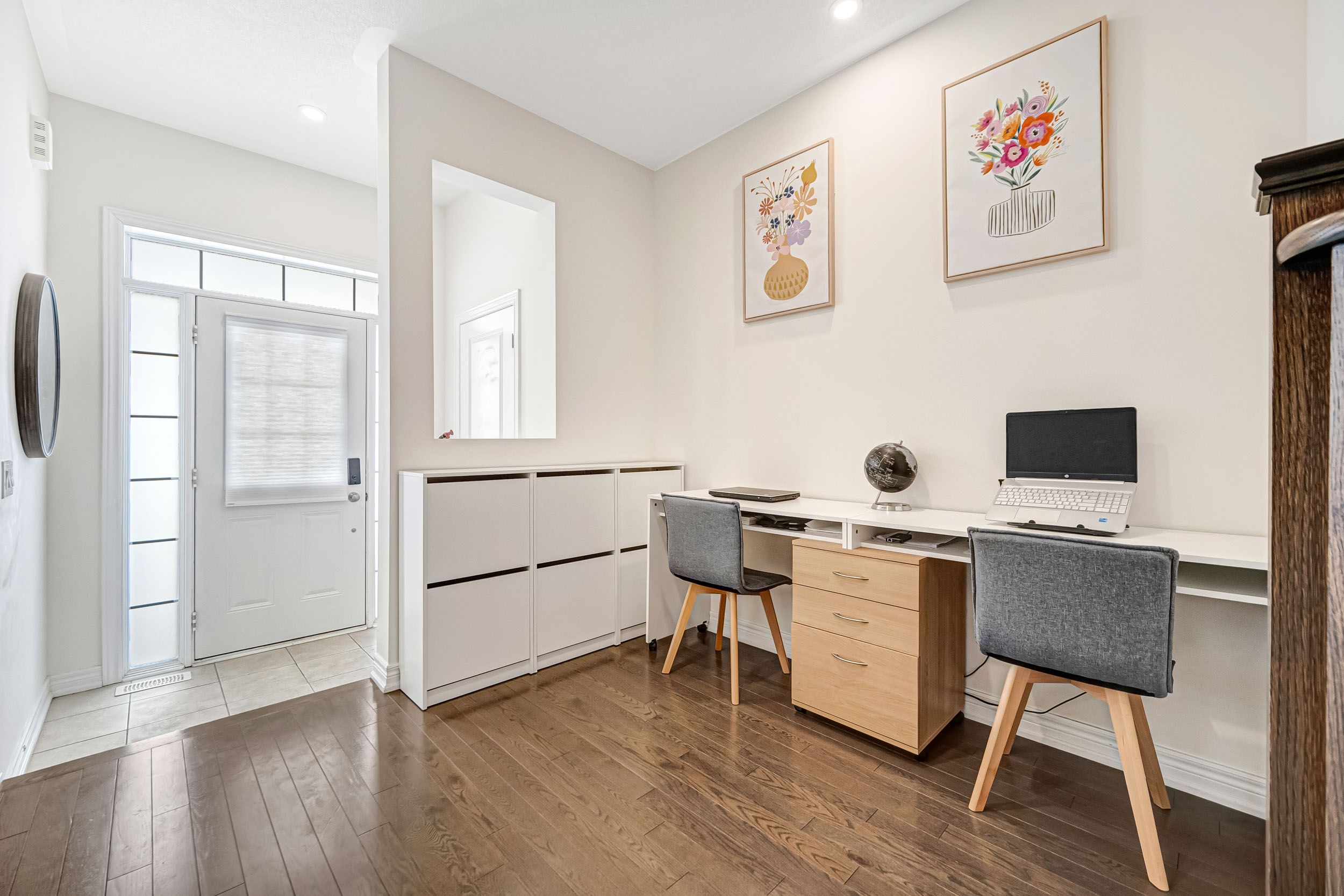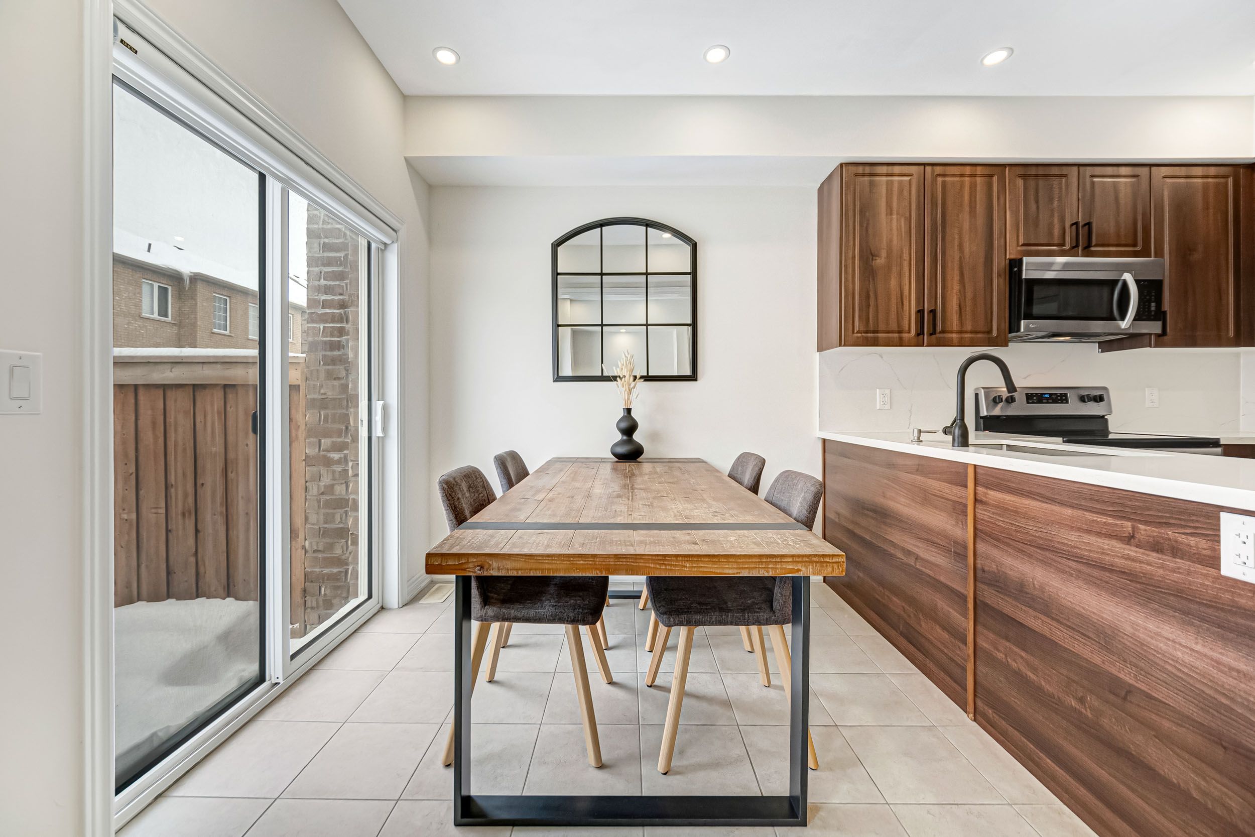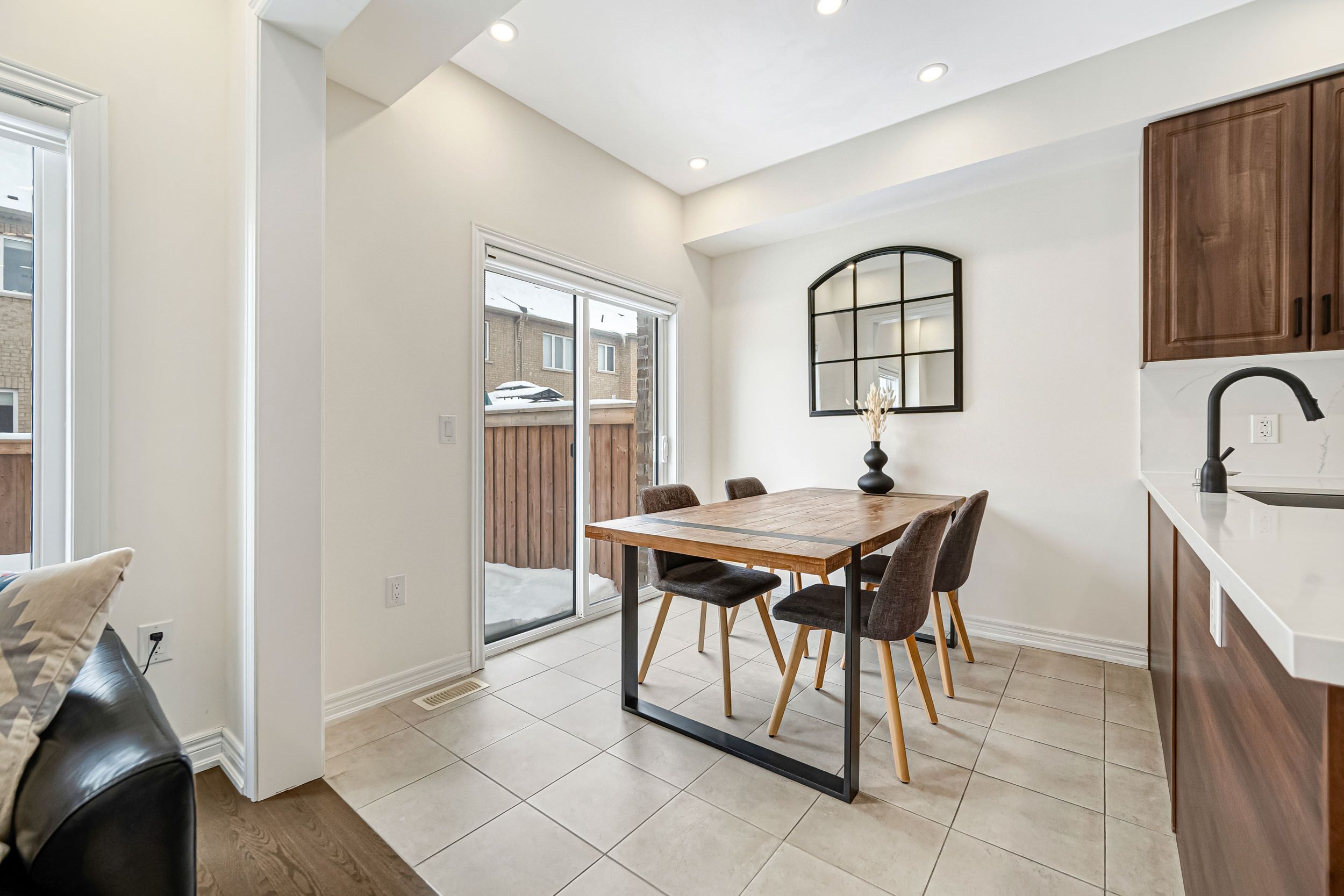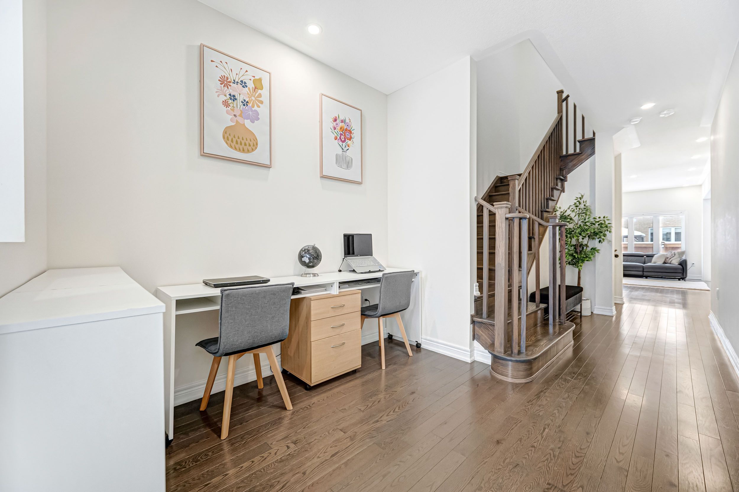 • Bright, open-concept townhouse with 9-foot ceilings and hardwood flooring.