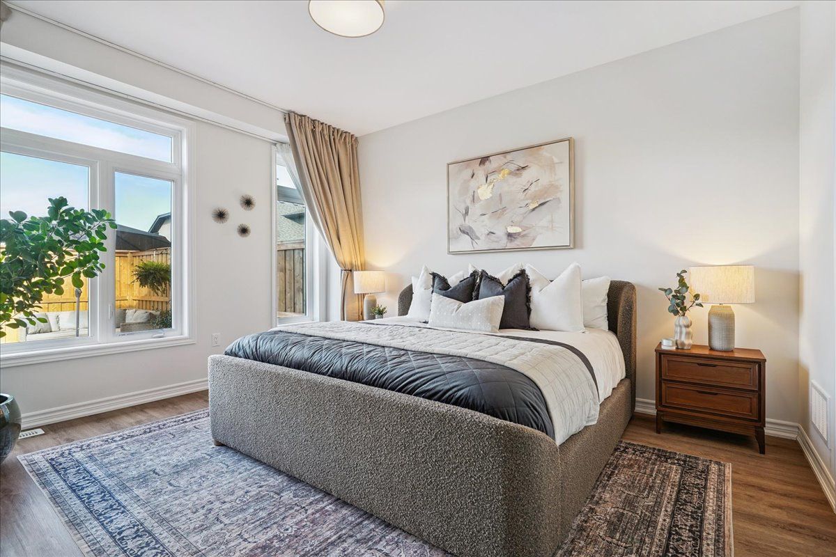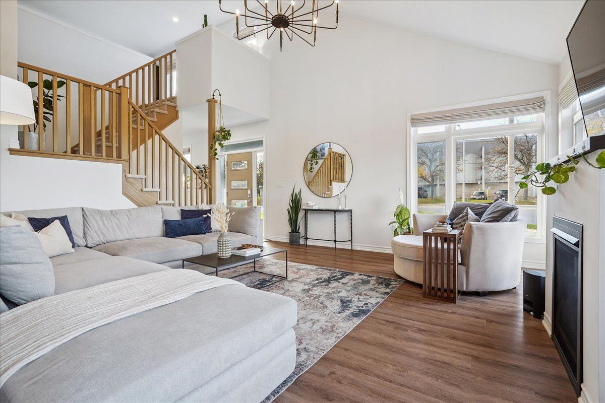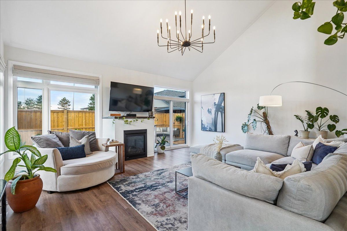 It's rare for a three bedroom, two car garage, end-unit bungaloft with over $100k in upgrades to come on the market in this neighbourhood. Over 2450 sq ft of beautifully upgraded living space with stress-free, low maintenance living. Small monthly fee provides lawn maintenance (front and back!) and snow removal, even on the driveway - no need to own a snow shovel or a lawnmower. Entertaining and cooking is a breeze in the naturally bright kitchen with a waterfall quartzite oversized island. Quartzite backsplash and counters create a beautiful backdrop throughout the kitchen with no shortage of storage. Soaring corner windows allow for copious amounts of natural light throughout the day. Relax in the family room/living room with huge windows, soaring ceiling, gas fireplace and walkout to fully-fenced and private backyard with deck (2025). Main-floor primary bedroom with 4-pc ensuite overlooks the backyard. Spa-like primary ensuite is a dream with upgraded frameless glass enclosure, designer-tiled shower, rain shower head and double vanity (2023). Upgraded main-floor laundry room with sink and plenty of storage (2025) has direct access to the two car garage. Motorized window treatments throughout the main floor. Upper loft overlooking the family room can double as another hangout space and/or office - the choice is yours. Two ample-sized bedrooms are situated on the upper level with a 4-pc bathroom. Clean, dry and warm basement with triple coated polyurethane floor (no dust!) and a basement bathroom rough-in is a blank canvas for finishing ideas and ideal for worry-free storage. Cantina aficionados will enjoy the 4' x 15' finished and insulated cold room. This is luxurious, stress free living at its finest.