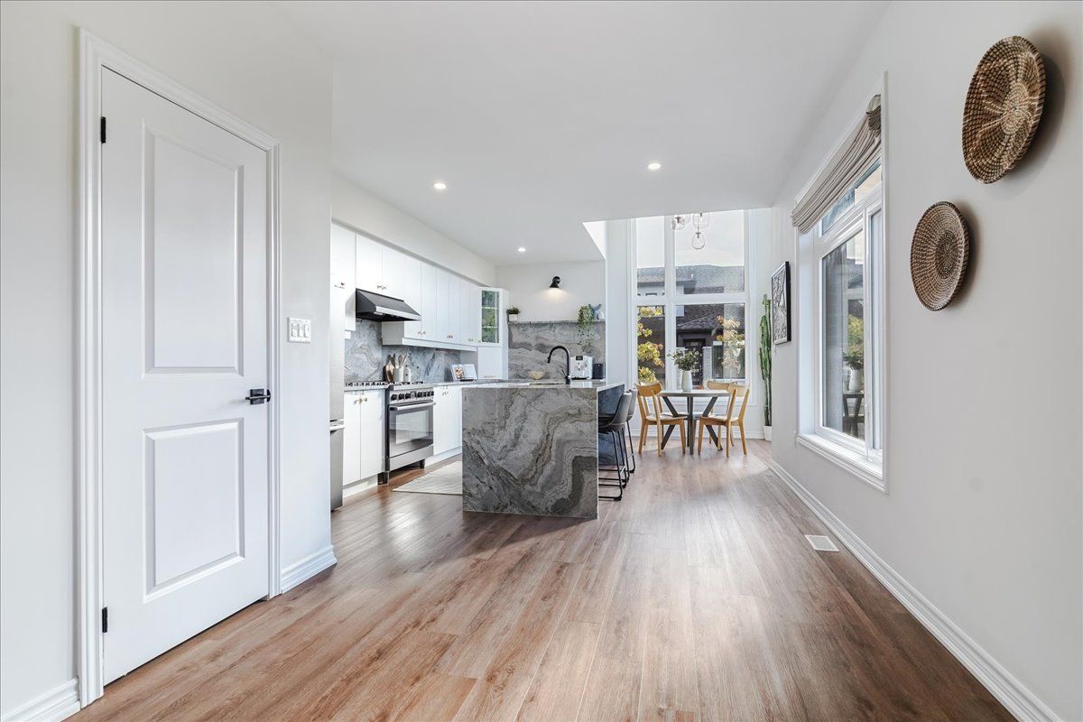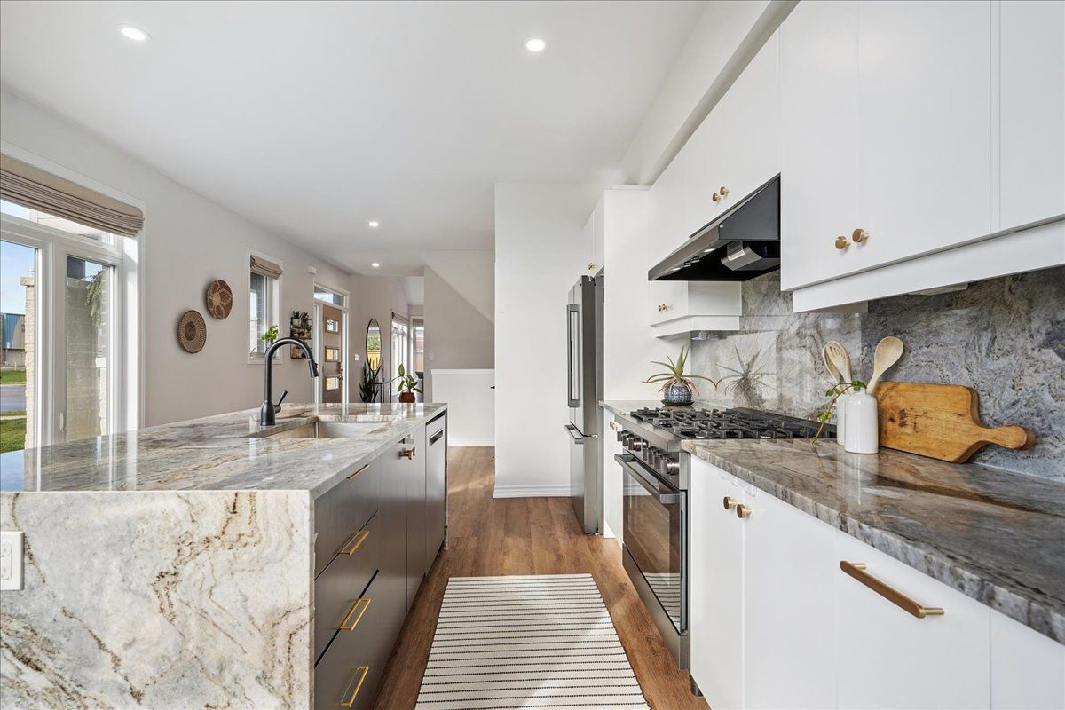 • Bright kitchen with oversized quartzite island, perfect for entertaining.