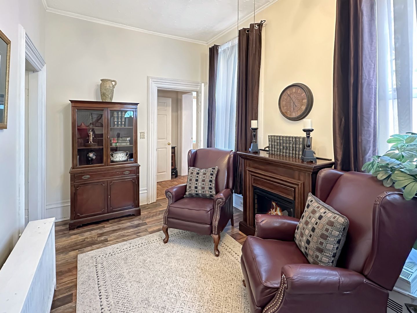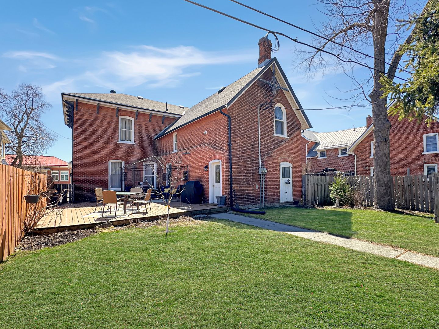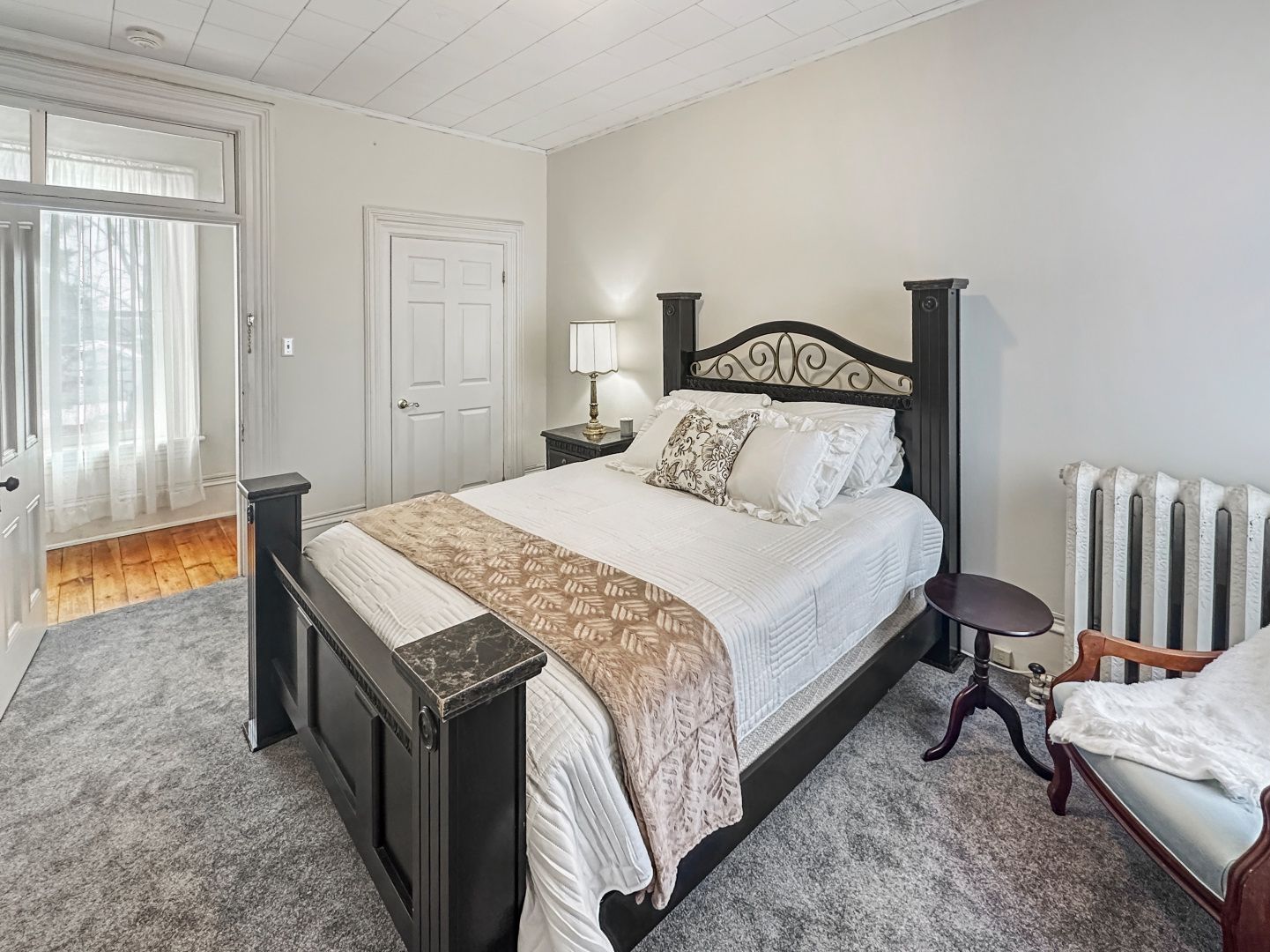 Welcome to this beautifully updated two-storey brick century home set in the heart of downtown stirling. Brimming with timeless character and thoughtfully modernized throughout, this grand 1800s residence offers exceptional space and versatility for today's lifestyle. The generous main level welcomes you with a bright front sunroom and flows into a large, inviting living room, a cozy fireplace reading room, and a formal dining room perfect for gathering. The stylishly updated kitchen features abundant cabinetry and a center island designed for both everyday living and effortless entertaining. A comfortable den, family room, private office, and a full three-piece bath complete the level-offering a layout that could easily be transformed into a self-contained in-law suite. Upstairs, accessible by two separate staircases, you'll find five well-proportioned bedrooms and a stunning five-piece bathroom highlighted by a relaxing soaker tub. Convenient second-floor laundry adds everyday practicality, while beautiful original flooring throughout enhances the home's warmth and enduring appeal. Outdoors, enjoy a fully fenced backyard with a spacious deck ideal for hosting or unwinding. The charming carriage house provides parking for two vehicles, abundant storage, and a loft space full of future potential. With ample additional parking and an unbeatable location just steps to stirling's shops, cafés, and local amenities, this property perfectly balances heritage elegance and modern comfort. More than just a residence, this is a lifestyle opportunity in the vibrant downtown core-where theatre, restaurants, coffee shops, and everyday essentials are all within easy walking distance. Known affectionately as the village with a big heart, stirling offers a true sense of community and connection.