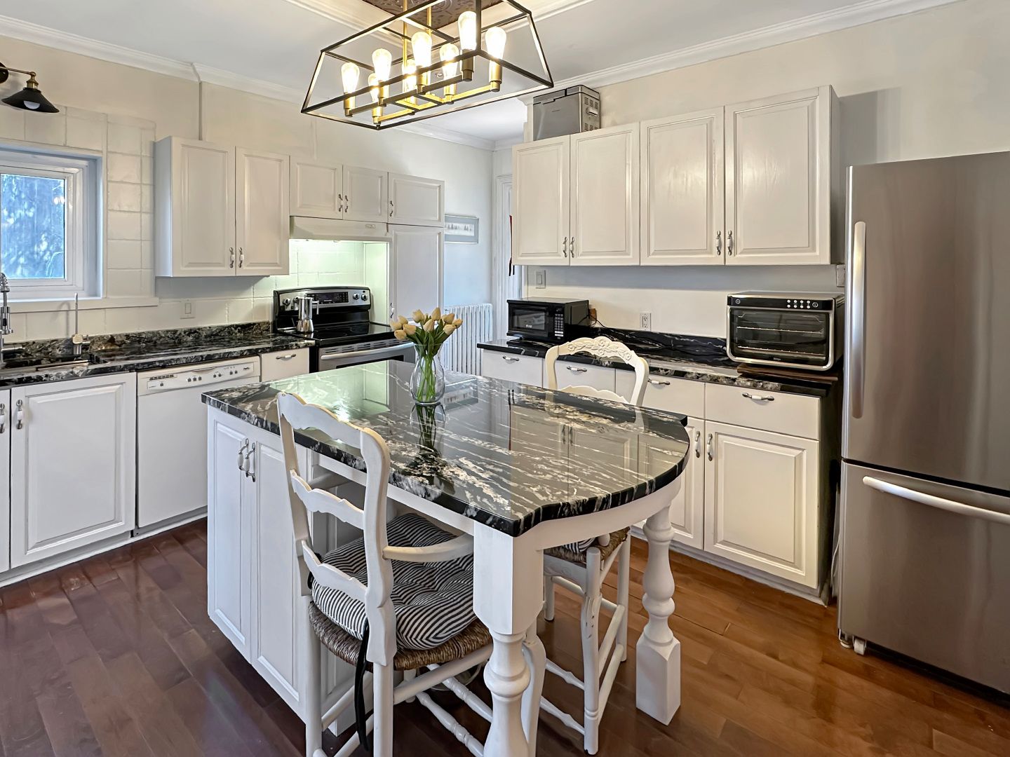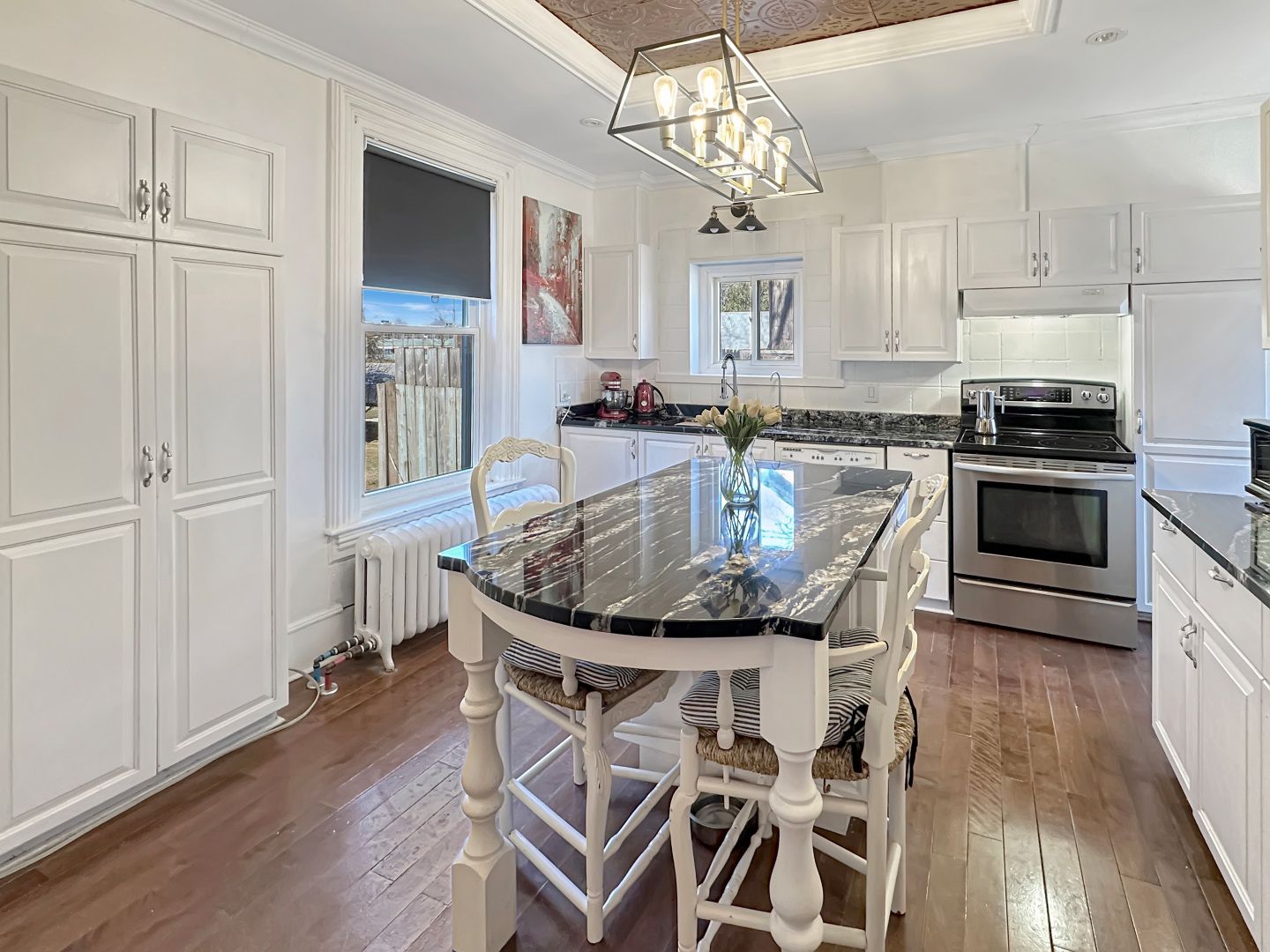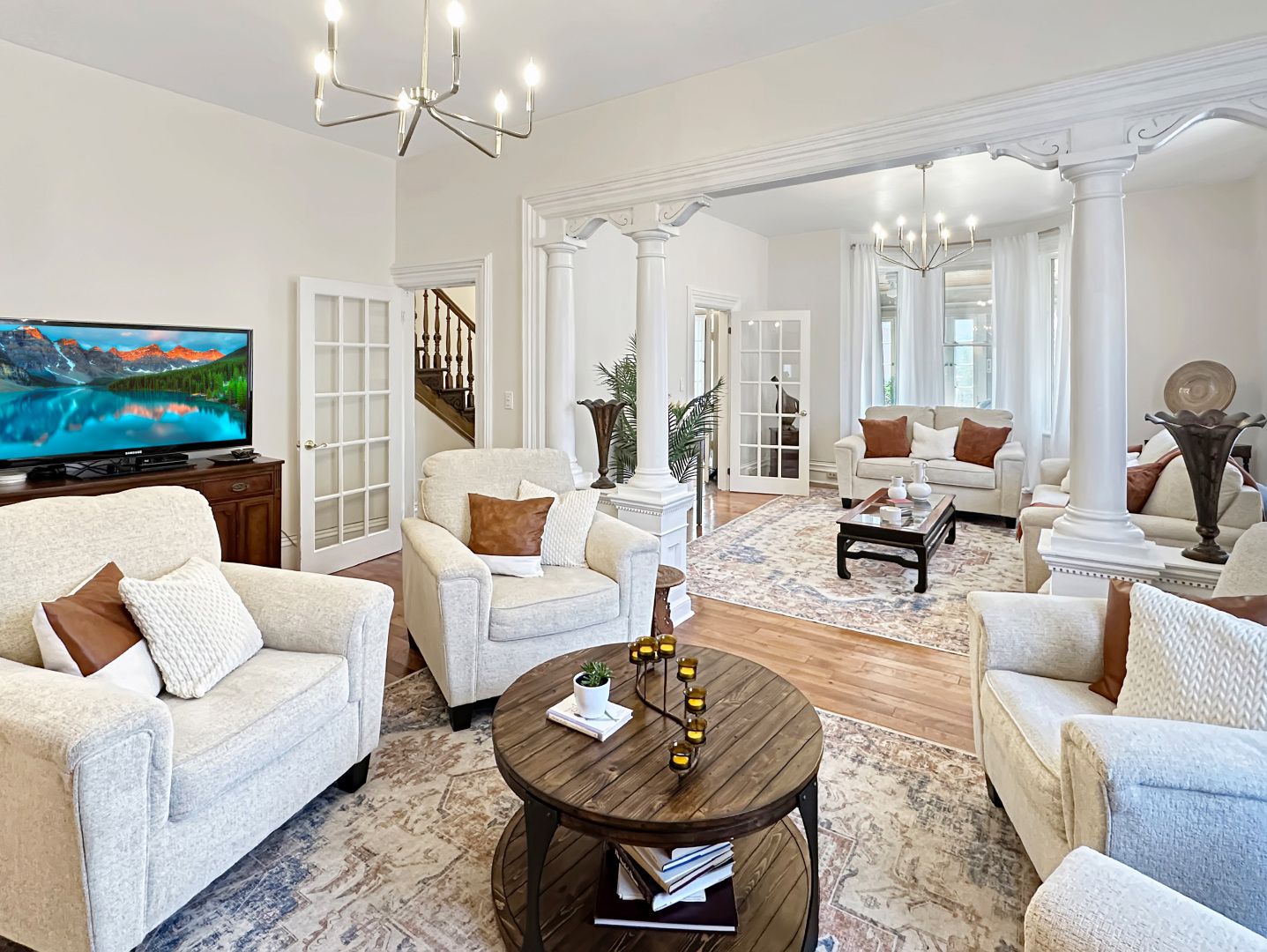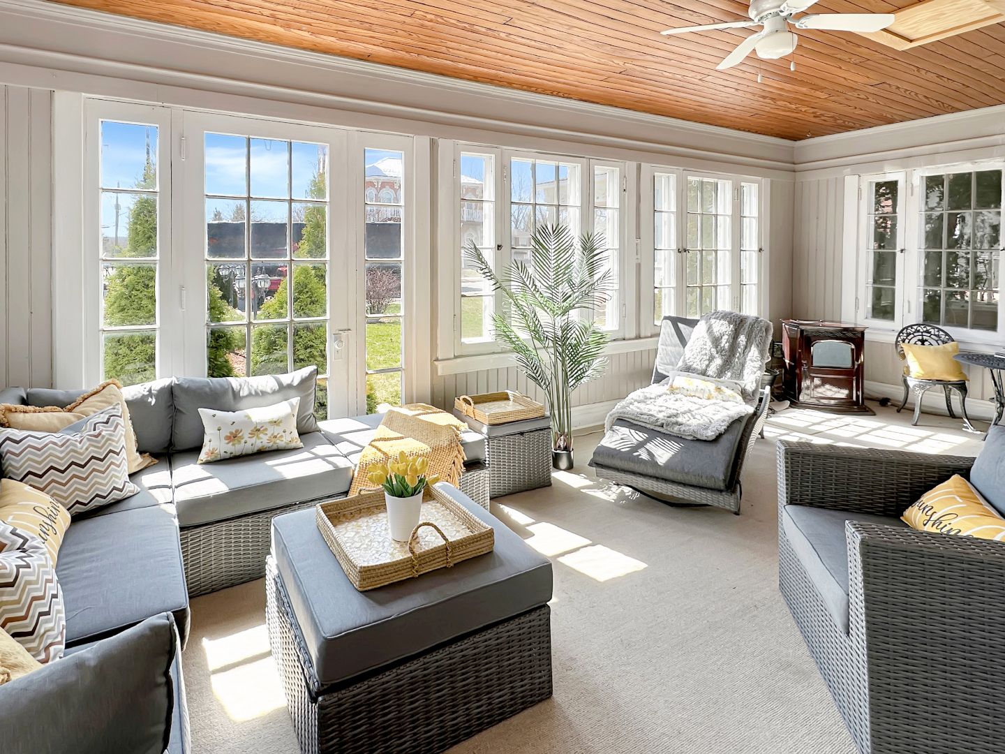 Welcome to this beautifully updated two-storey brick century home set in the heart of downtown stirling. Brimming with timeless character and thoughtfully modernized throughout, this grand 1800s residence offers exceptional space and versatility for today's lifestyle. The generous main level welcomes you with a bright front sunroom and flows into a large, inviting living room, a cozy fireplace reading room, and a formal dining room perfect for gathering. The stylishly updated kitchen features abundant cabinetry and a center island designed for both everyday living and effortless entertaining. A comfortable den, family room, private office, and a full three-piece bath complete the level-offering a layout that could easily be transformed into a self-contained in-law suite. Upstairs, accessible by two separate staircases, you'll find five well-proportioned bedrooms and a stunning five-piece bathroom highlighted by a relaxing soaker tub. Convenient second-floor laundry adds everyday practicality, while beautiful original flooring throughout enhances the home's warmth and enduring appeal. Outdoors, enjoy a fully fenced backyard with a spacious deck ideal for hosting or unwinding. The charming carriage house provides parking for two vehicles, abundant storage, and a loft space full of future potential. With ample additional parking and an unbeatable location just steps to stirling's shops, cafés, and local amenities, this property perfectly balances heritage elegance and modern comfort. More than just a residence, this is a lifestyle opportunity in the vibrant downtown core-where theatre, restaurants, coffee shops, and everyday essentials are all within easy walking distance. Known affectionately as the village with a big heart, stirling offers a true sense of community and connection.