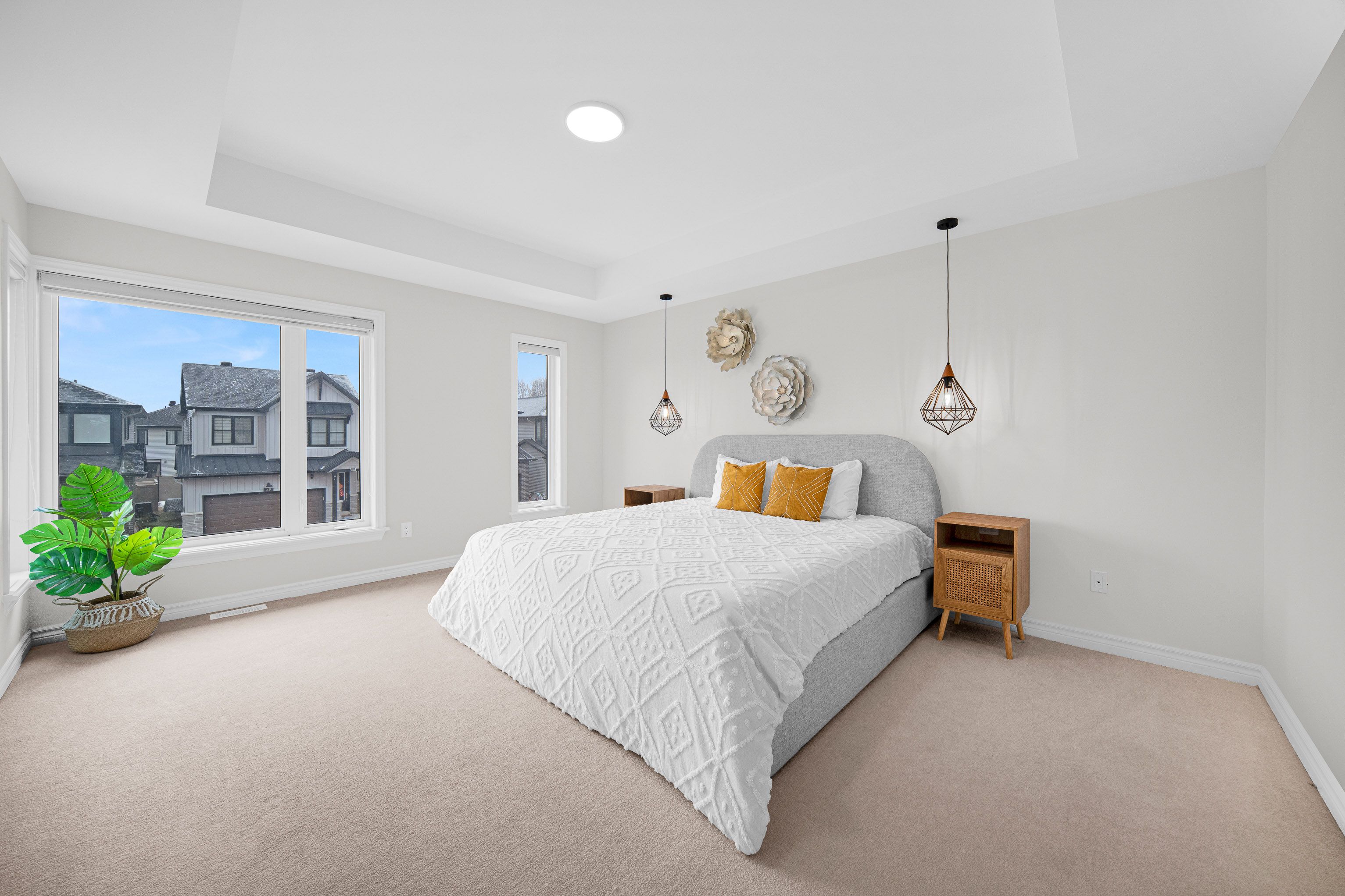 Welcome to this stunning south-facing single detached home with 4 bed/4bath/double garage, and a breathtaking open-to-above design in the heart of riverside south. From the moment you step inside, the home feels bright, airy, and inviting. The main floor features a thoughtfully designed open-concept layout with a versatile flex room at the front, perfect as a home office or kids' play area. The living and dining area is truly the heart of the home, highlighted by a dramatic 18-foot open-to-above living room with floor-to-ceiling windows that flood the space with natural light all day long thanks to the desirable south-facing exposure. Just beside it, the grand chef's kitchen is both beautiful and functional, showcasing an oversized center island, stylish two-tone cabinetry, and a cleverly designed pantry with a second sink and workstation, perfect for keeping prep and cleanup tucked away while offering plenty of extra storage. Upstairs you'll find four spacious bedrooms including a serene primary suite with coffered ceilings and custom bedside lamps, along with a luxurious five-piece ensuite featuring quartz counters, a separate shower, and a soaker tub. Three additional well-sized bedrooms, a full bath, and convenient second-floor laundry complete the level. The fully finished basement adds fantastic bonus space for entertaining, movie nights, or simply relaxing with family. Located close to the lrt, rideau river, future town centre, parks, and schools, with an easy commute to downtown, this is the kind of home that instantly feels special. Beautiful, sun-filled, and incredibly inviting, it truly must be seen to be appreciated.