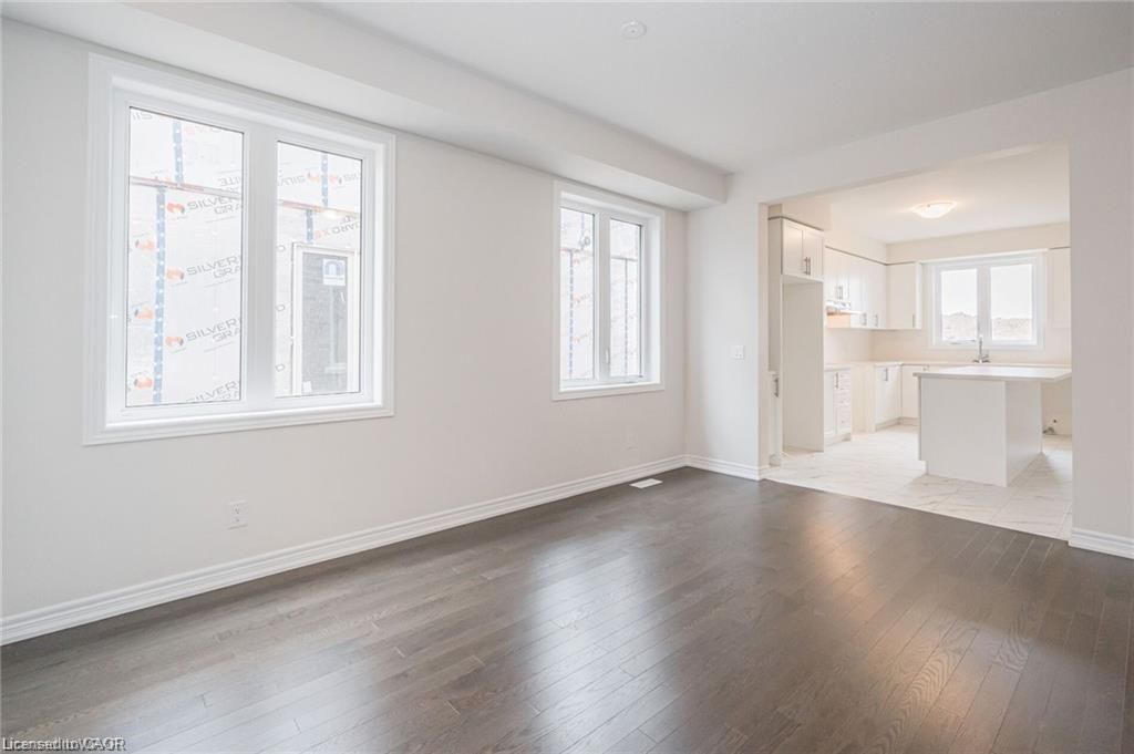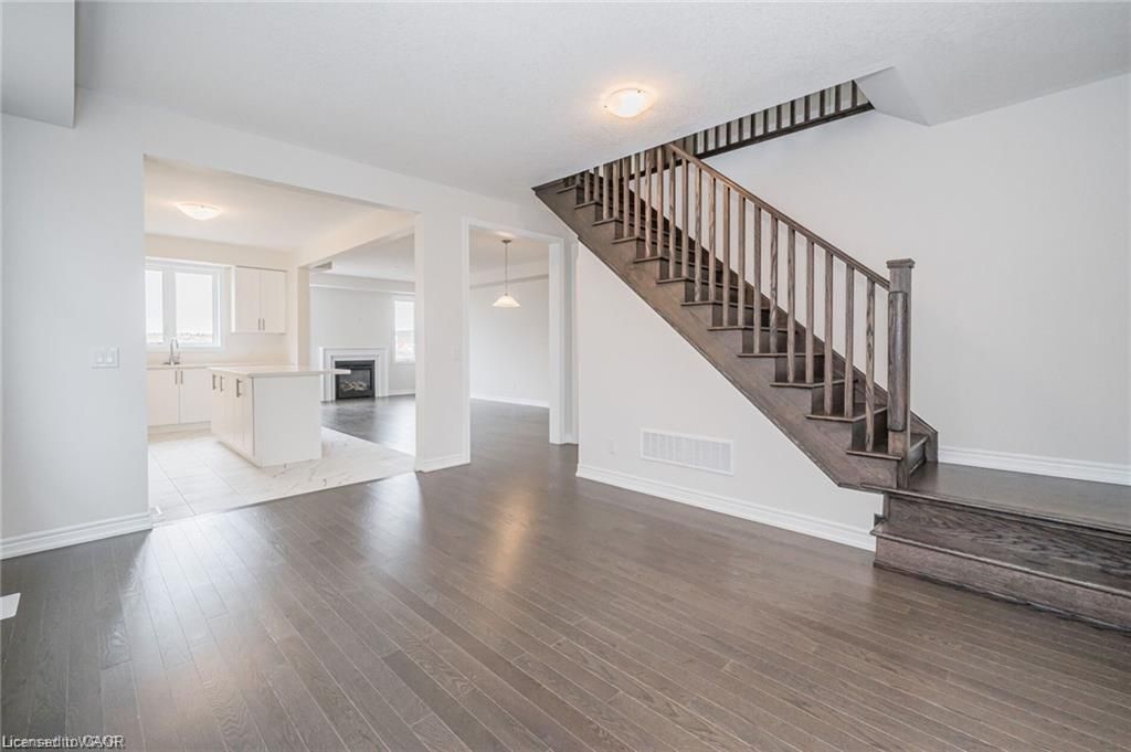 Rare opportunity to own a beautifully designed 4-bedroom, 3. 5-bath detached home in the sought-after wallaceton community of kitchener. This spacious home features an open-concept main floor with elegant hardwood flooring, a sun-filled great room with fireplace and large windows, and a modern kitchen complete with quartz countertops, centre island, and brand-new stainless steel appliances. The dining area seamlessly connects to the backyard, perfect for entertaining. A stunning staircase leads to the second level, offering four generously sized bedrooms, including walk-in closets, along with a convenient second-floor laundry room. Additional highlights include a double car garage plus driveway parking. Ideally located close to parks, public transit, and everyday amenities-this home offers comfort, style, and exceptional convenience.