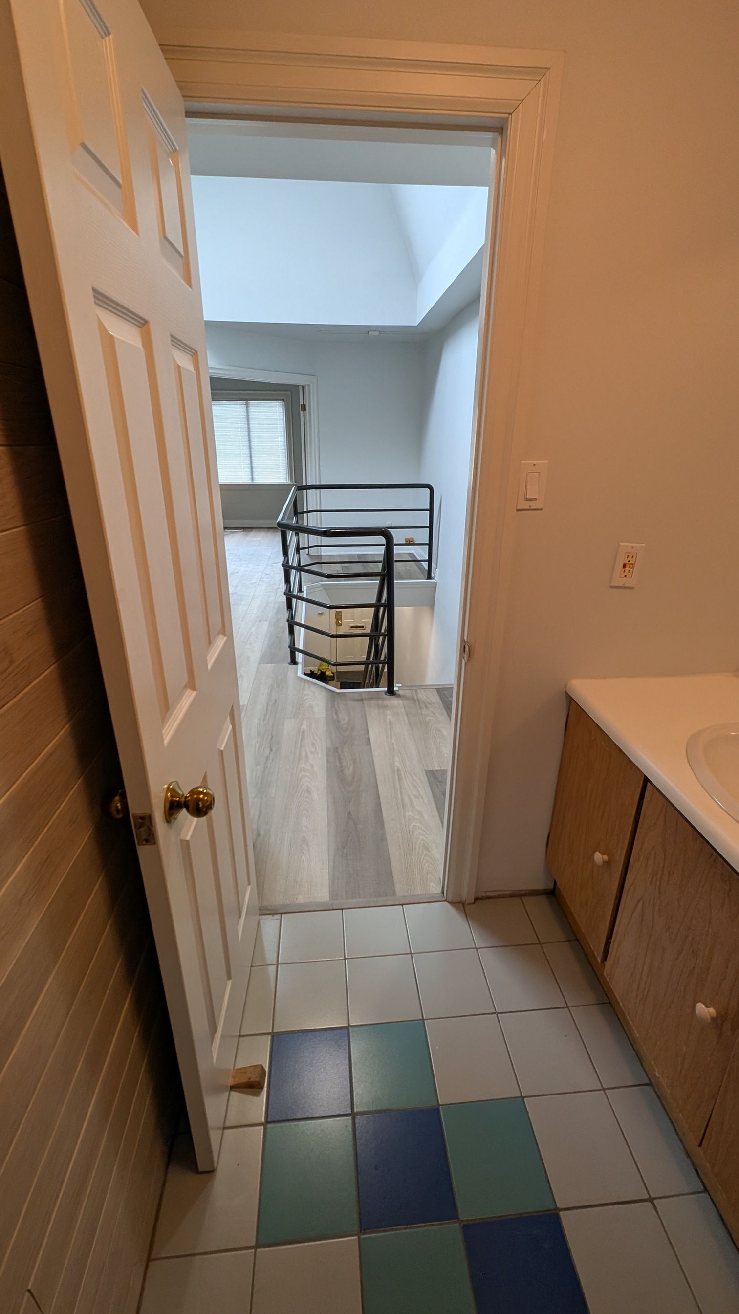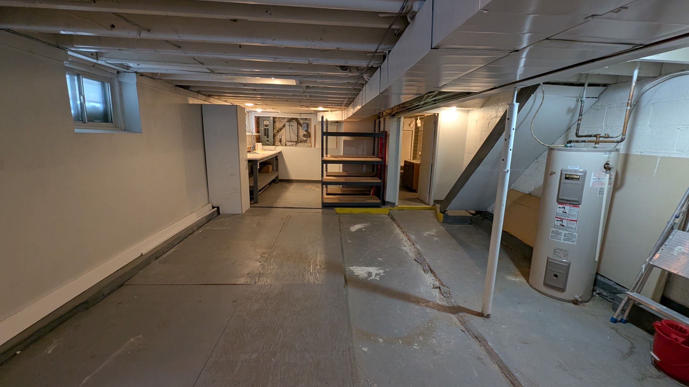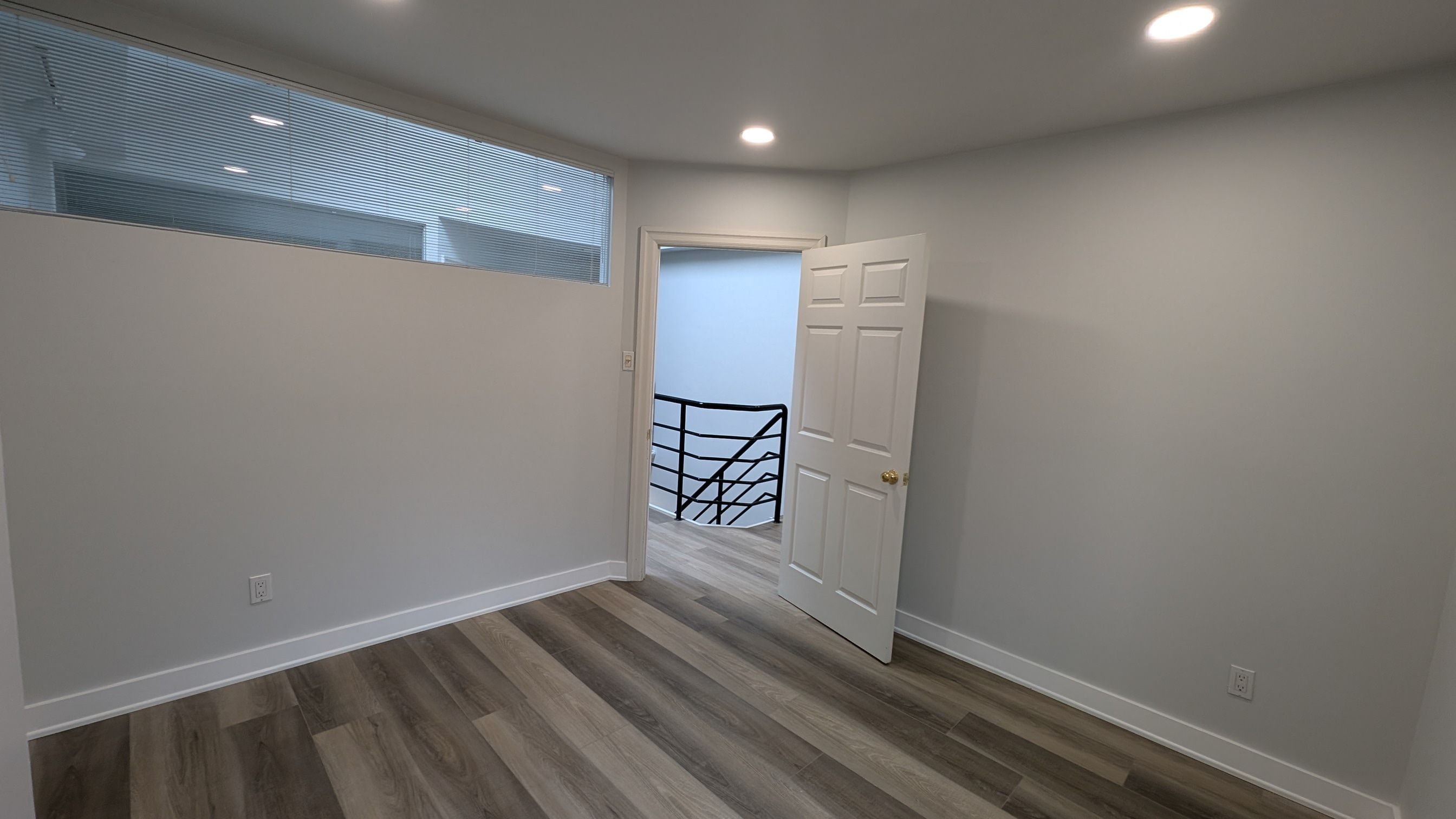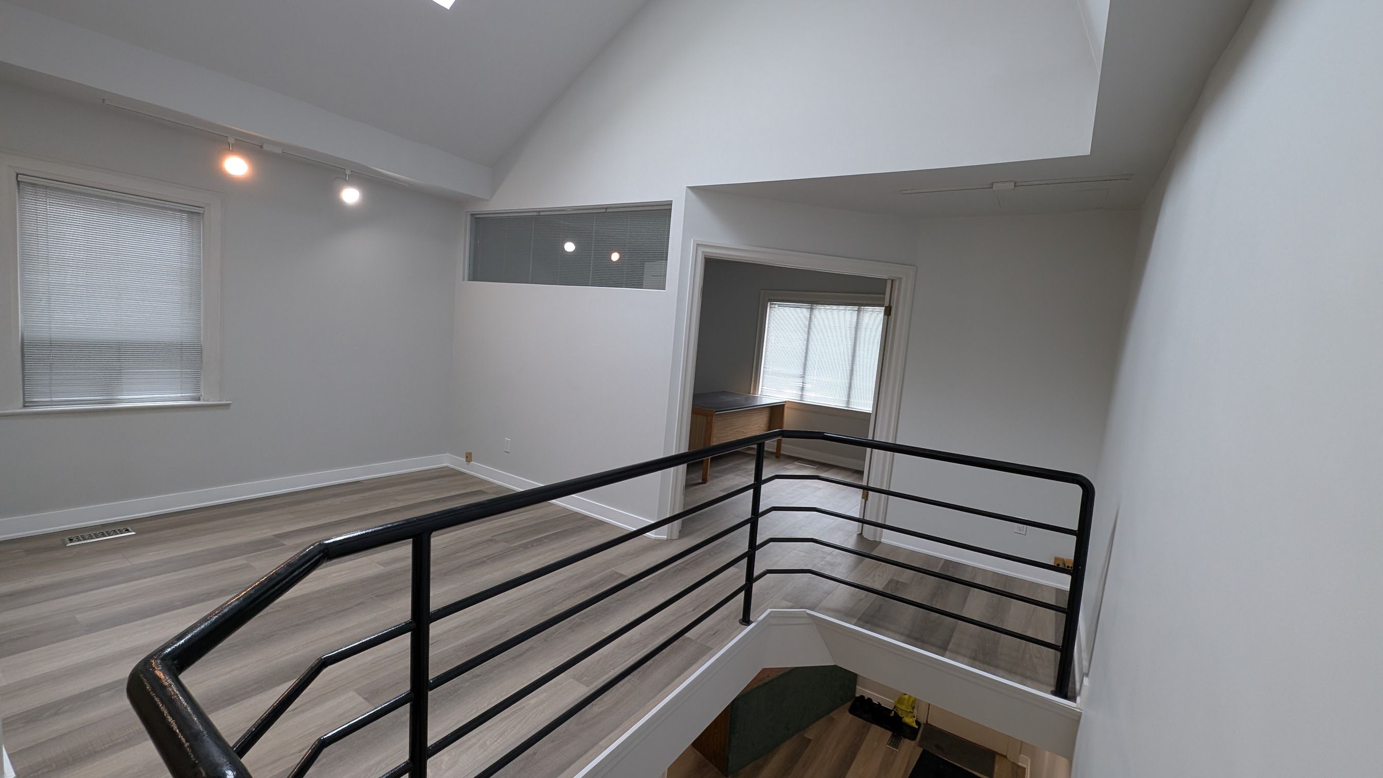 • Open concept workspace on the second floor with vaulted ceiling.