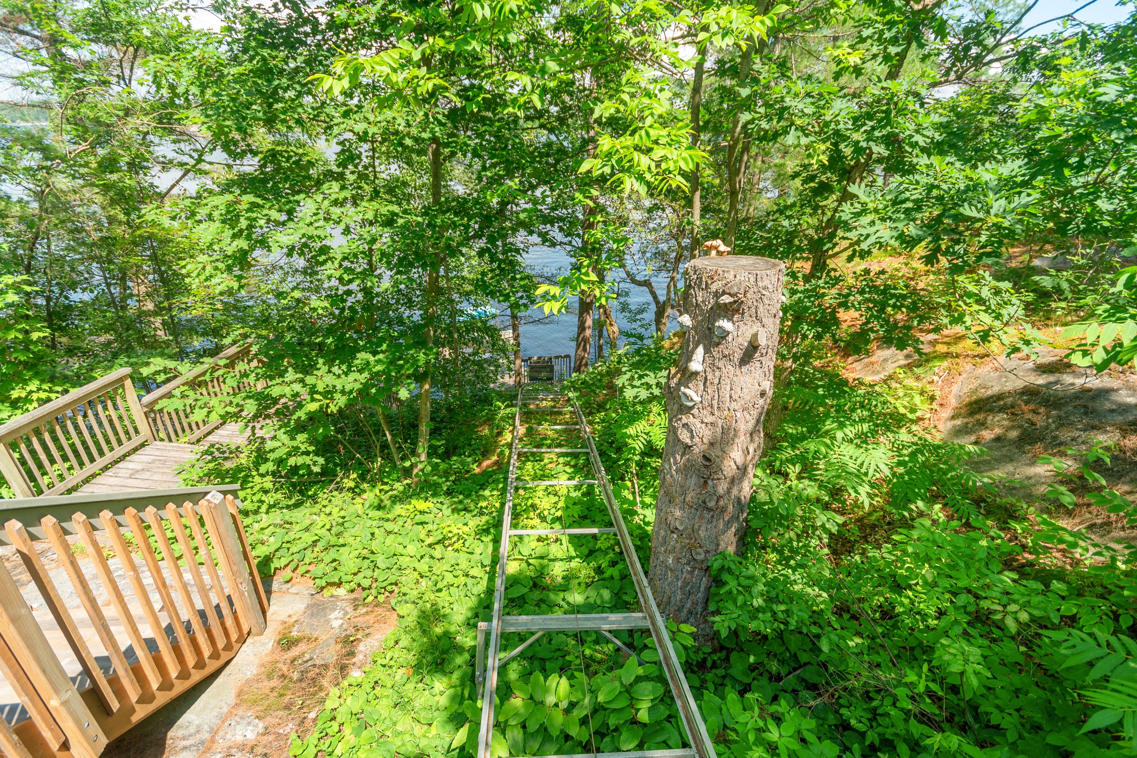 Welcome to your private waterfront escape on stunning go home lake. With 160 feet of shoreline, two large docks, and incredible views over paradise bay, this beautifully renovated cottage offers the perfect blend of comfort, style, and adventure. Just a 10-minute boat ride from the marina, the property includes a spacious main cottage with a large addition, soaring vaulted ceilings, and high-end finishes throughout. The open-concept living room features a striking stone fireplace and walkout to a massive deck overlooking the water ideal for relaxing or entertaining. A custom gourmet kitchen with stainless steel appliances flows into the dining room, making hosting a breeze. The primary bedroom includes vaulted ceilings, water views, and direct deck access. Down by the water, there is a dock shed that sits right on the deck to store all of your lakeside lounging gear and water toys. An electric luggage carrier makes bringing supplies up the hill effortless. Out back, you'll find a shed and a separate art/craft studio for creative pursuits. A spacious bunkie provides extra room for family or guests with vaulted ceilings, two bedrooms, a living area, kitchenette, and its own deck. Whether you're soaking in the views, swimming off the dock, or enjoying cozy nights by the fire, this is lakeside living at its best. Accessed by boat only.