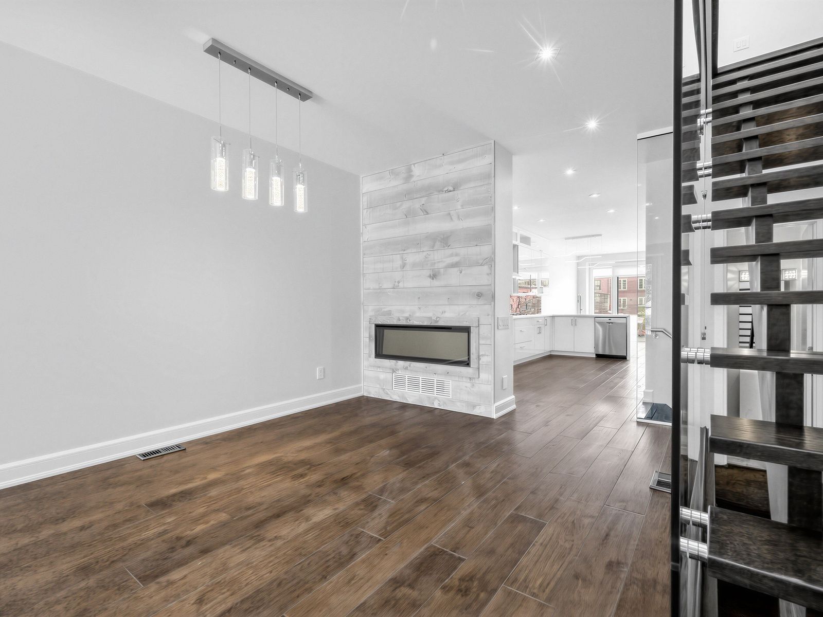 • Open-concept main level with hardwood flooring and natural light.