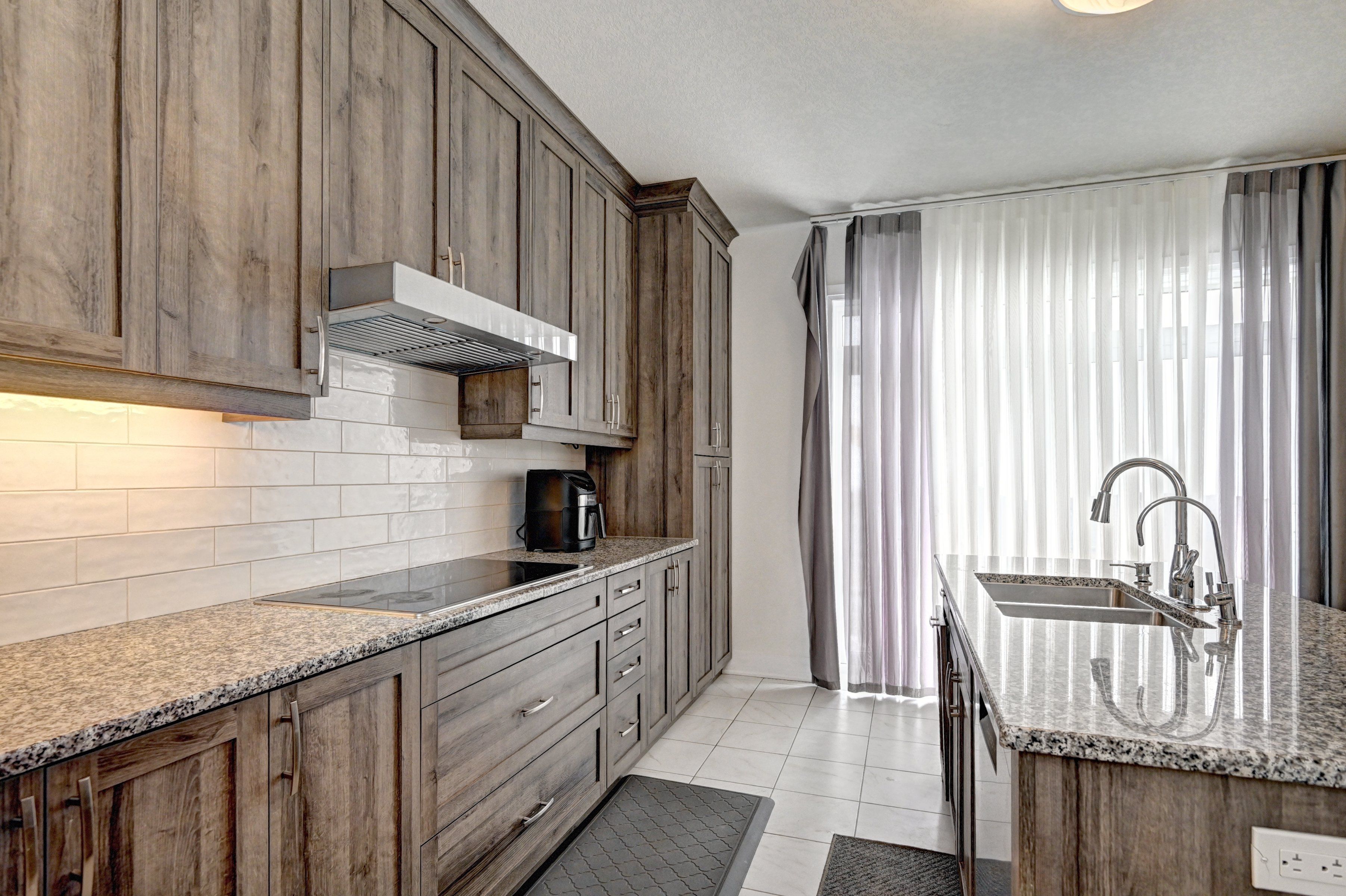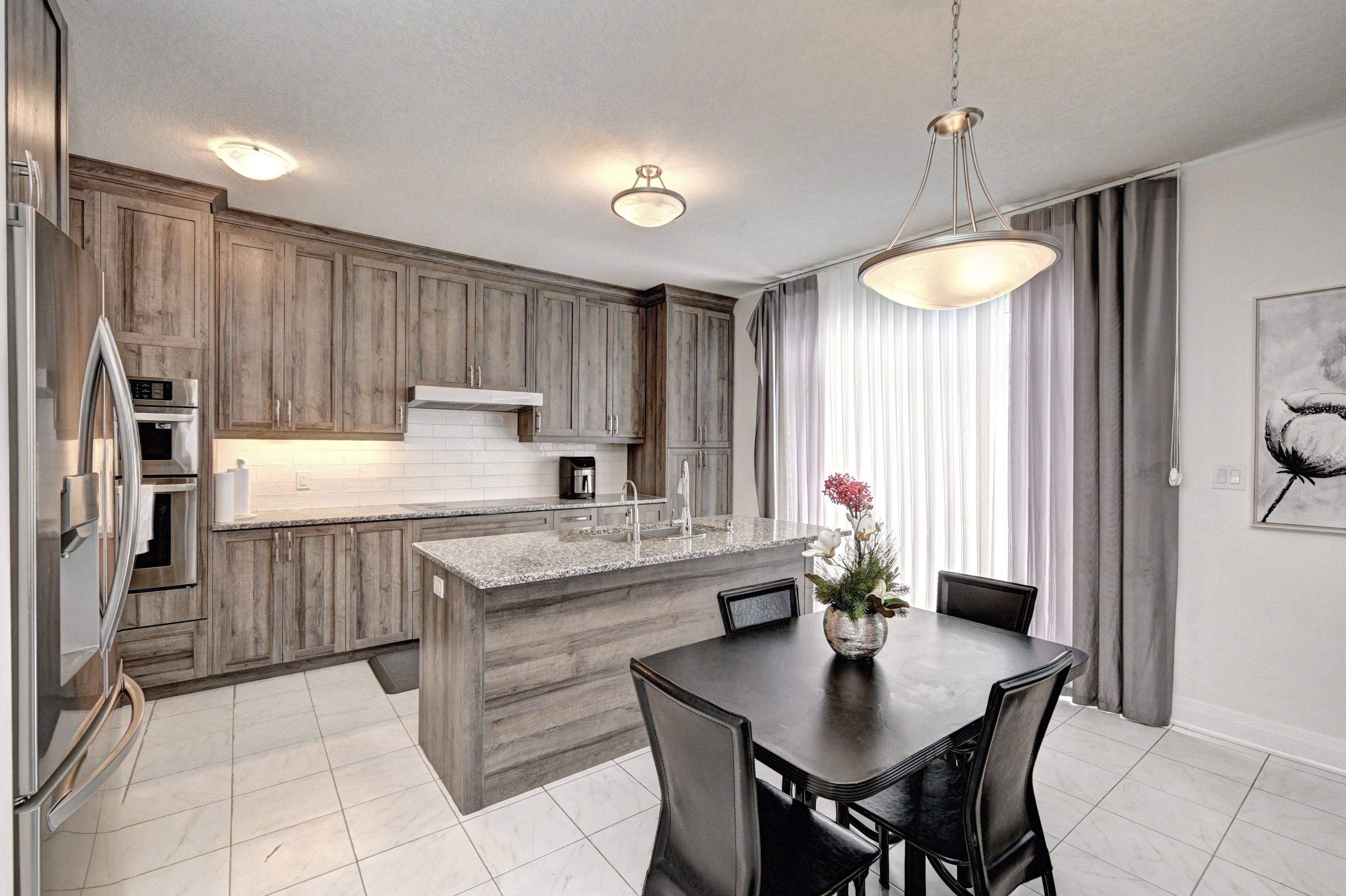 • Eat-in kitchen featuring granite counters and a large walk-in pantry.
