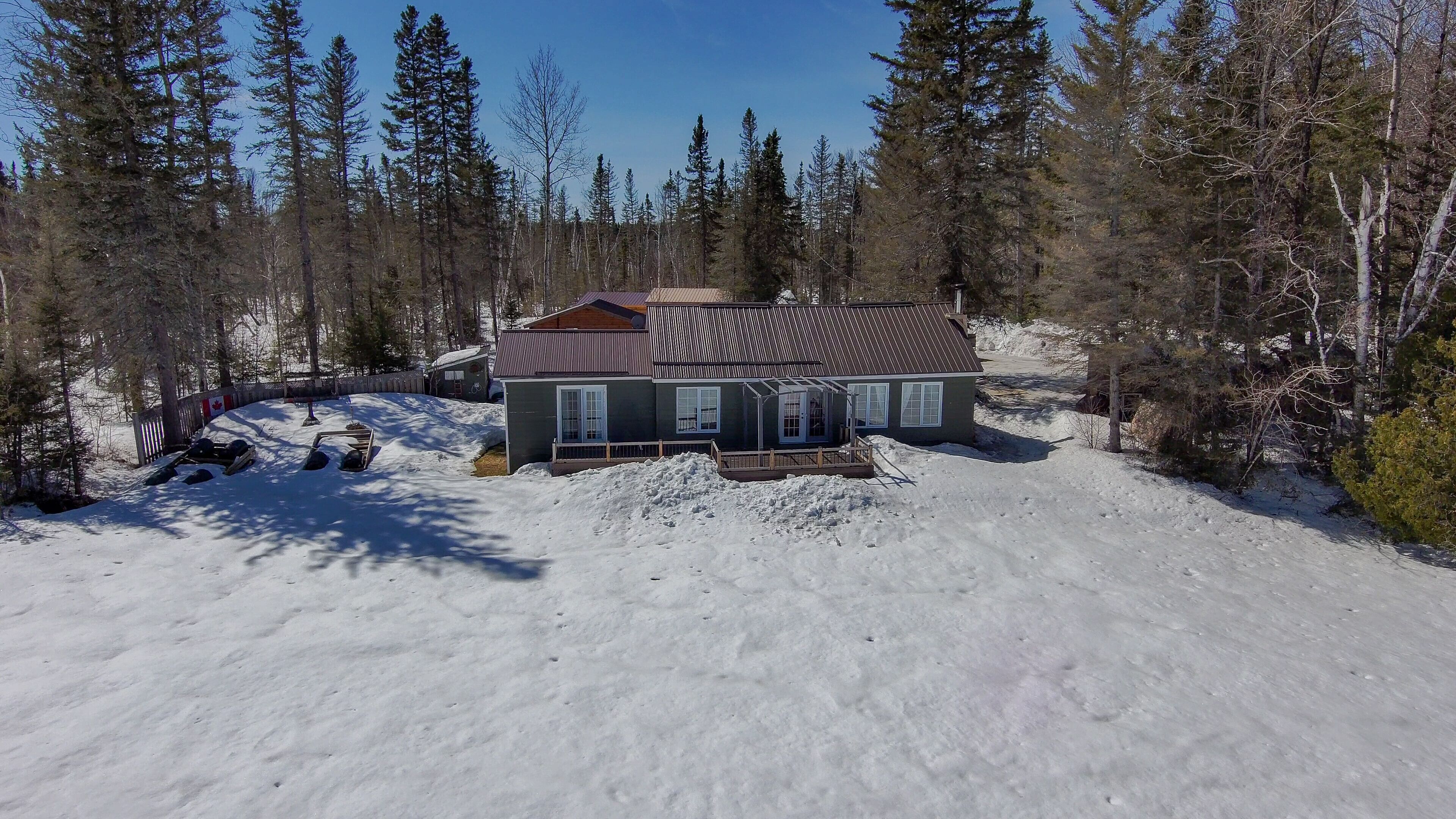 Nestled on over half an acre in an unorganized township, this home sits surrounded by crown land and the shores of sesekinika lake-a true lakeside sanctuary. Partially furnished and move-in ready, simply unpack your personal items and step straight into lake life. Towering mature trees offer privacy and a natural haven for wildlife. This bungalow features main-floor living with breathtaking lake views from every room. The kitchen shines with herringbone backsplash, granite countertops, a gas oven, and a suspended overhead range. Garden doors from the living room open onto the lakefront deck-ideal for stunning sunrises, all-day sun, and magical northern lights evenings. The primary bedroom suite includes a full bathroom with a freestanding soaker tub, spacious closet, and direct garden-door access to the deck. The second bedroom also overlooks the lake. The home offers the convenience of both propane forced-air heat and a wood stove. Guests will love the seasonal two-bedroom cottage, built in 2018, with its three-piece bathroom-partially furnished. The workshop and bike shed, built in 2021, is heated with propane and/or wood heat, and features a bar! Additional outbuildings include wood storage, garden and storage sheds, and a cozy wood-heated sauna. Sesekinika lake is a majestic spring-fed gem with breathtaking landscapes and a welcoming and vibrant community.