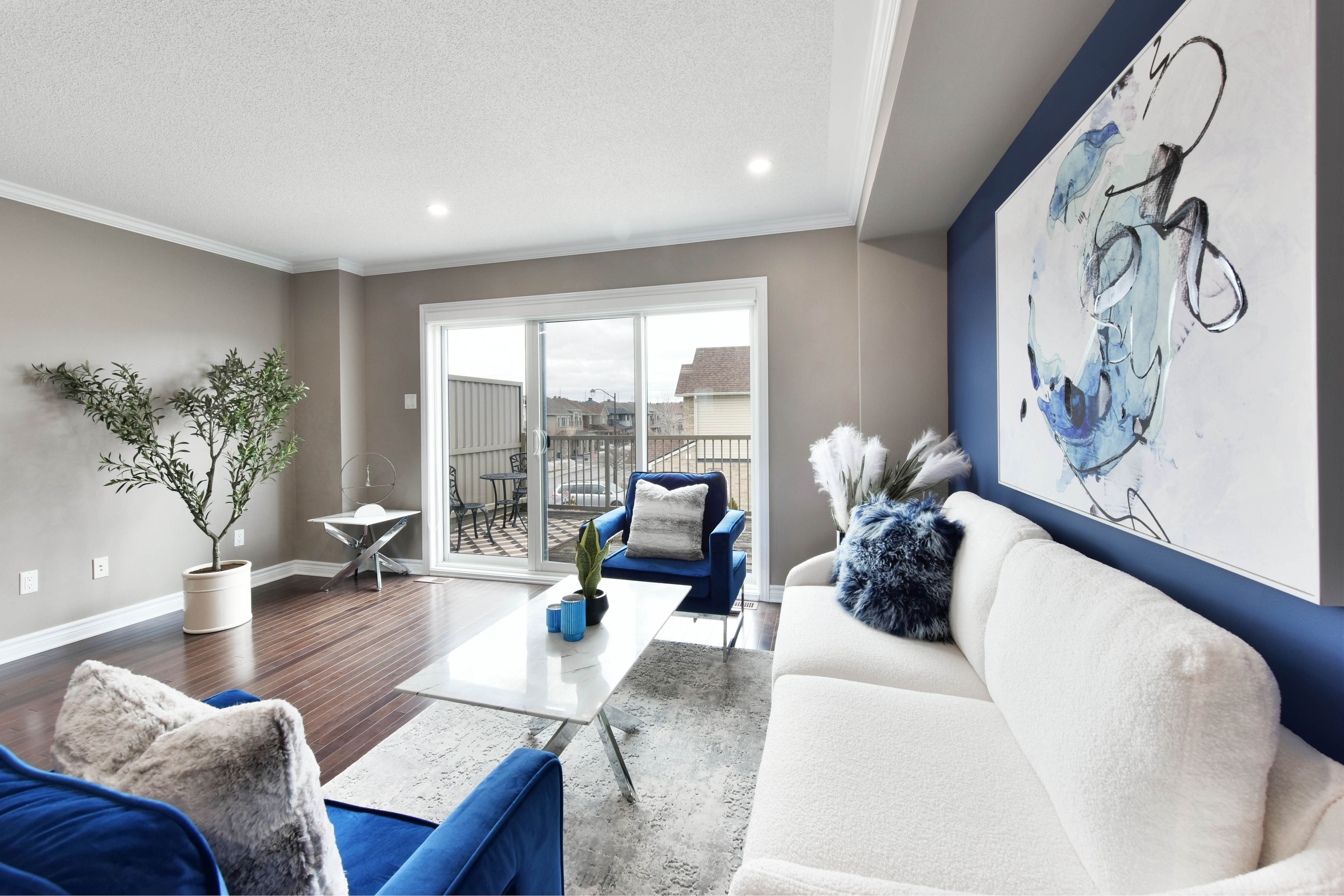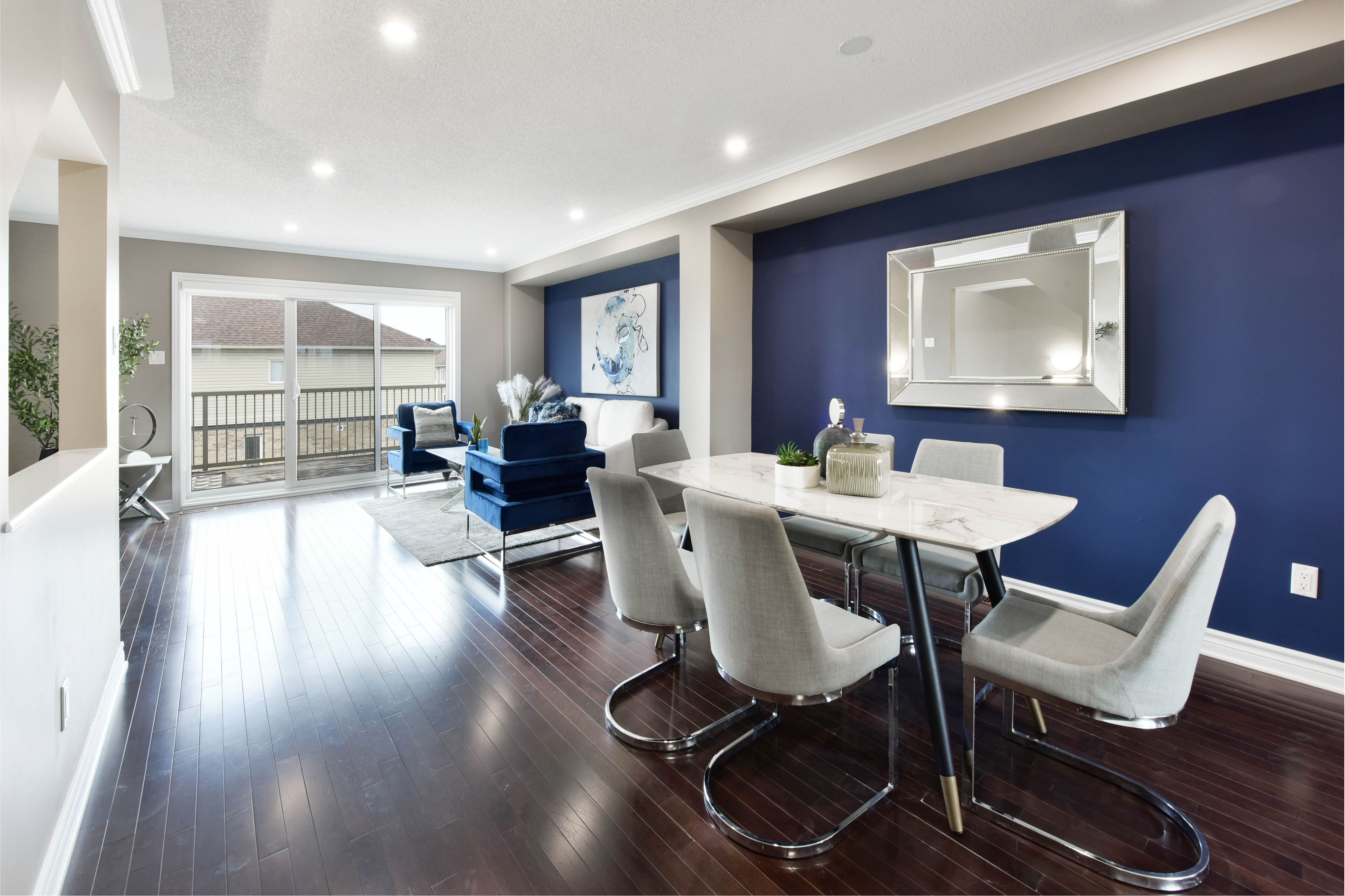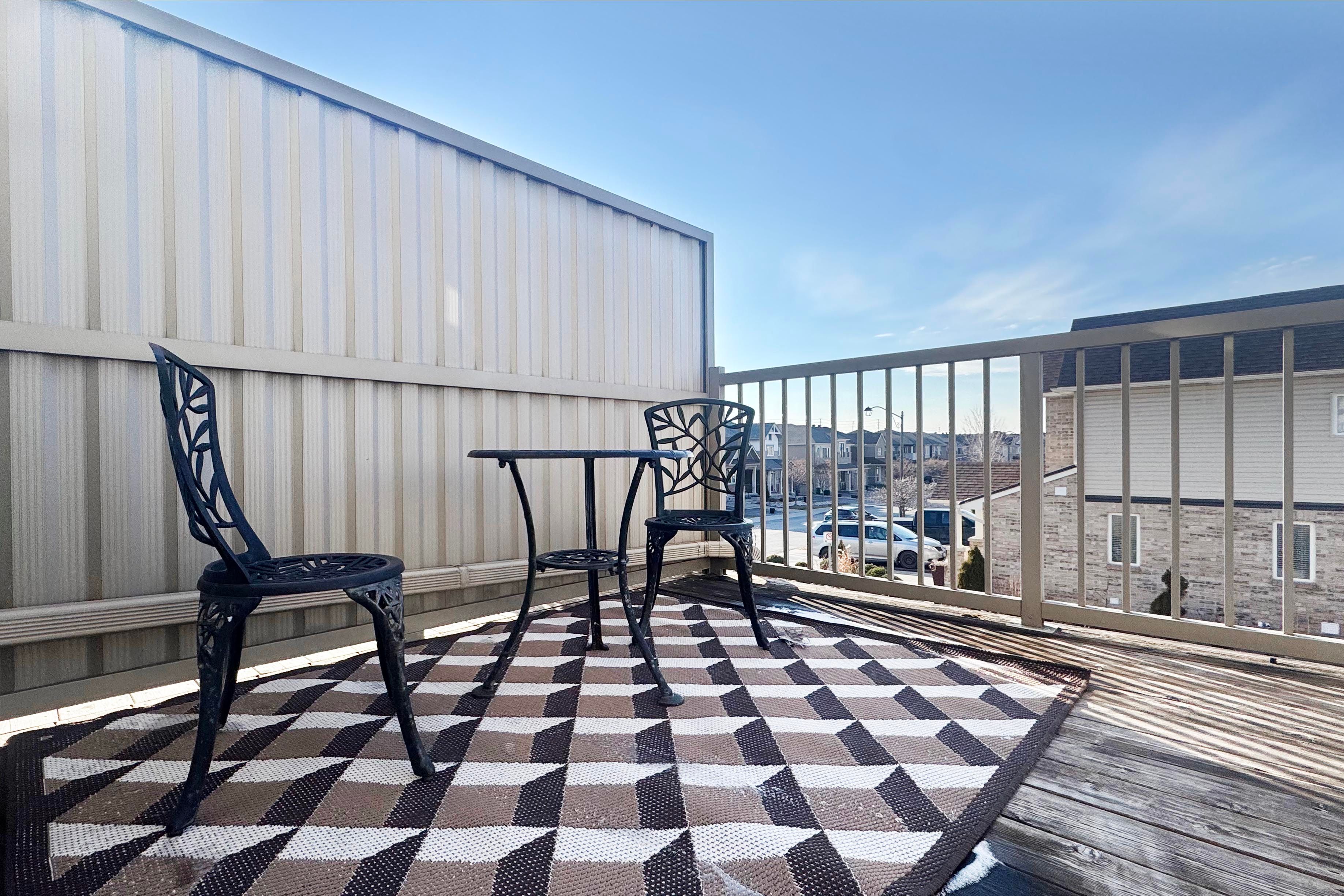 • Open-concept living and dining spaces with access to the oversized balcony.