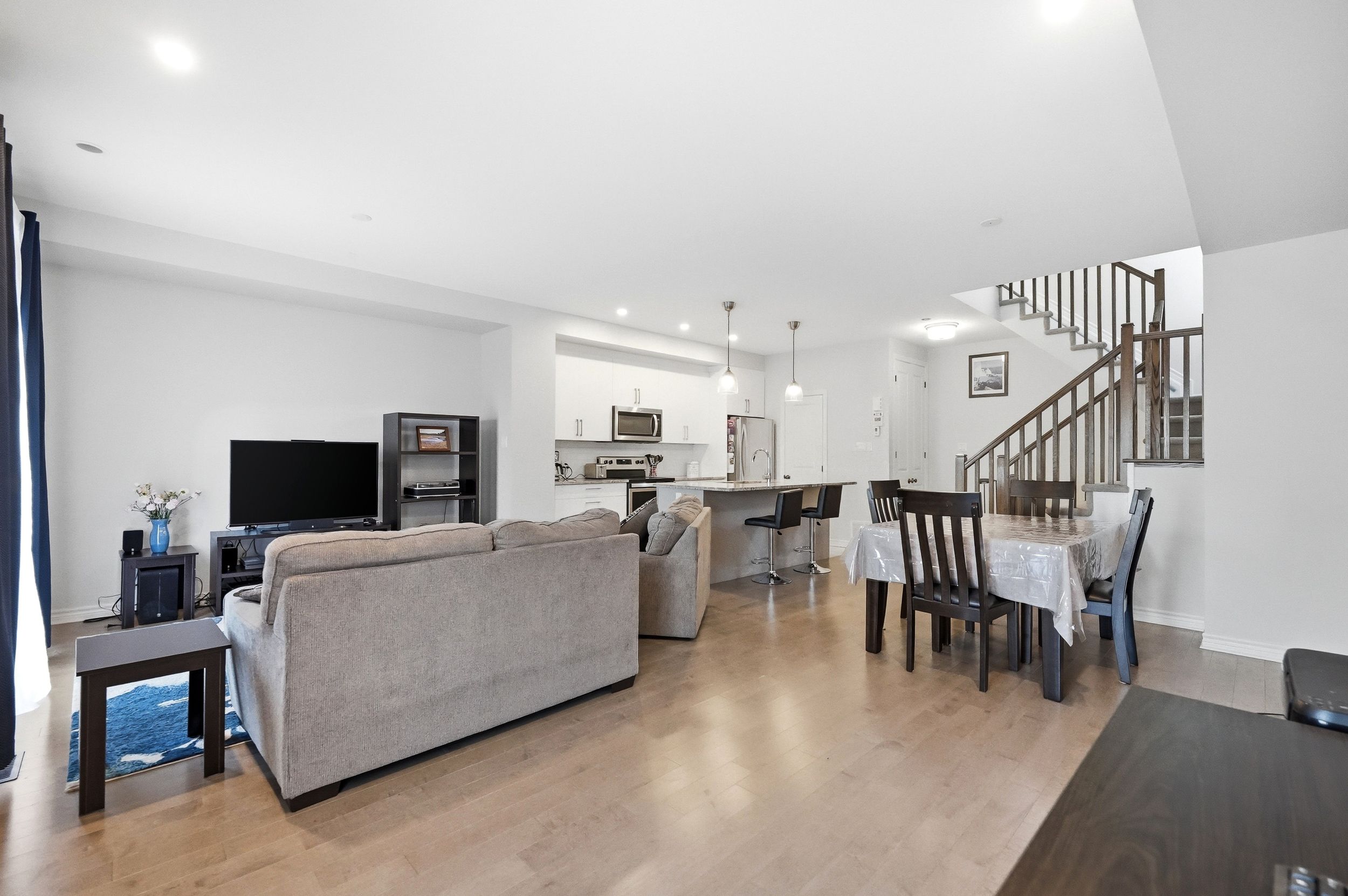 • Bright open-concept living space featuring hardwood flooring and natural light.