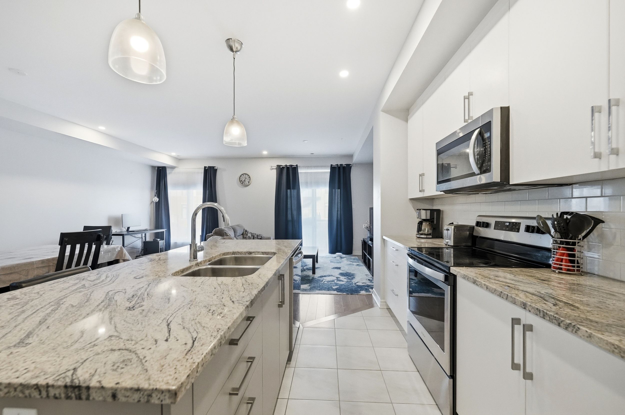 • Modern kitchen with quartz countertops and stainless steel appliances for easy entertaining.