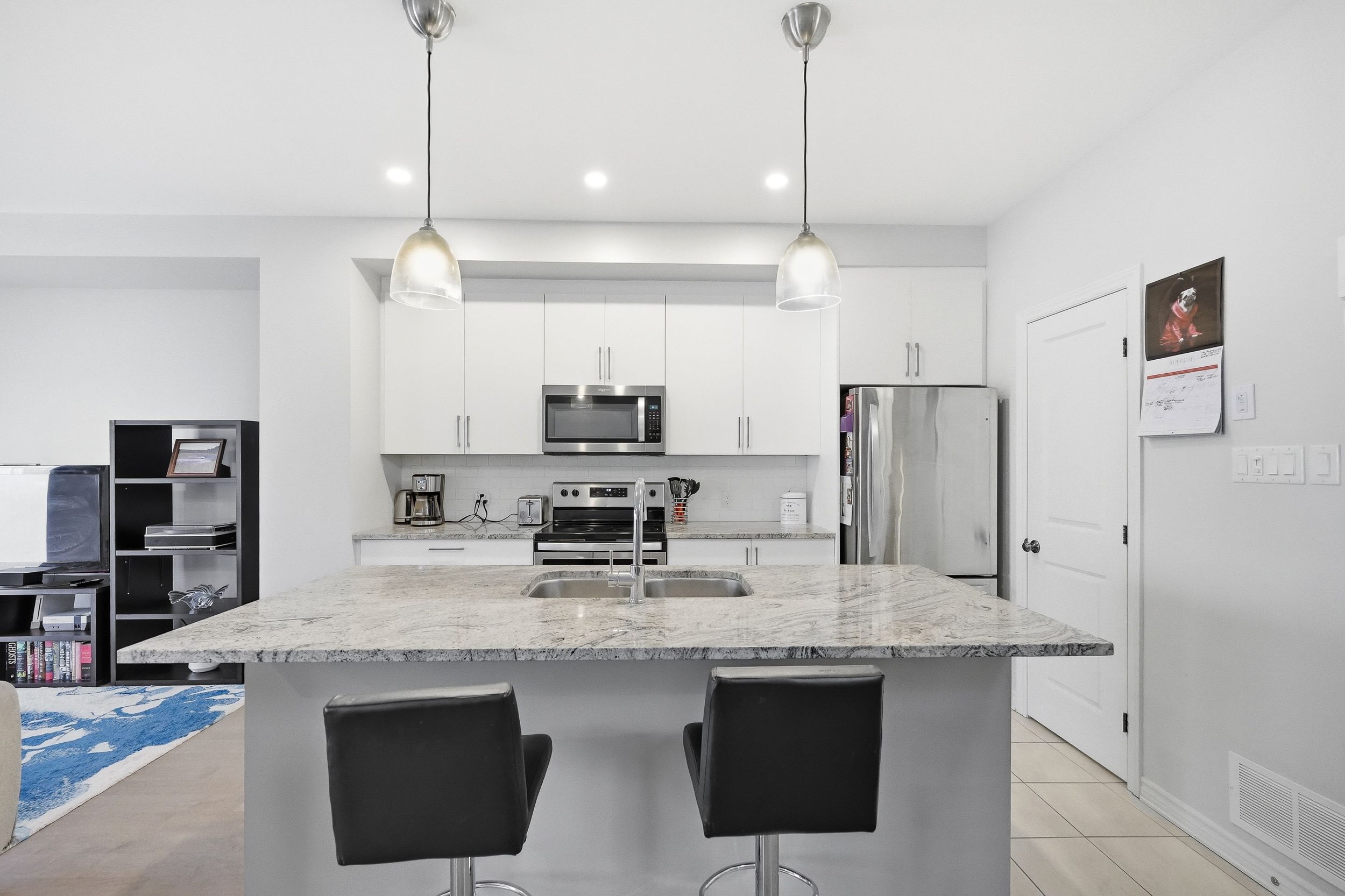 Welcome to 520 stadacone row - a beautifully maintained end-unit freehold townhome offering 2 bedrooms, 3 bathrooms, and a functional 3-storey layout designed for modern living. Built in 2019, this home combines stylish finishes with a smart, low-maintenance design, perfect for first-time buyers, investors, or those looking to downsize without compromise. Step inside to the welcoming main level featuring a spacious foyer with tile flooring, convenient inside access to the garage and access to convenient storage space in the lower level. Upstairs, the second level showcases a bright and airy open-concept living space, highlighted by rich hardwood flooring and large patio doors that fill the home with natural light and lead to a private balcony. The kitchen is both sleek and practical, offering quartz countertops, stainless steel appliances, detailed cabinetry, and a large island with seating - ideal for entertaining or everyday living. The seamless flow between the kitchen, dining, and living areas creates an inviting atmosphere throughout. On the upper level, you'll find two well-sized bedrooms including a comfortable primary retreat featuring a walk-in closet and a private ensuite. A second full bathroom and convenient layout complete the sleeping quarters. Situated on a quiet street in a sought-after neighbourhood, this home is just minutes from shopping, parks, transit, and everyday amenities, with easy access to major routes. A fantastic opportunity to own a stylish, move-in ready home in a growing community.
