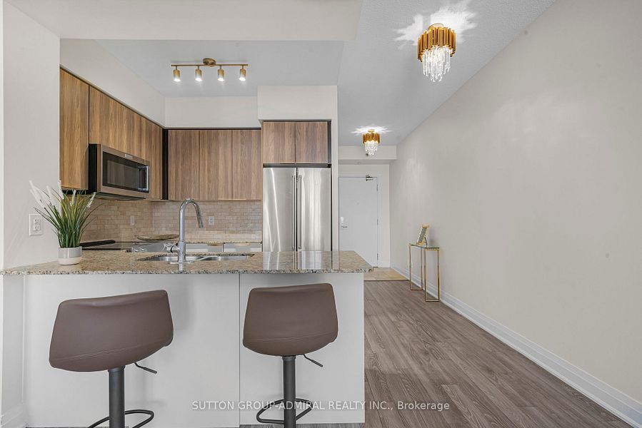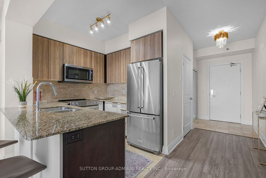 Fully furnished for $2600, could be unfurnished as well. Bright & spacious luxury condo with stunning north views located in the prestigious thornhill community, this 632 sqft sun-filled, modern1-bedroom unit offers a functional open-concept layout with a 9-foot ceiling. Upgraded kitchen cabinets, granite countertops, backsplash, and stainless steel high-end/kitchen aid appliances, elegant machine light fixtures throughout, brand new bathroom vanity and mirror, enjoy the spectacular panoramic views with no obstructions, as the unit faces north (not overlooking steeles ave). Large floor-to-ceiling windows provide abundant natural light, creating a bright and inviting atmosphere throughout. Concierge service for added convenience, ample visitor parking, locker and parking spot included. Close to ttc, just 10 minutes to finch subway, and to york university, quick access to highways 7,shopping, banks, supermarkets, boutique stores, restaurants, and more. 407, 401, and 404. Proximity