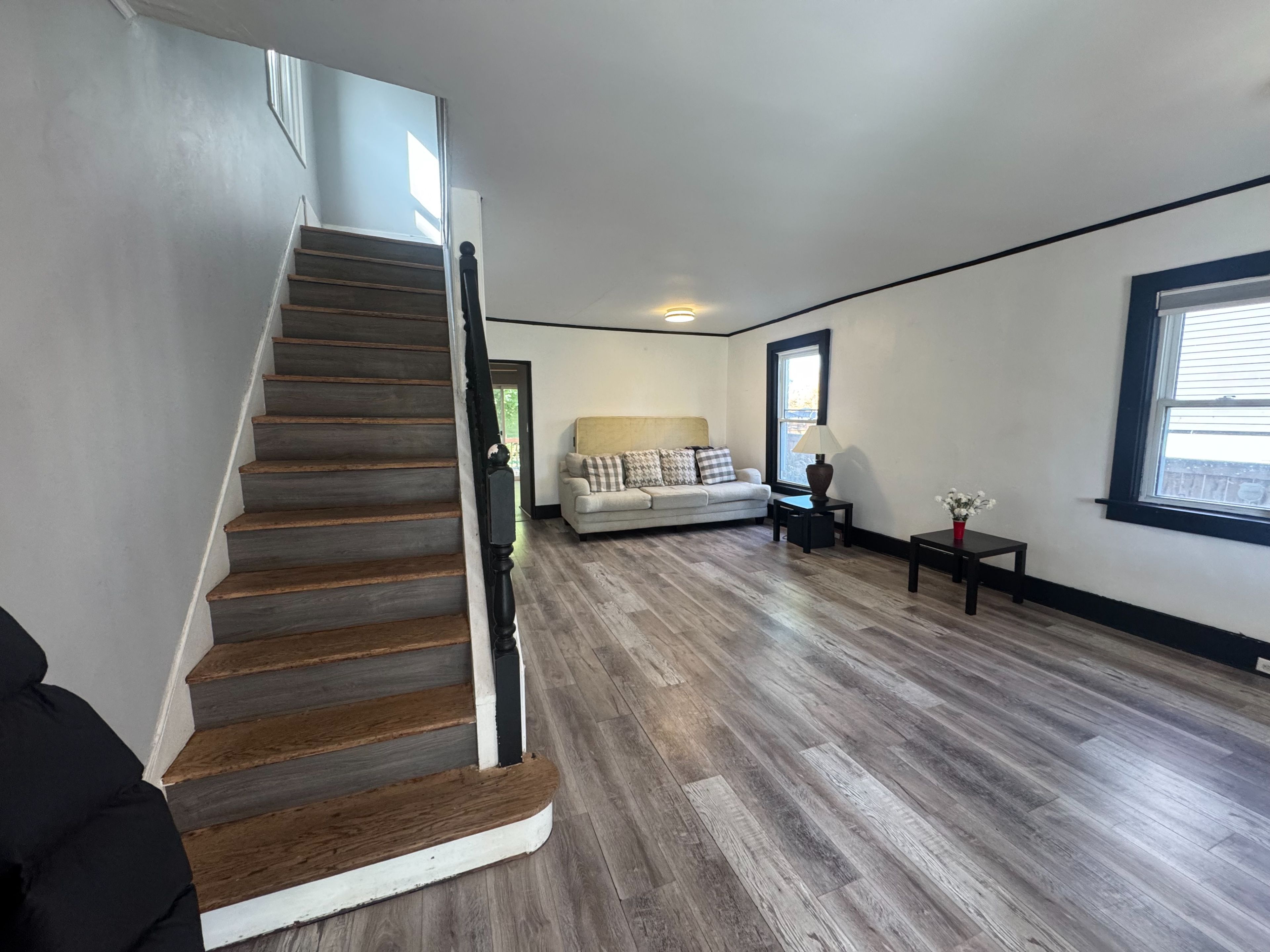 • Updated home with high ceilings and a spacious living room.