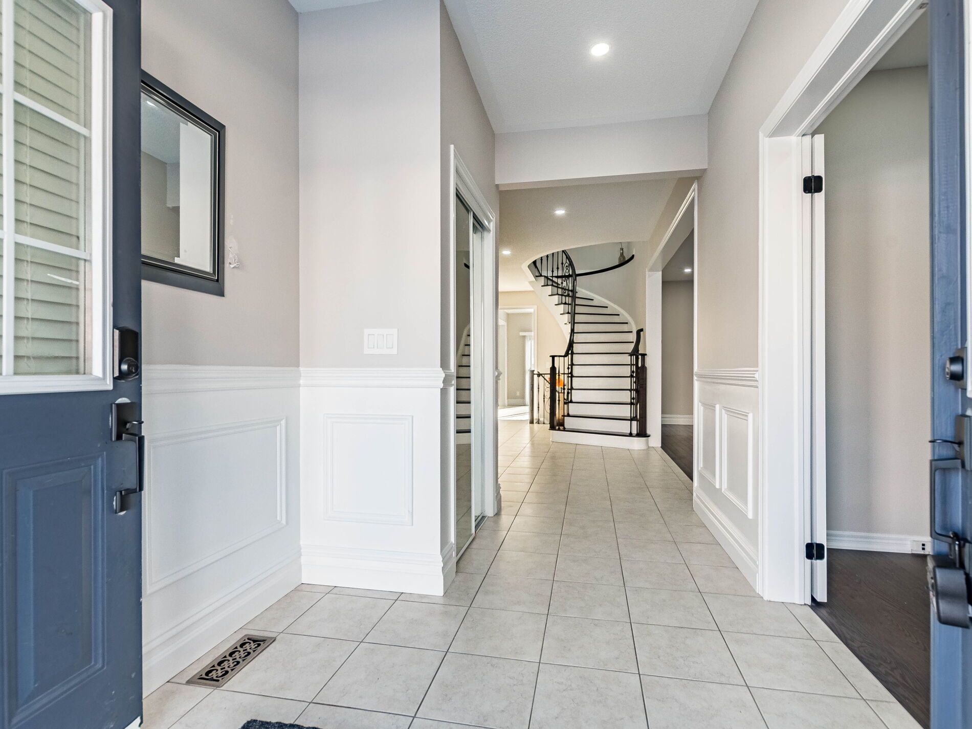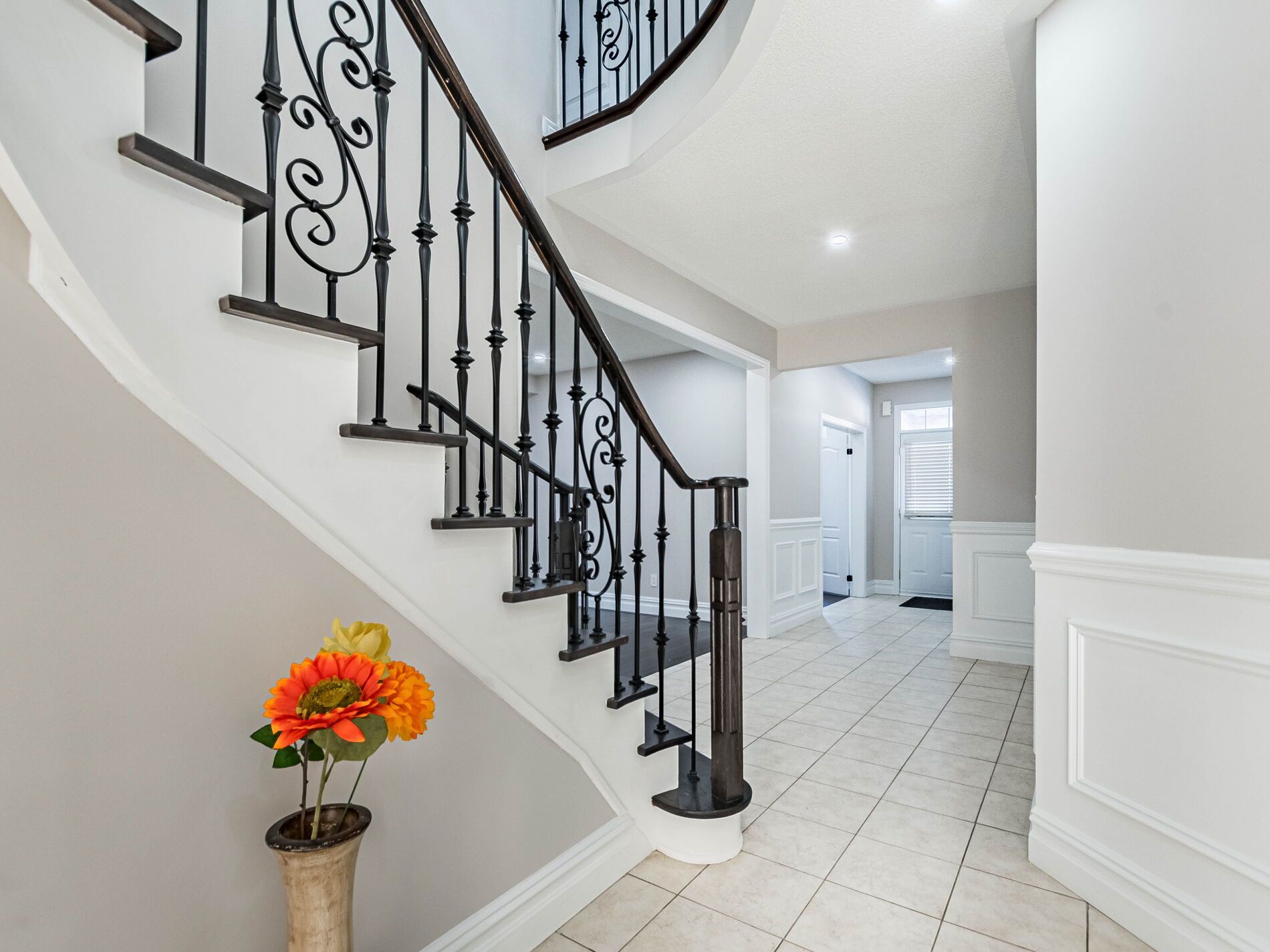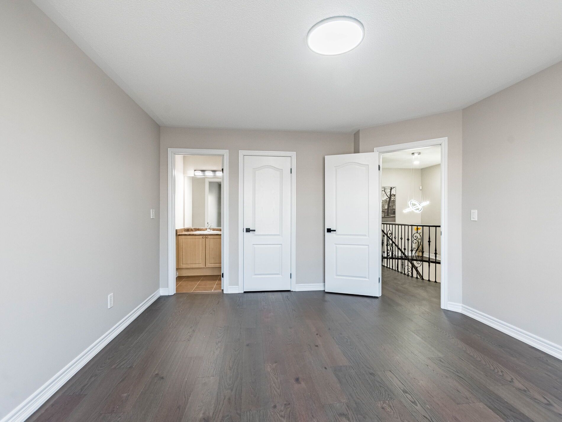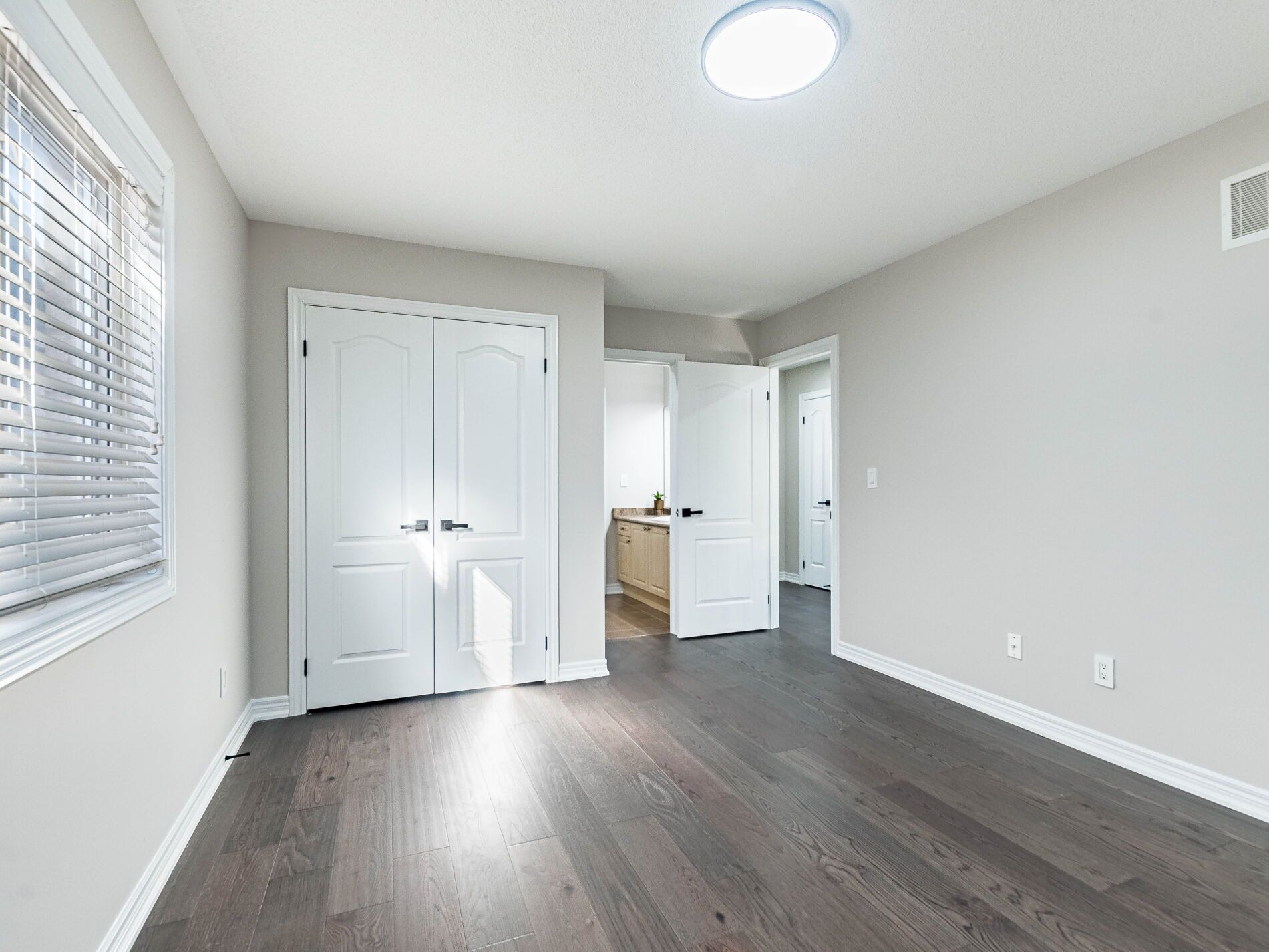 Welcome to this beautiful detached home, located on a quiet, family-friendly crescent in the desirable clarke neighbourhood. Featuring a charming brick and stone exterior, this home offers close to 3,000 sq. Ft. Of living space above grade, with 4 spacious bedrooms and 3 full bathrooms on second floor. Thousands spent on recent upgrades. Highlights include a double-door entry, 9-ft ceilings, fresh paint throughout, new light fixtures, new hardwood floors on the second level, oak staircase. The modern kitchen offers tall cabinetry, stainless steel appliances, granite countertop and backsplash. Hardwood floors throughout and pot lights enhance the bright main level, while the family room features a cozy gas fireplace. Enjoy main-floor laundry, a primary bedroom with 5-pc ensuite and walk-in closet, and a second bedroom with balcony access and has its own ensuite. Other two bedrooms have jack n jill bathroom. The unfinished basement provides endless potential, plus a double-car garage for ample parking and storage. Close to milton go, hwy 401. Walking distance to schools, park, trails, shopping and much more. Don't miss the virtual tour.