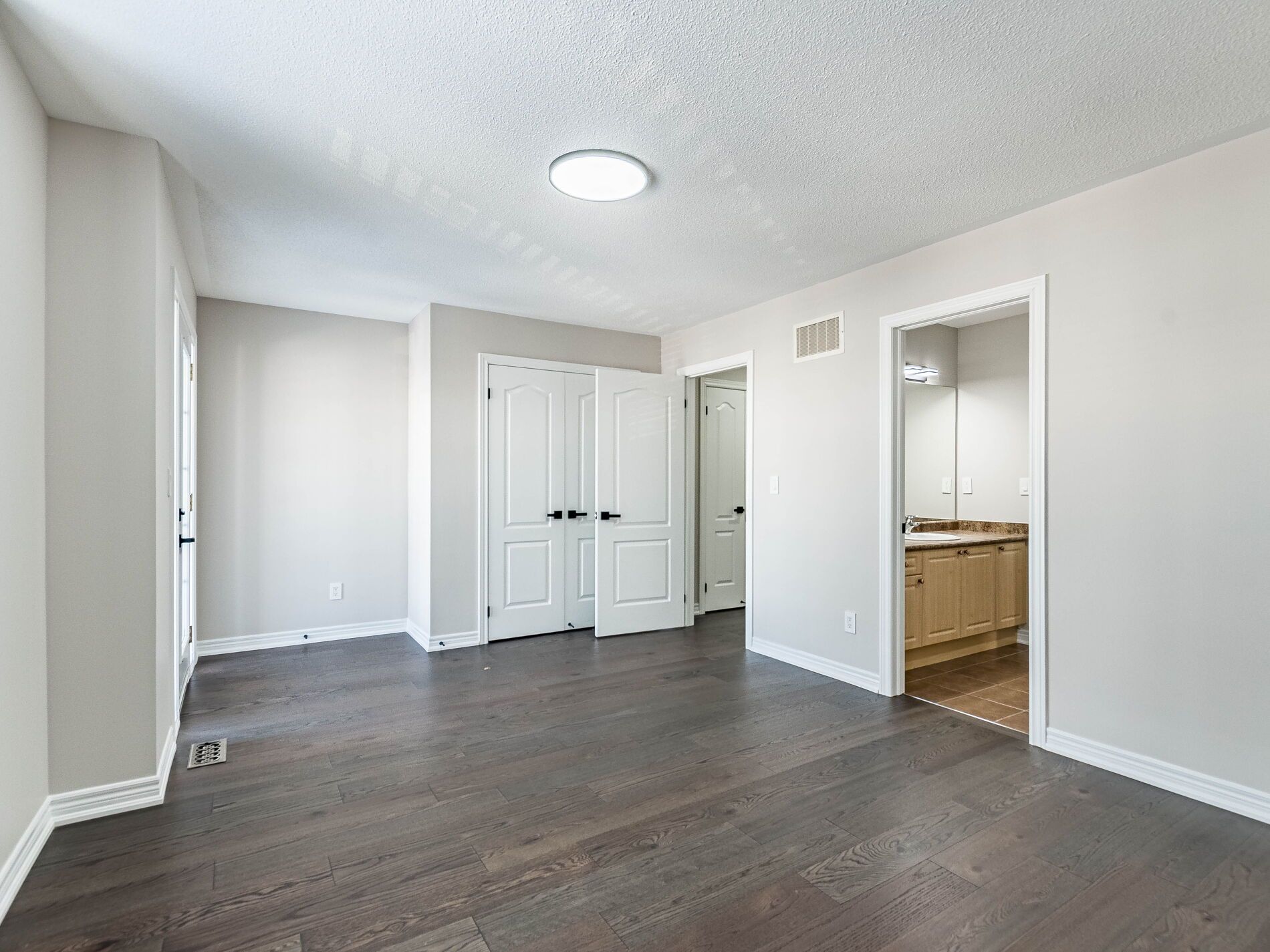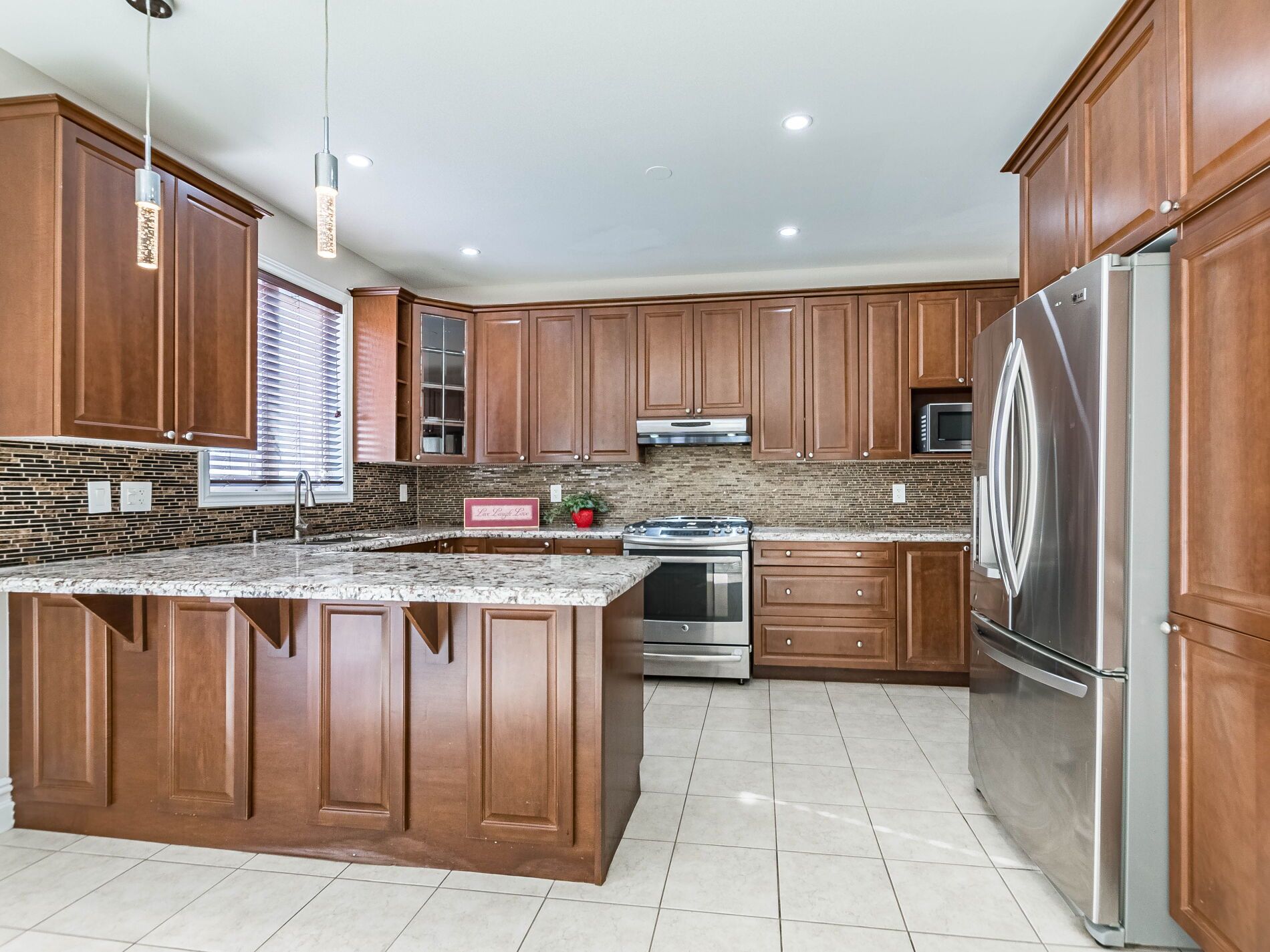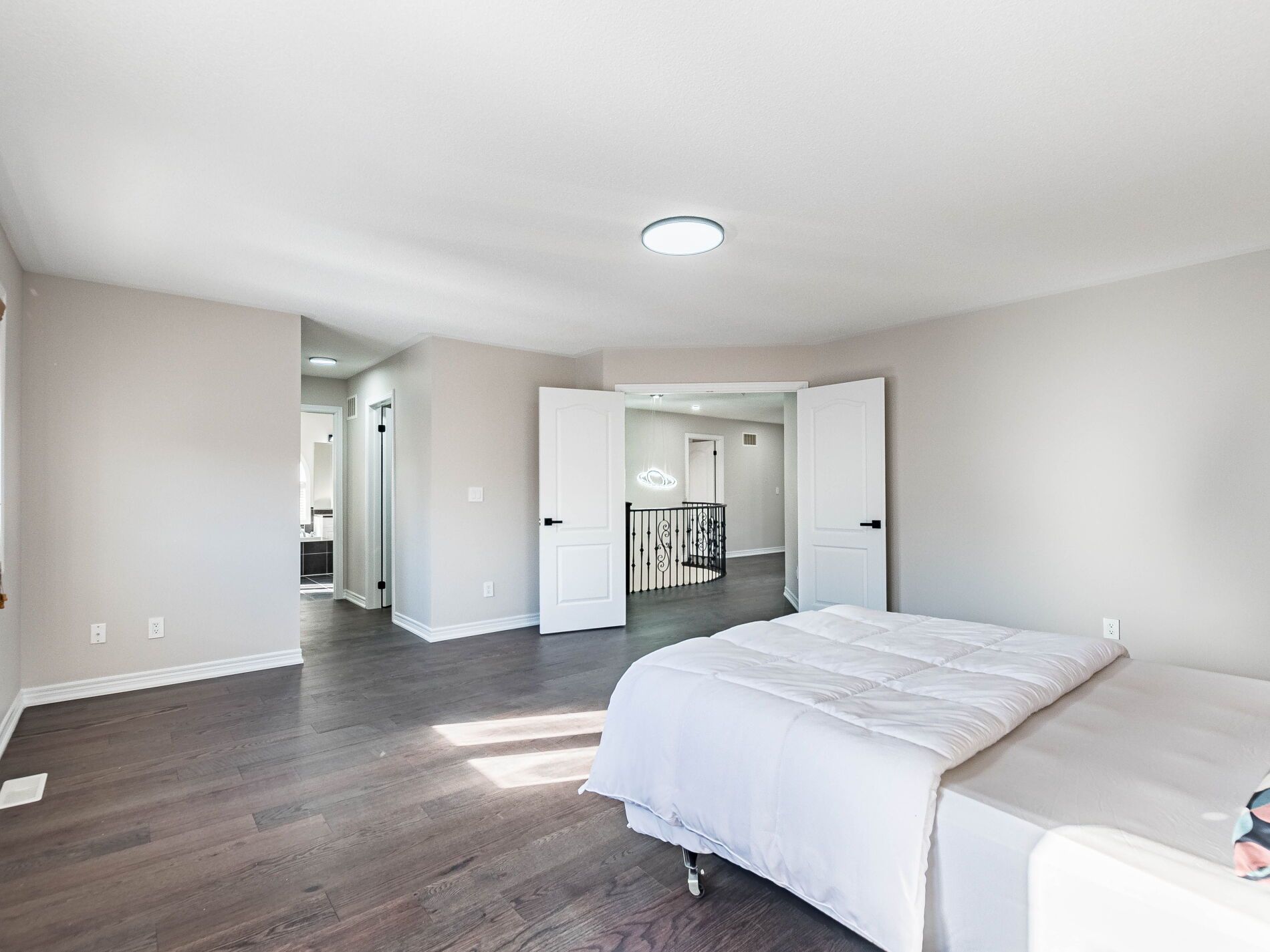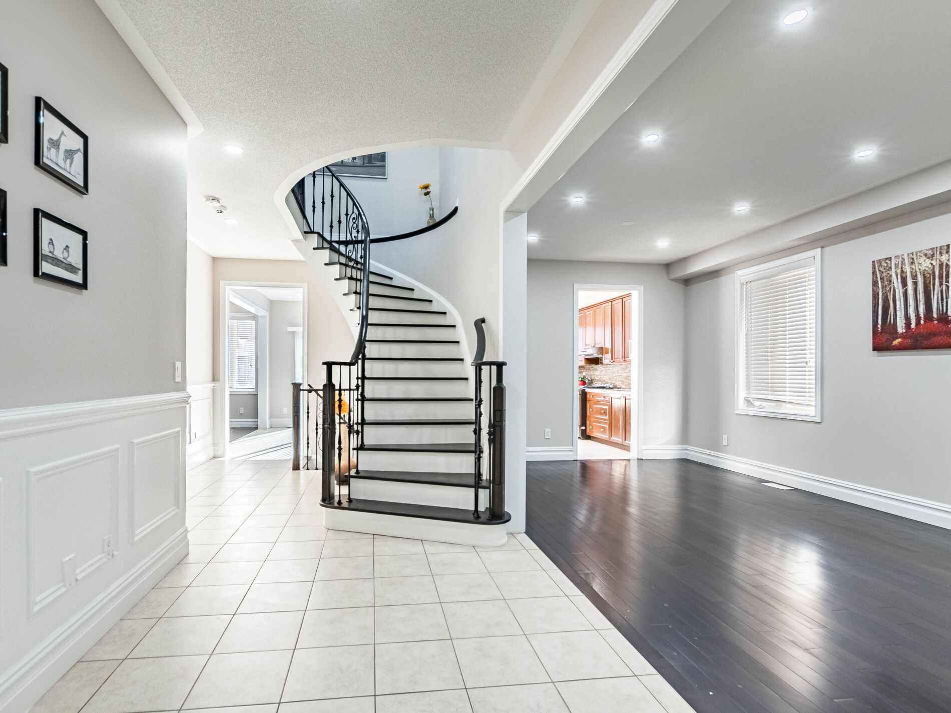 Welcome to this beautiful detached home, located on a quiet, family-friendly crescent in the desirable clarke neighbourhood. Featuring a charming brick and stone exterior, this home offers close to 3,000 sq. Ft. Of living space above grade, with 4 spacious bedrooms and 3 full bathrooms on second floor. Thousands spent on recent upgrades. Highlights include a double-door entry, 9-ft ceilings, fresh paint throughout, new light fixtures, new hardwood floors on the second level, oak staircase. The modern kitchen offers tall cabinetry, stainless steel appliances, granite countertop and backsplash. Hardwood floors throughout and pot lights enhance the bright main level, while the family room features a cozy gas fireplace. Enjoy main-floor laundry, a primary bedroom with 5-pc ensuite and walk-in closet, and a second bedroom with balcony access and has its own ensuite. Other two bedrooms have jack n jill bathroom. The unfinished basement provides endless potential, plus a double-car garage for ample parking and storage. Close to milton go, hwy 401. Walking distance to schools, park, trails, shopping and much more. Don't miss the virtual tour.