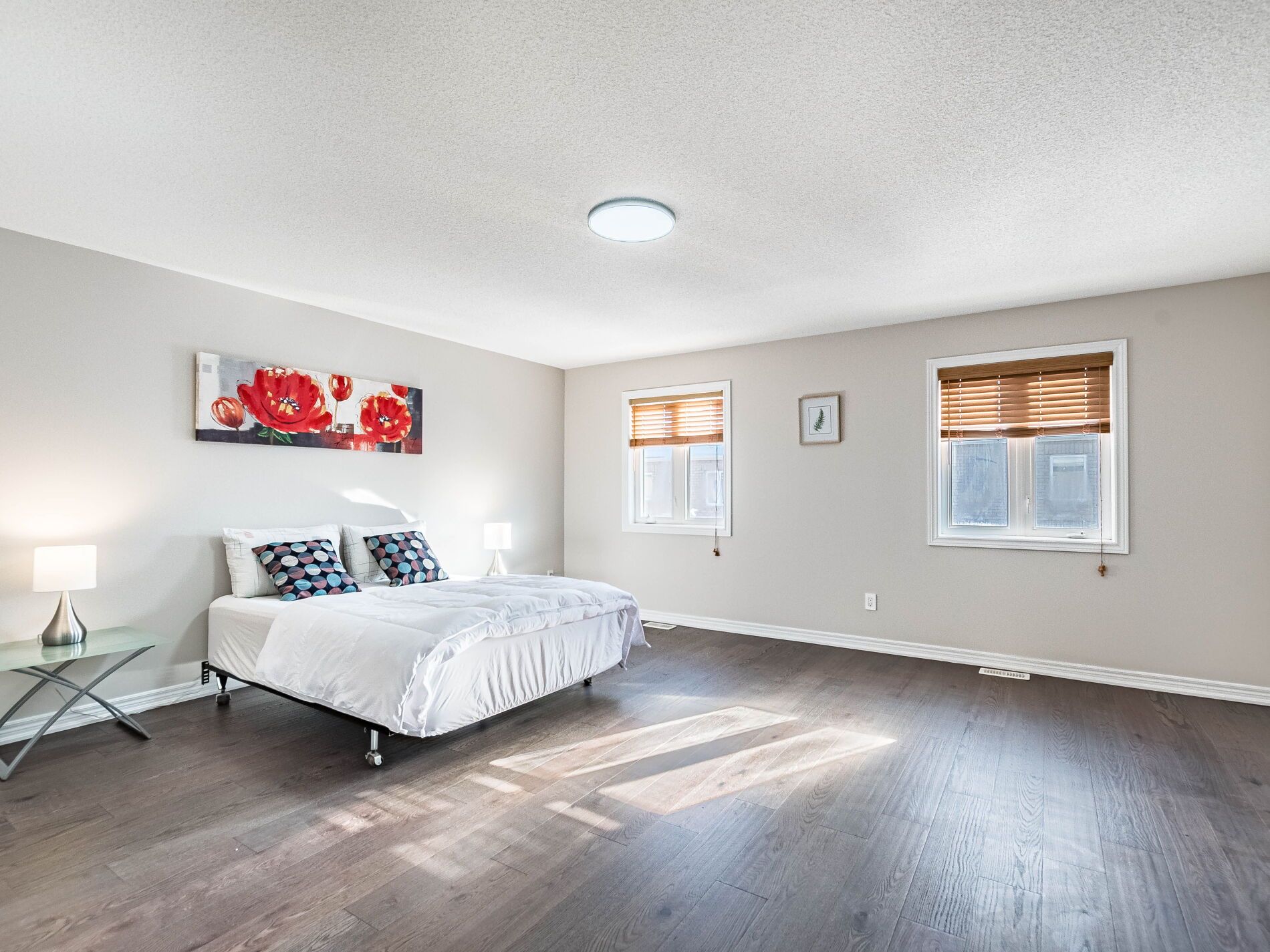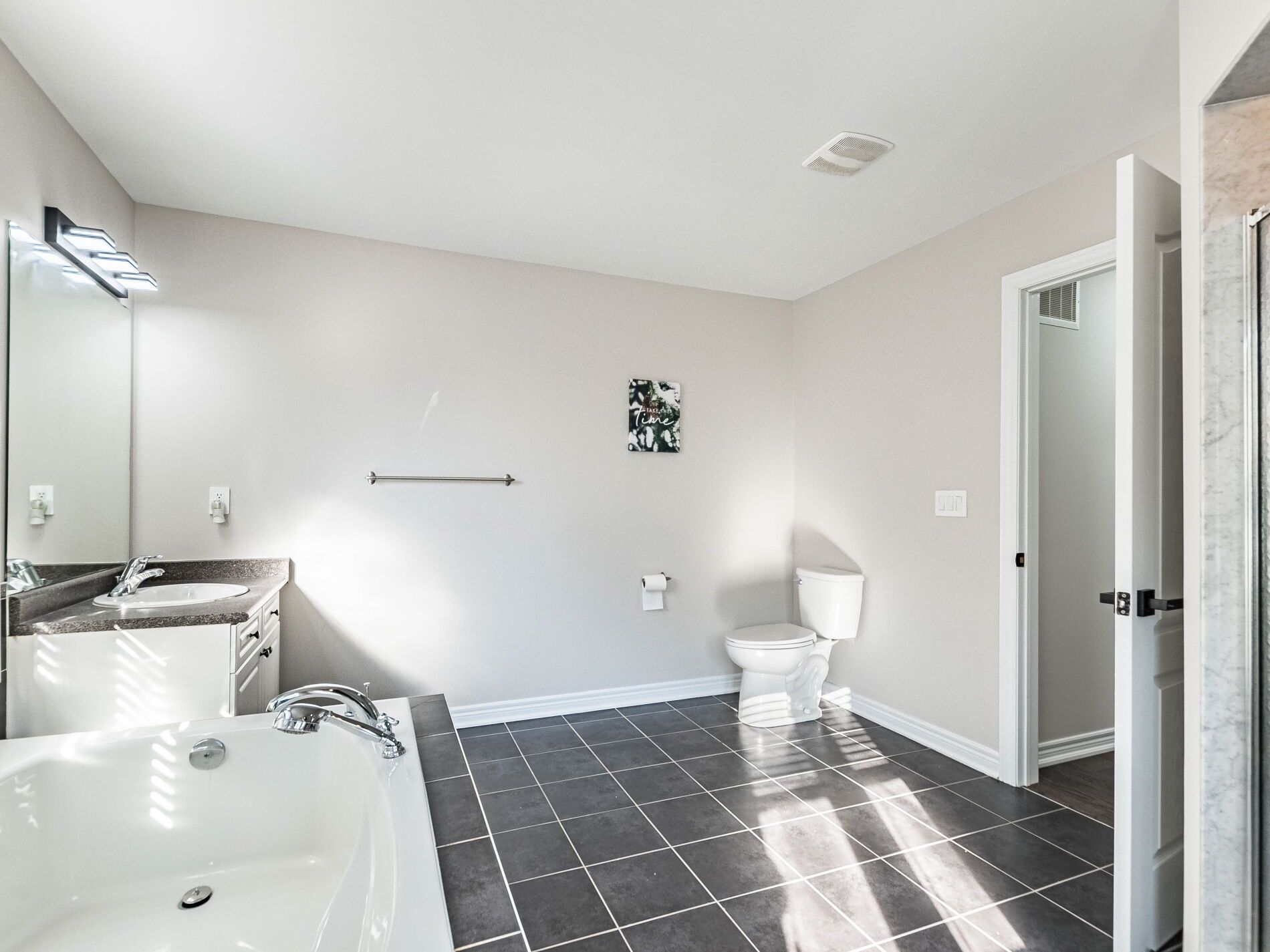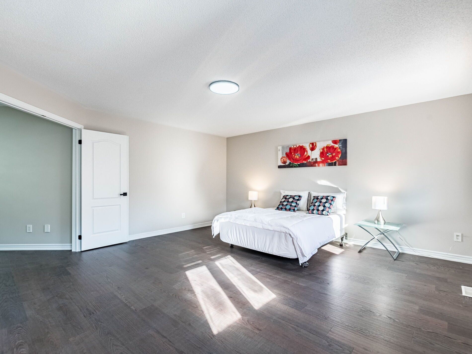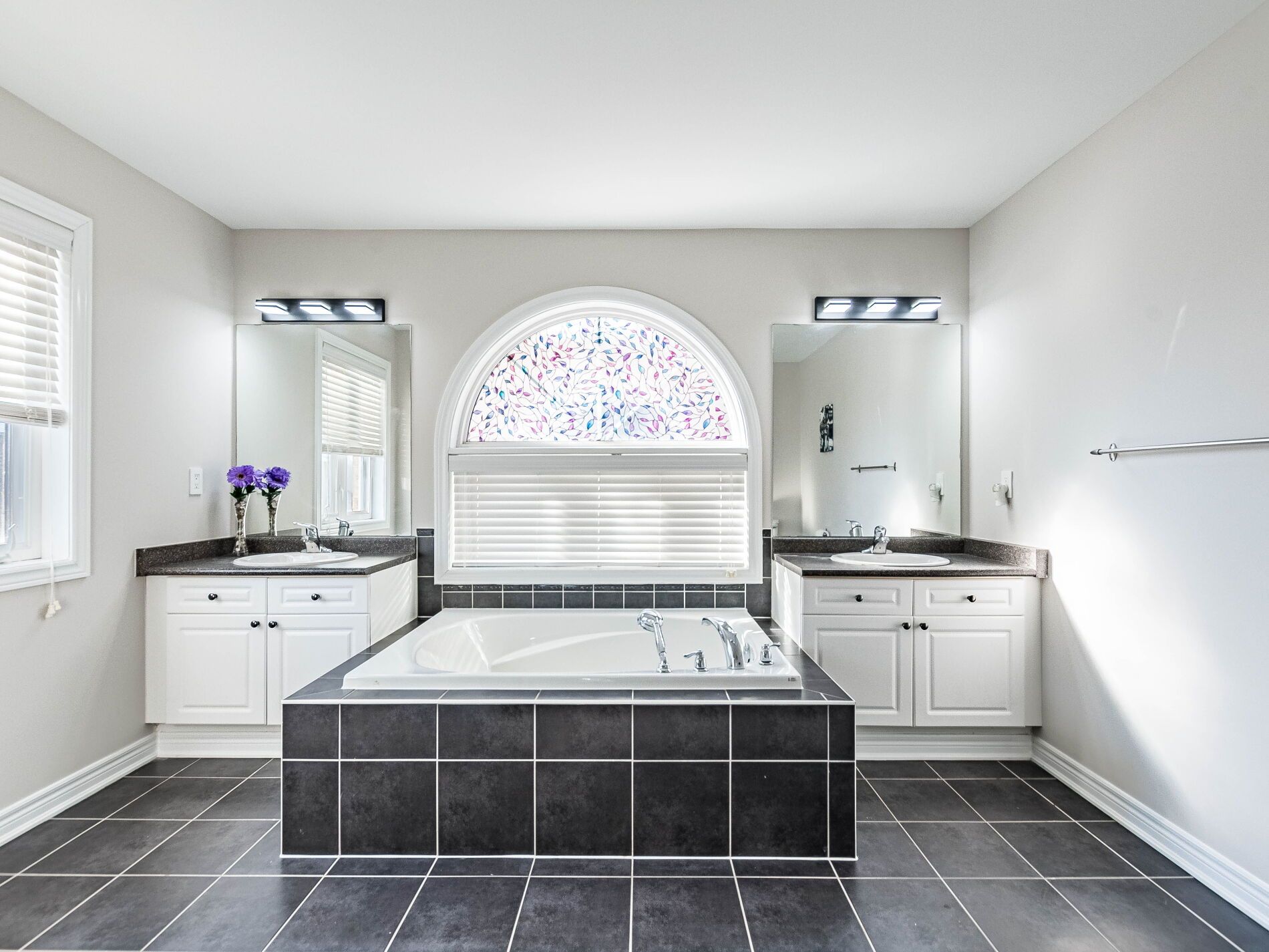 Welcome to this beautiful detached home, located on a quiet, family-friendly crescent in the desirable clarke neighbourhood. Featuring a charming brick and stone exterior, this home offers close to 3,000 sq. Ft. Of living space above grade, with 4 spacious bedrooms and 3 full bathrooms on second floor. Thousands spent on recent upgrades. Highlights include a double-door entry, 9-ft ceilings, fresh paint throughout, new light fixtures, new hardwood floors on the second level, oak staircase. The modern kitchen offers tall cabinetry, stainless steel appliances, granite countertop and backsplash. Hardwood floors throughout and pot lights enhance the bright main level, while the family room features a cozy gas fireplace. Enjoy main-floor laundry, a primary bedroom with 5-pc ensuite and walk-in closet, and a second bedroom with balcony access and has its own ensuite. Other two bedrooms have jack n jill bathroom. The unfinished basement provides endless potential, plus a double-car garage for ample parking and storage. Close to milton go, hwy 401. Walking distance to schools, park, trails, shopping and much more. Don't miss the virtual tour.