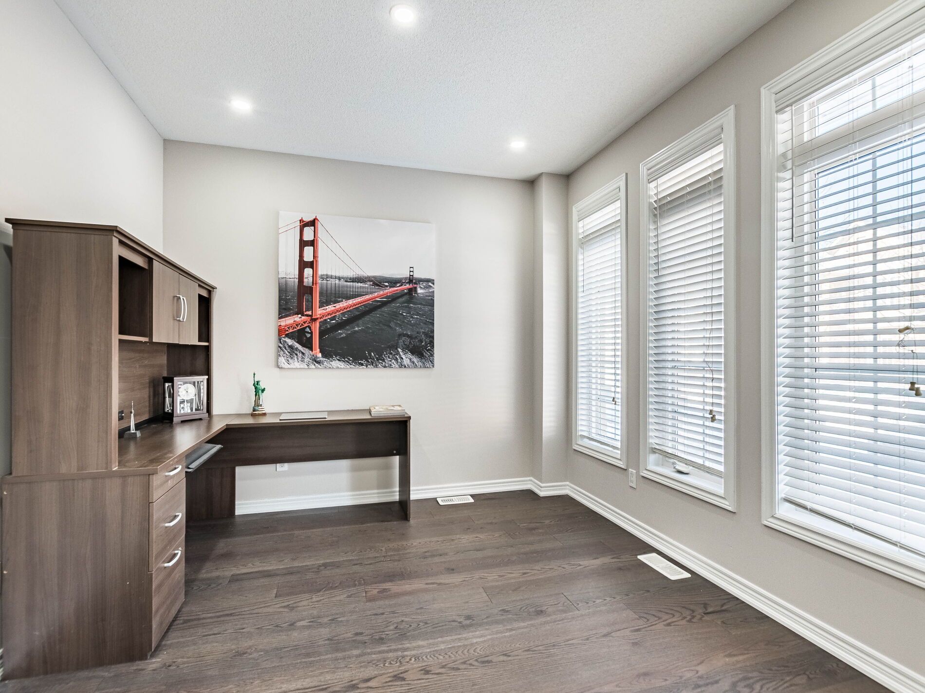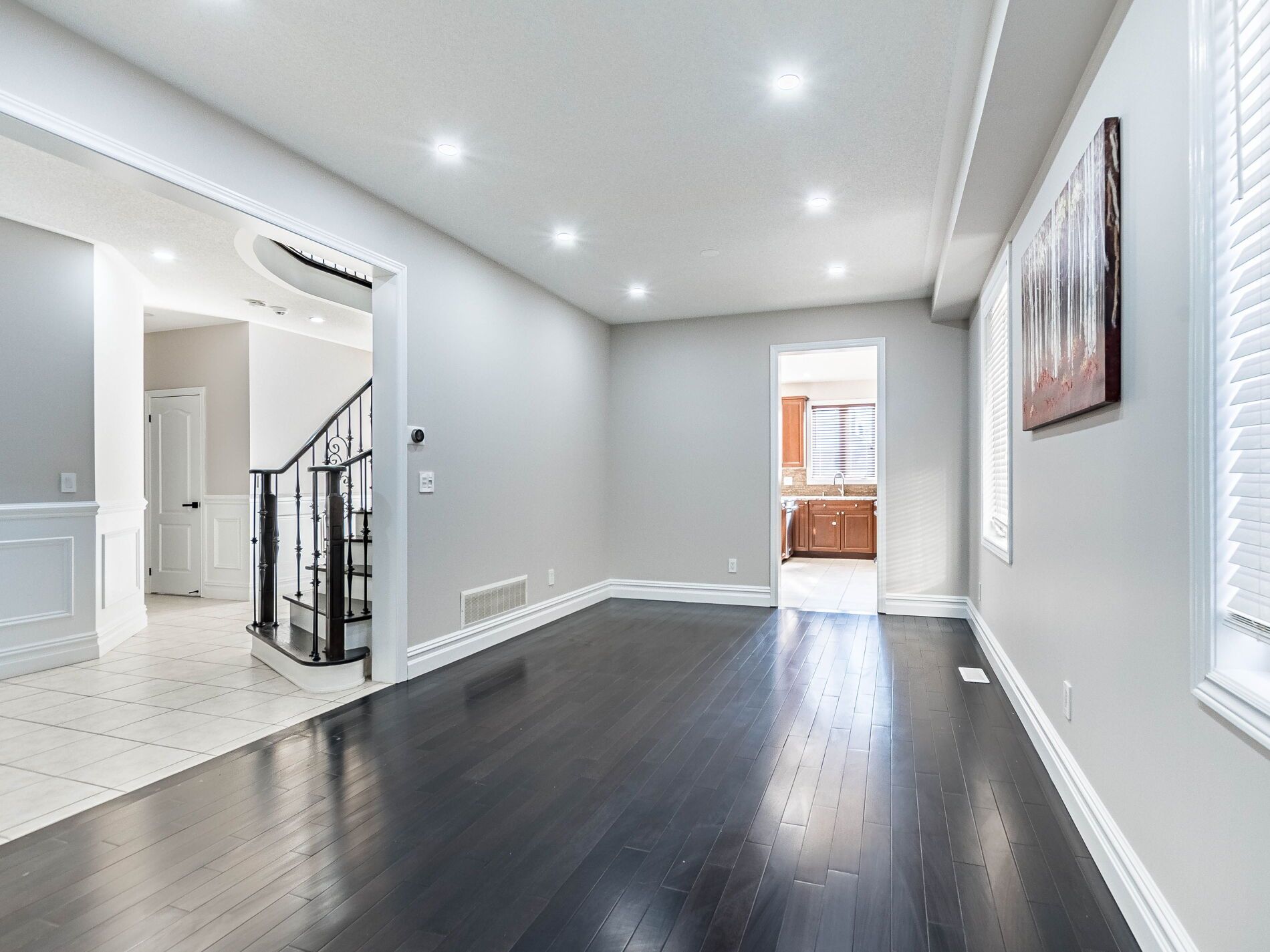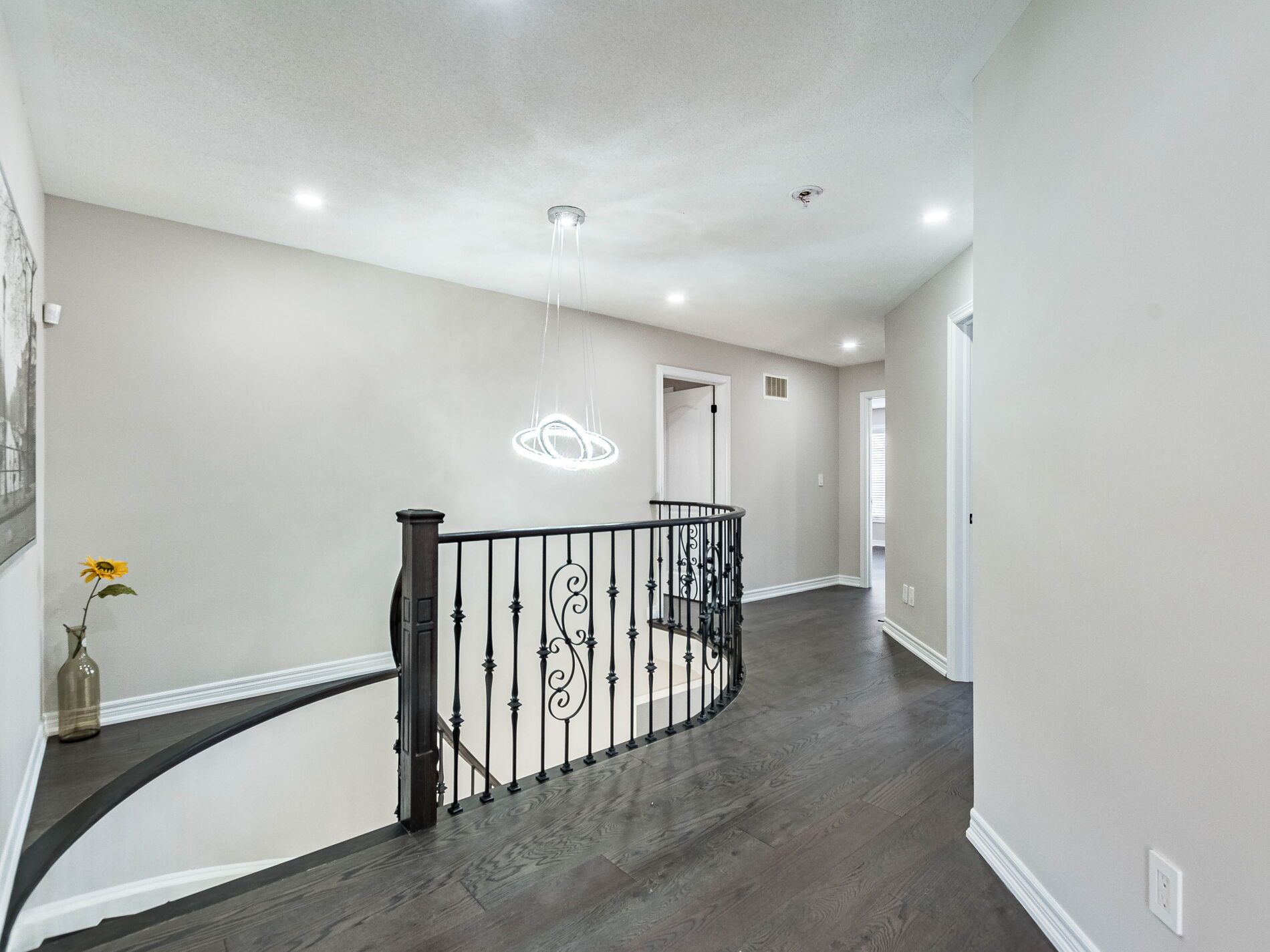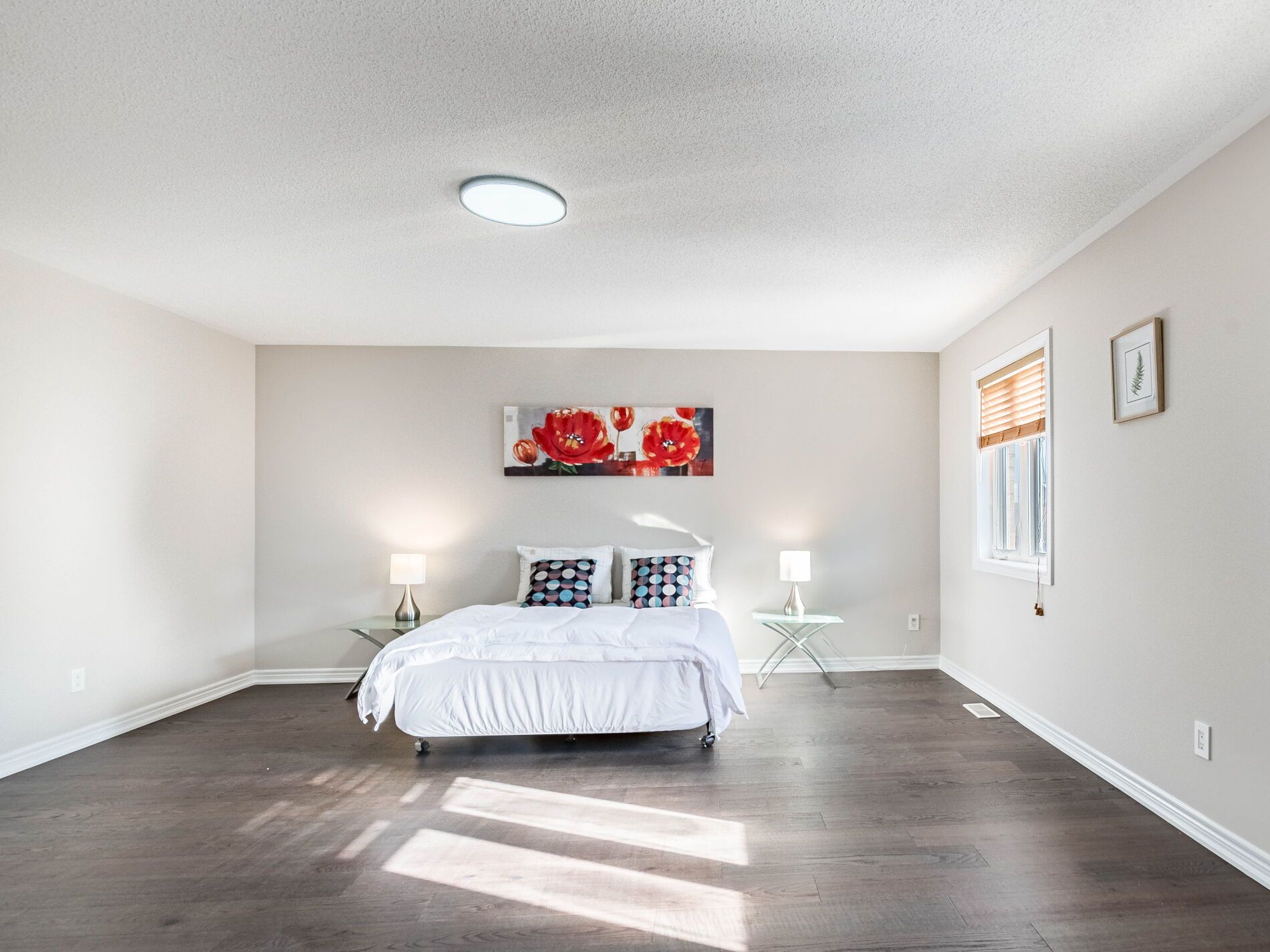 Welcome to this beautiful detached home, located on a quiet, family-friendly crescent in the desirable clarke neighbourhood. Featuring a charming brick and stone exterior, this home offers close to 3,000 sq. Ft. Of living space above grade, with 4 spacious bedrooms and 3 full bathrooms on second floor. Thousands spent on recent upgrades. Highlights include a double-door entry, 9-ft ceilings, fresh paint throughout, new light fixtures, new hardwood floors on the second level, oak staircase. The modern kitchen offers tall cabinetry, stainless steel appliances, granite countertop and backsplash. Hardwood floors throughout and pot lights enhance the bright main level, while the family room features a cozy gas fireplace. Enjoy main-floor laundry, a primary bedroom with 5-pc ensuite and walk-in closet, and a second bedroom with balcony access and has its own ensuite. Other two bedrooms have jack n jill bathroom. The unfinished basement provides endless potential, plus a double-car garage for ample parking and storage. Close to milton go, hwy 401. Walking distance to schools, park, trails, shopping and much more. Don't miss the virtual tour.