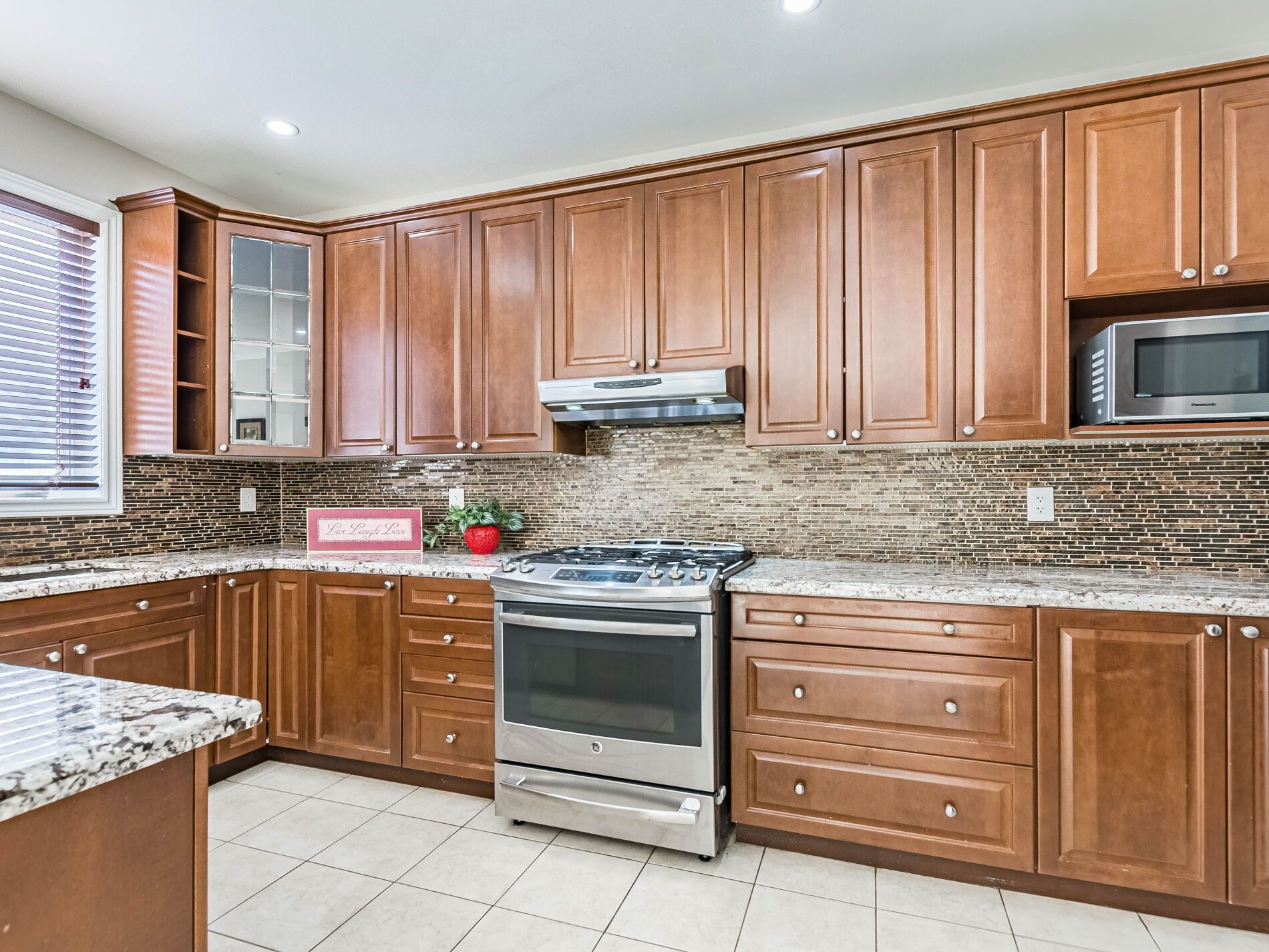 • Modern kitchen boasts granite countertops and stainless steel appliances.