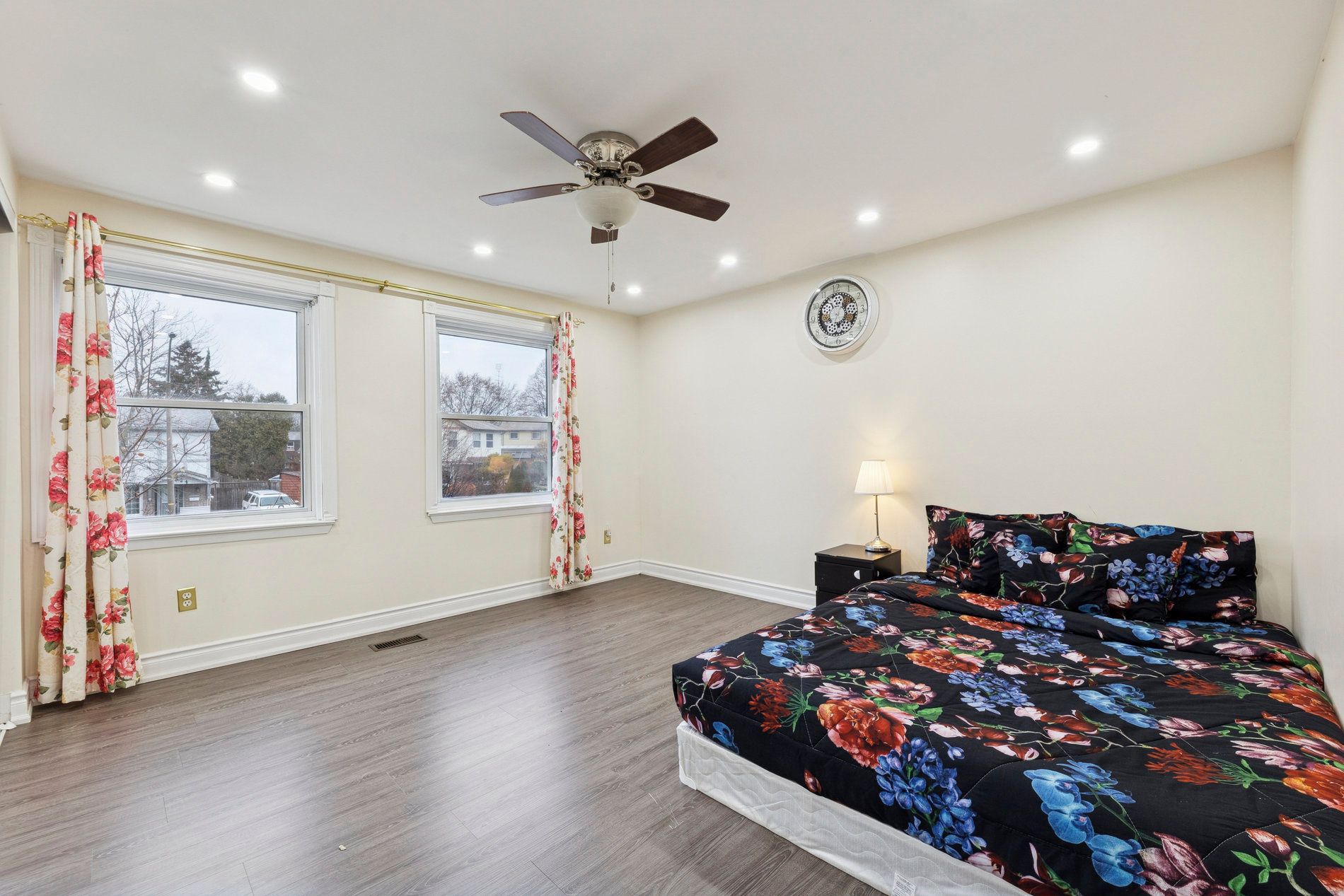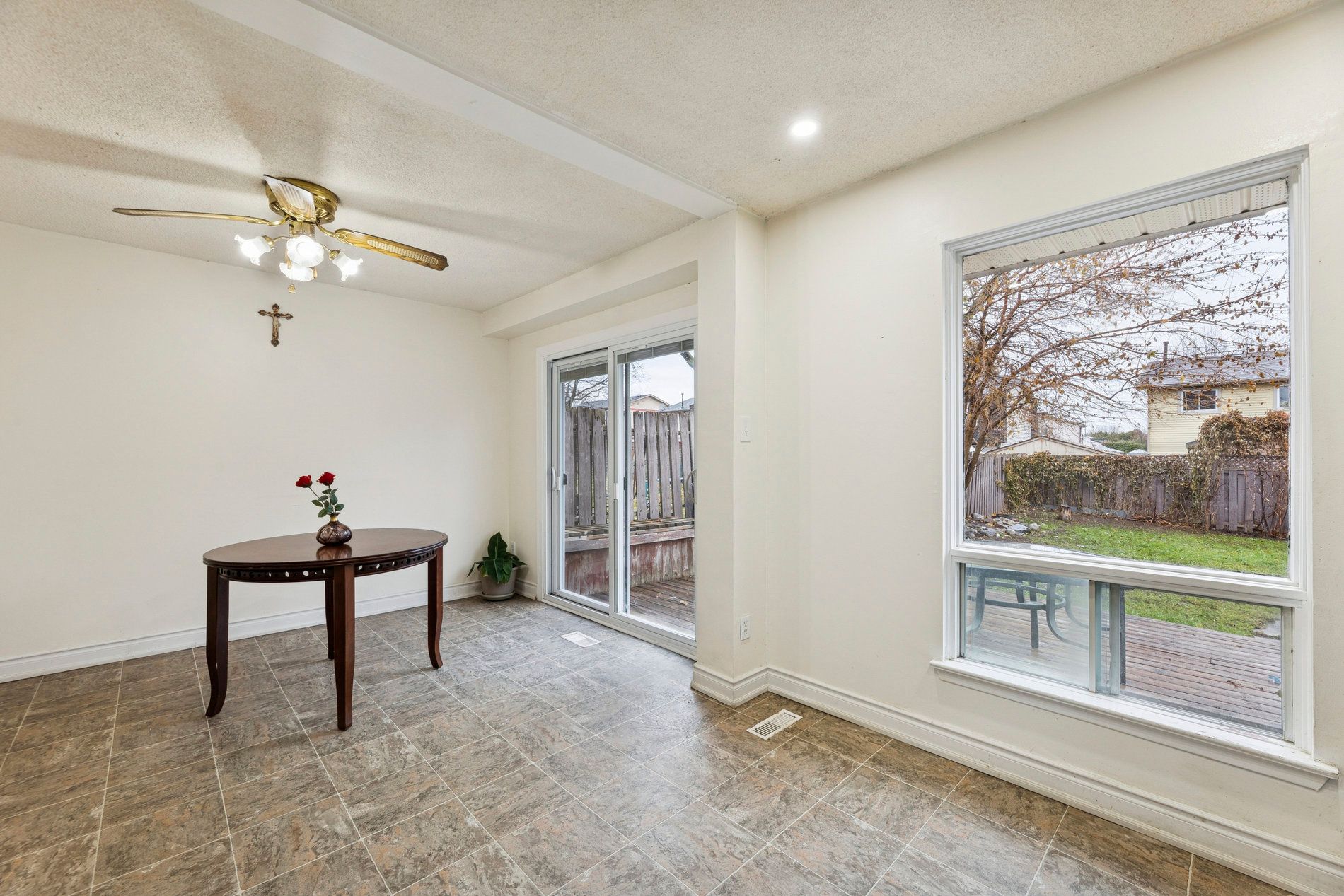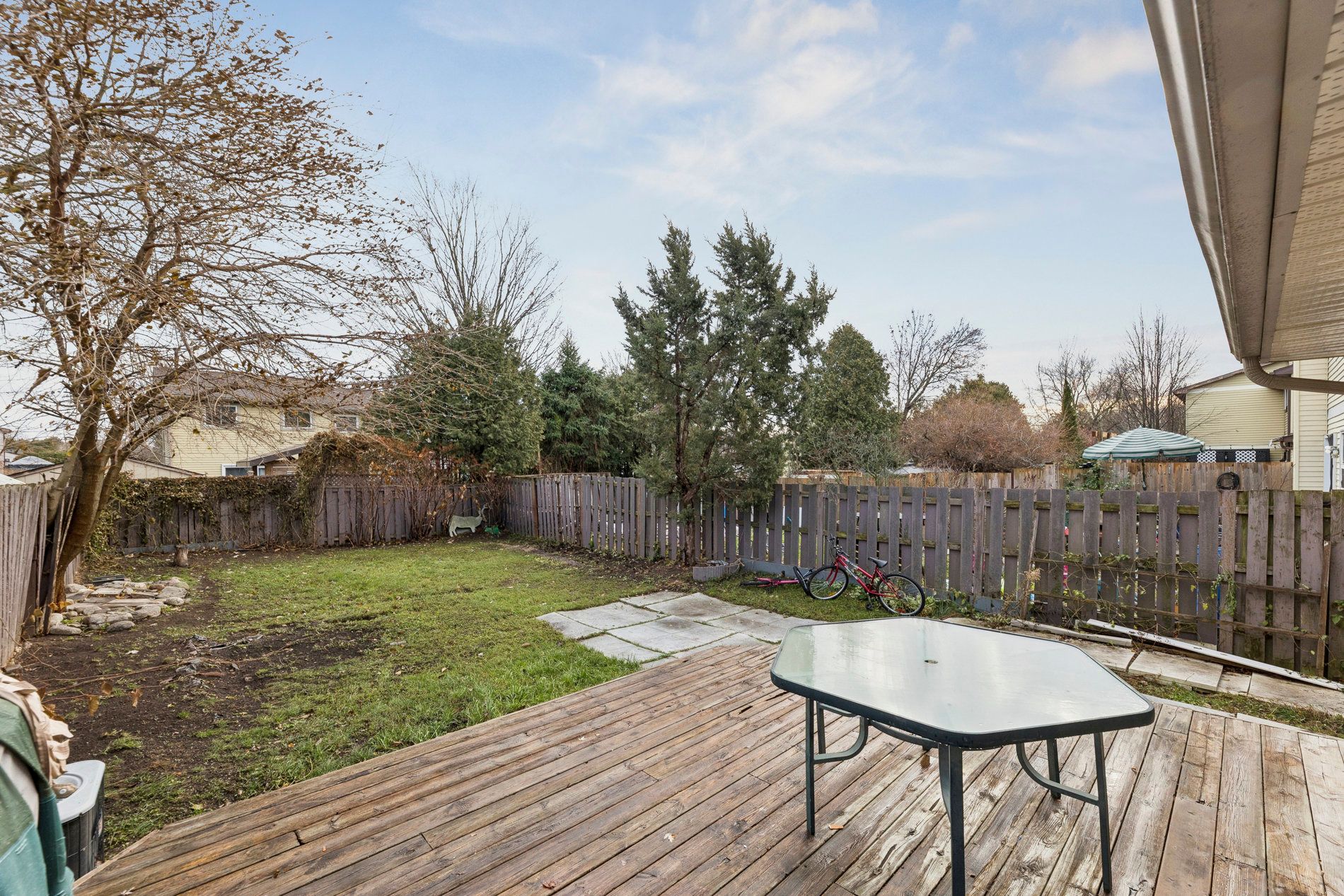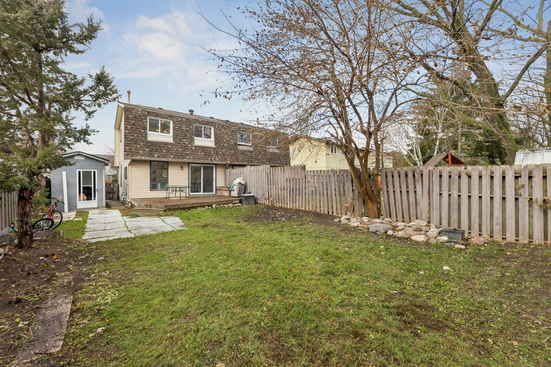 Welcome to this beautiful semi detached 3 bedroom house! Nestled in a beautiful community where you would love to spend quality time with your family. A perfect balanced home between nature and city with lots of greenspace, big backyard and amenities around. Bright and sunny main level with walkout to backyard from dining room. Second bathroom and rec room in basement offeradditional living space. Lot's of upgrades all new flooring (except kitchen & living room), new dishwasher, new sliding mirror doors (all bedrooms & closet downstairs), new shelves (all bedrooms), new ceiling (top floor), pot lights (entire house, except basement), new powder room vanity set(basement), new driveway, gas connection to barbeque in backyard etc. This property has an easy and quick access to schools, parks, highway 401, harmony creek trail & shopping centers. Don't miss it!!!