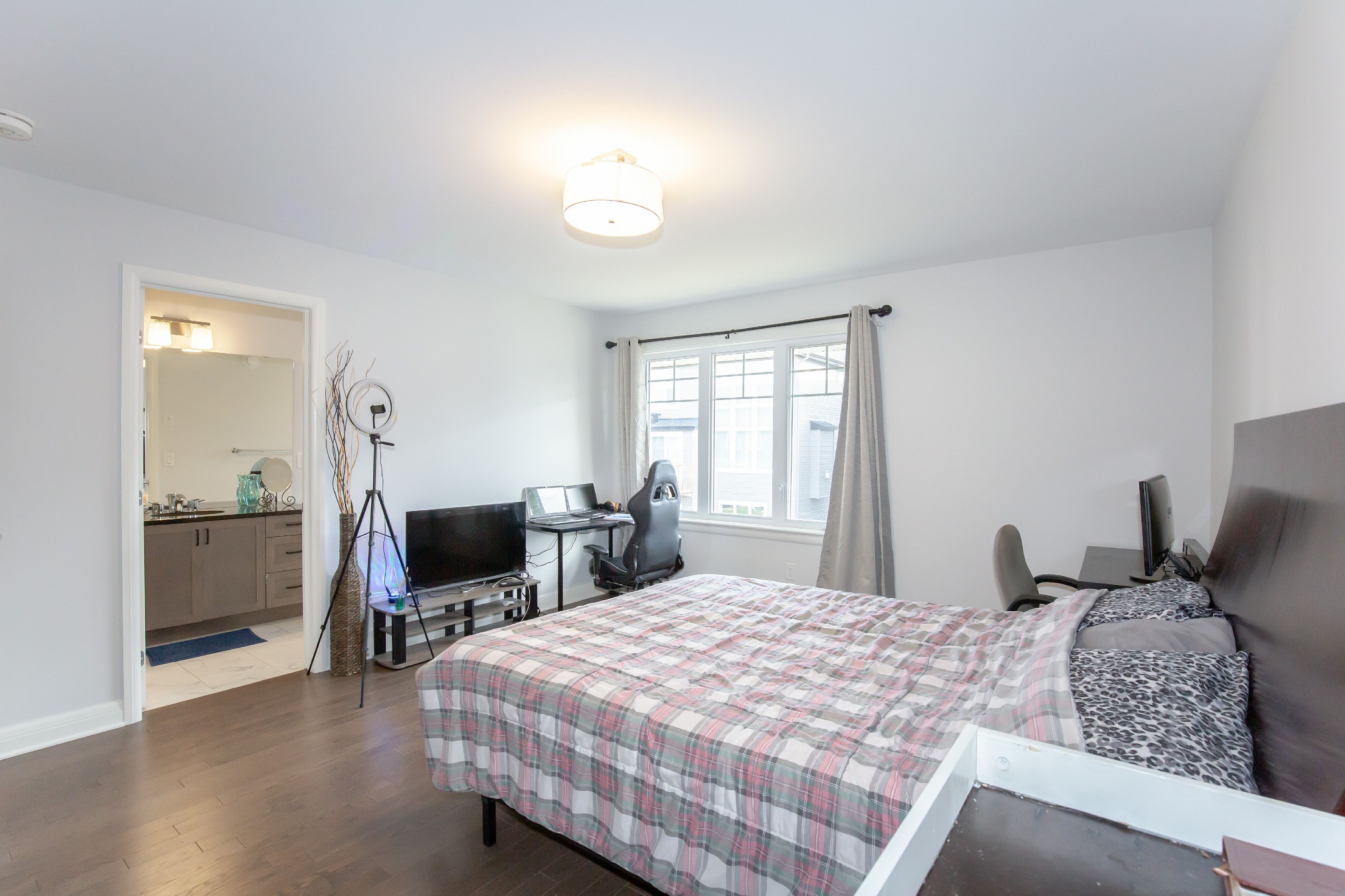 ***available on may 1st! ***discover the charm of this 2023 uniform built th of approx. 2100 sqft in sought-after rr4 of kanata lakes! Boasting 3+1 beds, 3 baths, & a single-car garage, the main floor offers an open-concept layout with 9-foot ceilings, hardwood floors, a spacious living room with big windows and cozy fireplace, a gourmet kitchen with stainless steel appliances and granite countertop. From the beautiful hardwood stairs to the second level, gleamy hardwood is throughout as well, a primary bedroom with huge walk in closet and ensuite & with glass door shower; two other spacious bedrooms, a wide hallway with a big linen closet and a upgraded laundry room await. The finished basement provides another amazing bedroom that has big window and wardrobe available for use, the rest of the space leaves ample storage and flexible room. Minutes from kanata centrum, tanger outlets, costco, hwy417, and top schools.